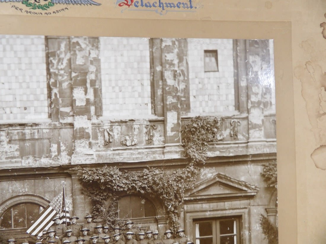 Dated October 1917. Features the first American Aero Squadron that Serve with the British. Some light damage to photo. Measures 22" long x 16′ Wide