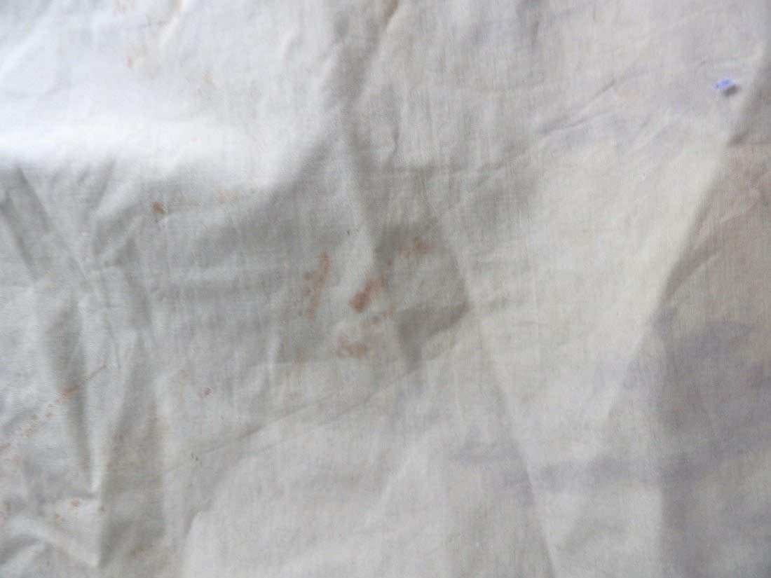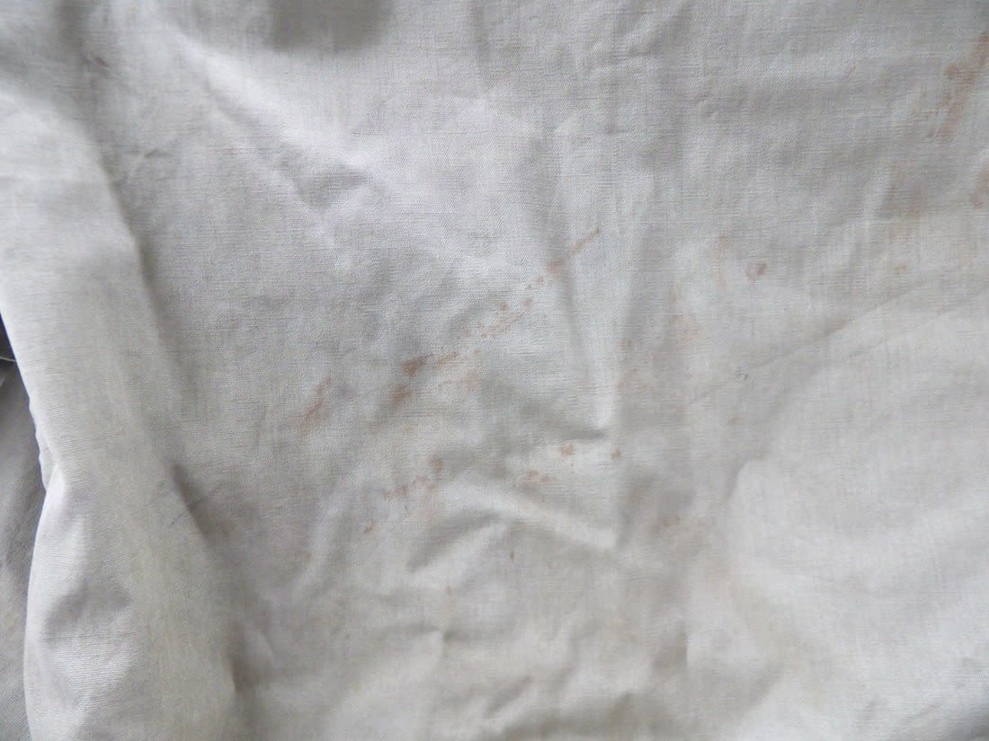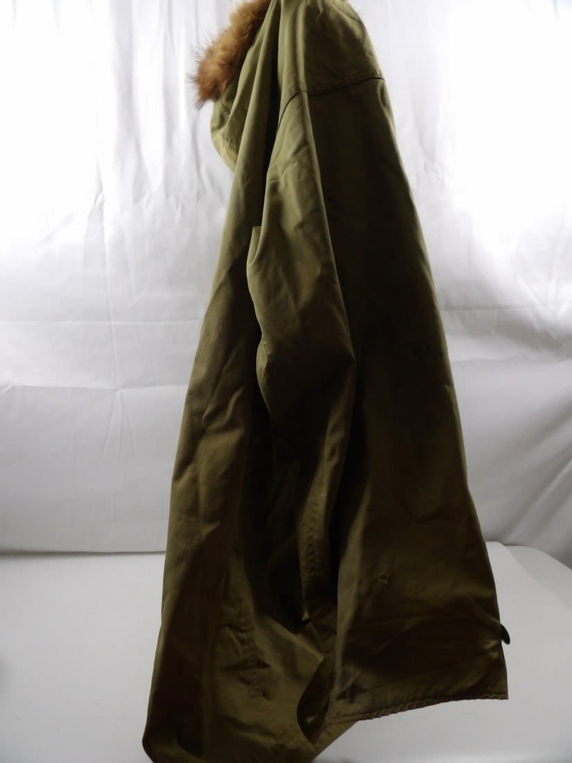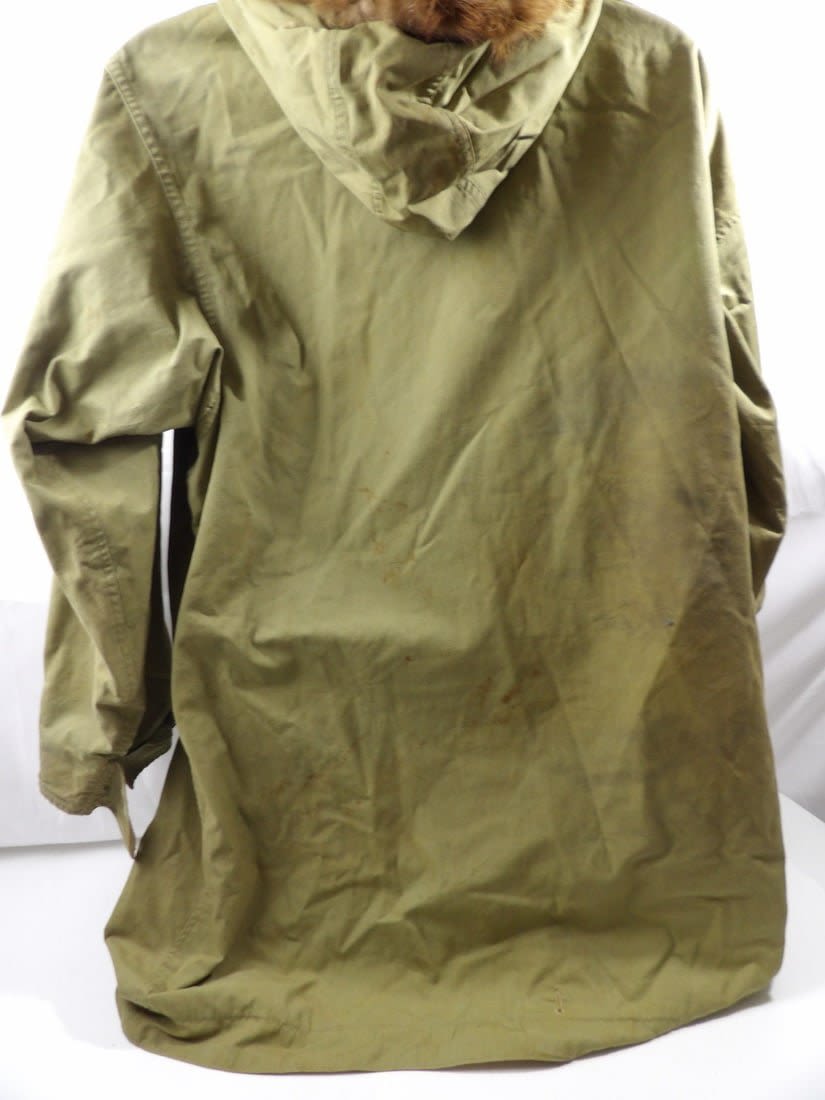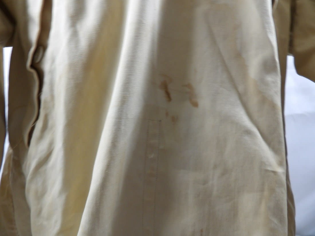 Made by the North jersey leather Coat Company. Couple stains on back and small hole on sleeve. Reverse white side shows lots of Sweat Staining