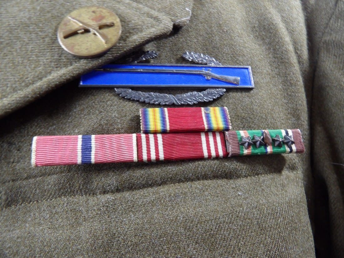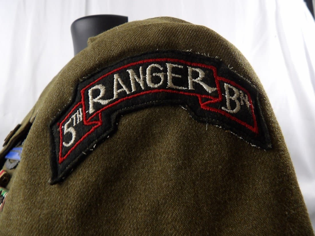 Laundry numbered . Named to a Walter "Red’ Levi. Listed on the 5th Rangers Roster as being part of C Company. Arrowhead device and CIB. Electronic Research will be Emailed to Winner of auction.