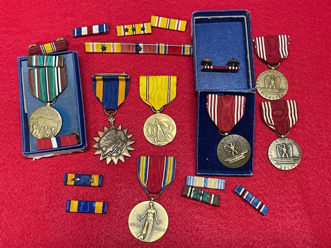 Unidentified mixed medal group. Includes a wrapped broach Air Medal, and all others as shown