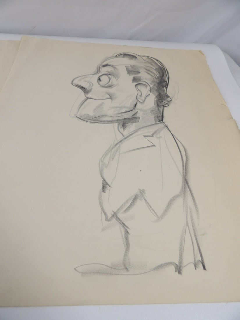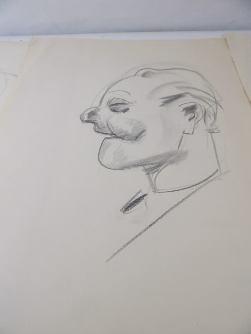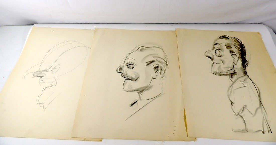 Artist Studies, used to create his Brown Derby Restraunt Portrait. Lot of 3. 13"x16". Rips/stains/tears possible.