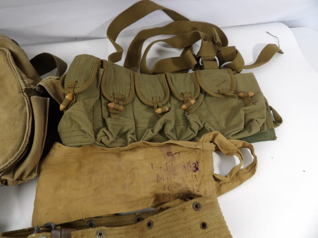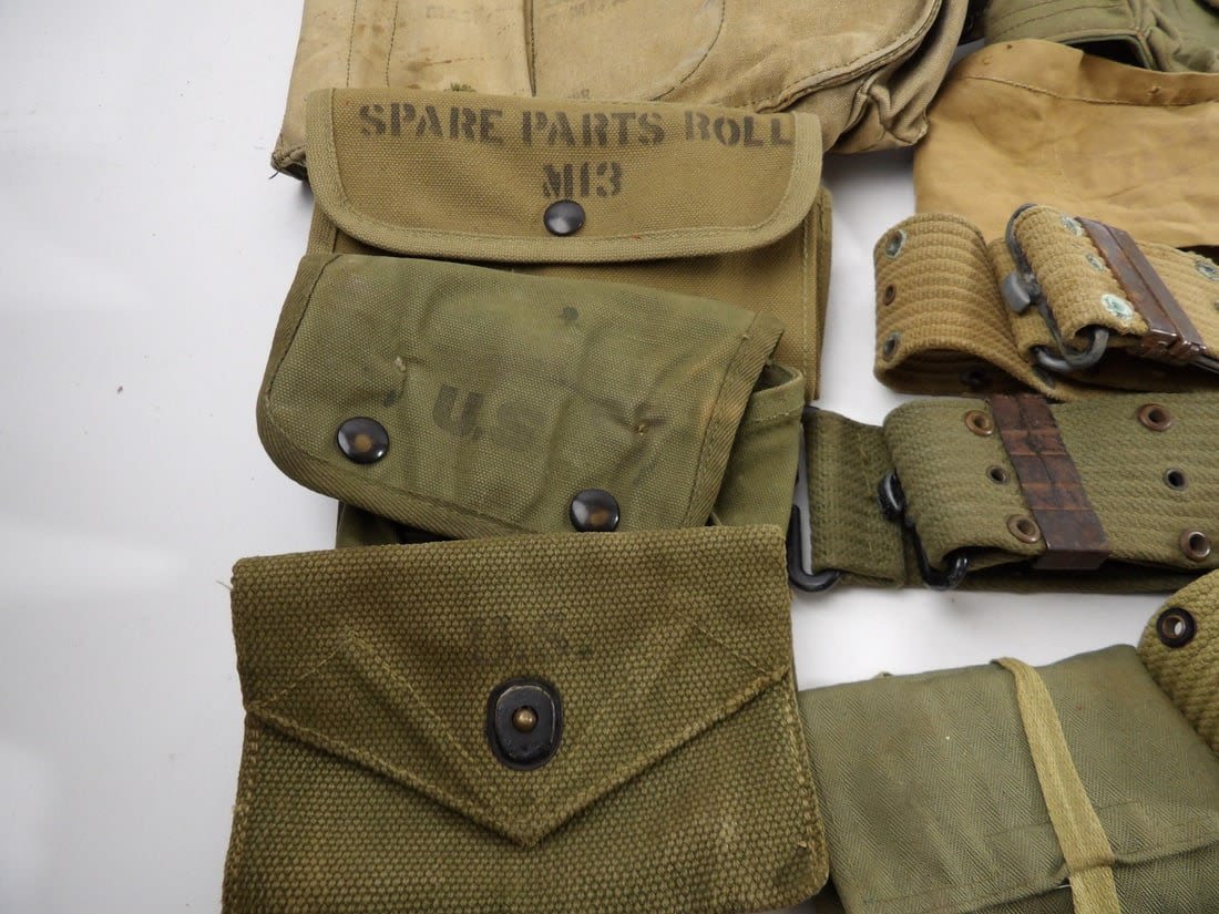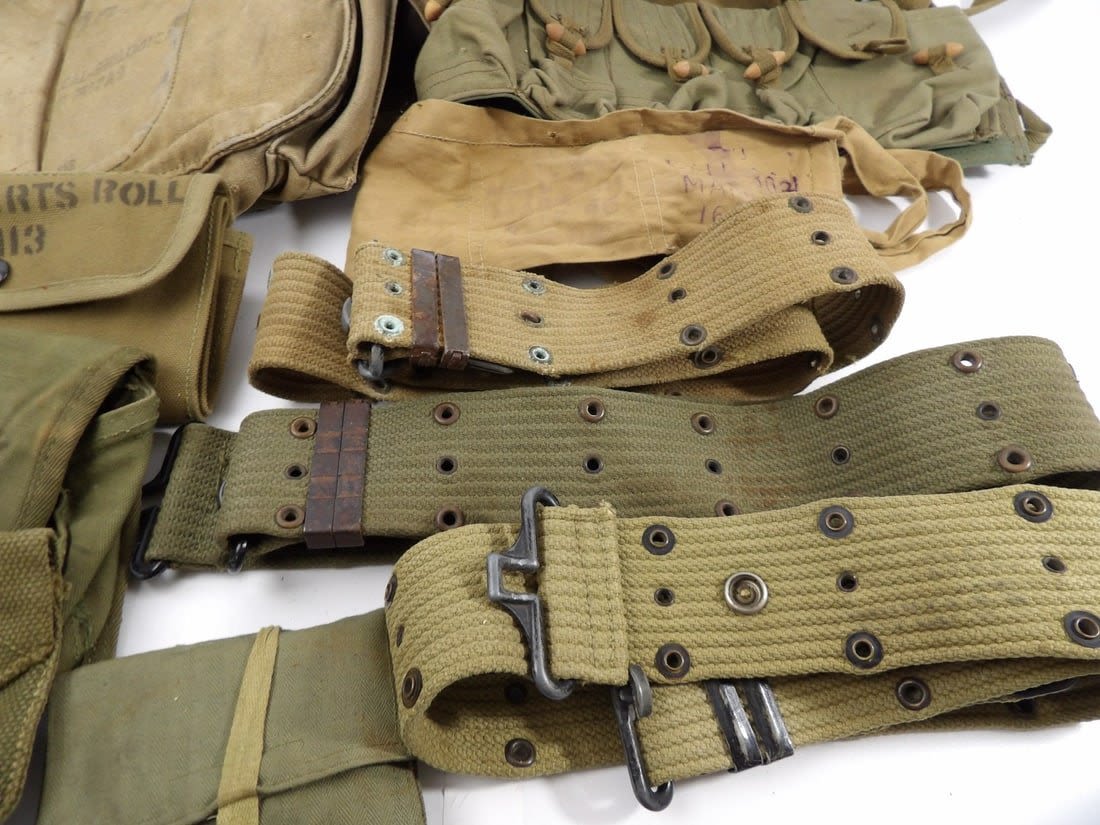 Lot includes Field Gear, Web belts , Gas mask and Pouches.