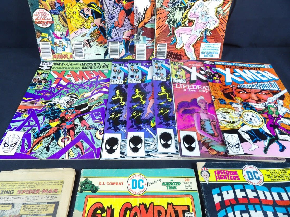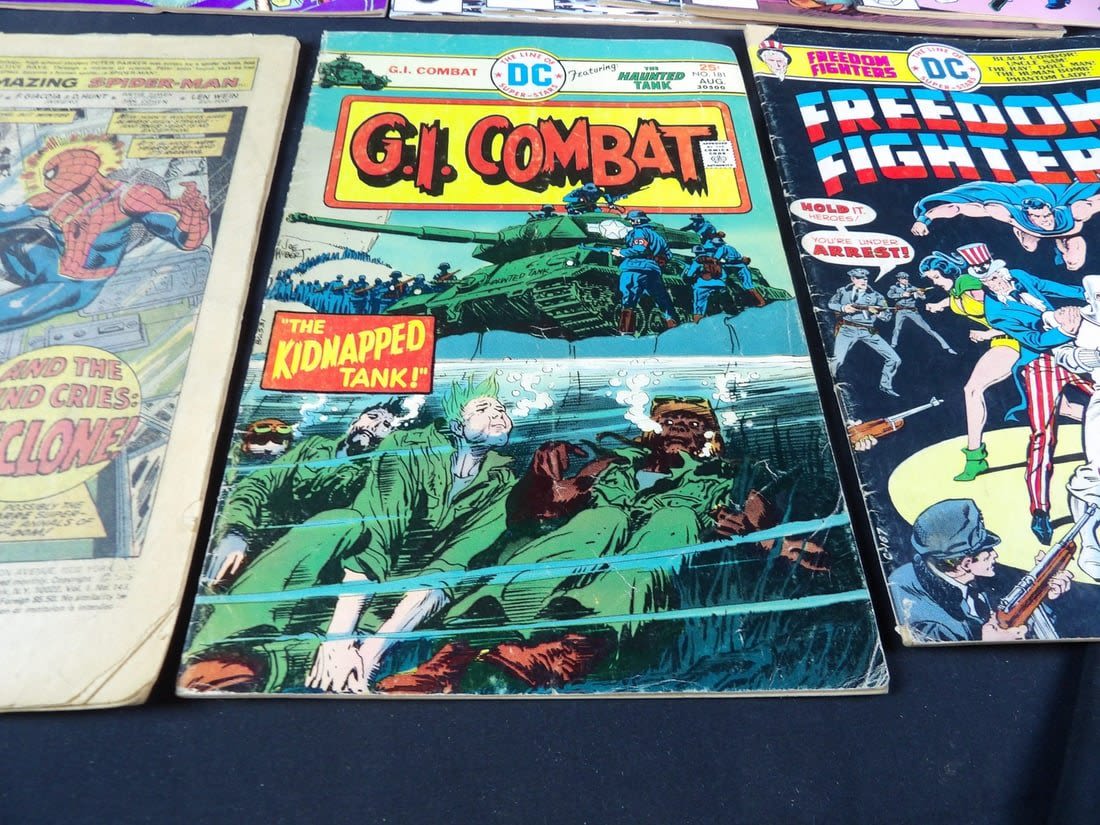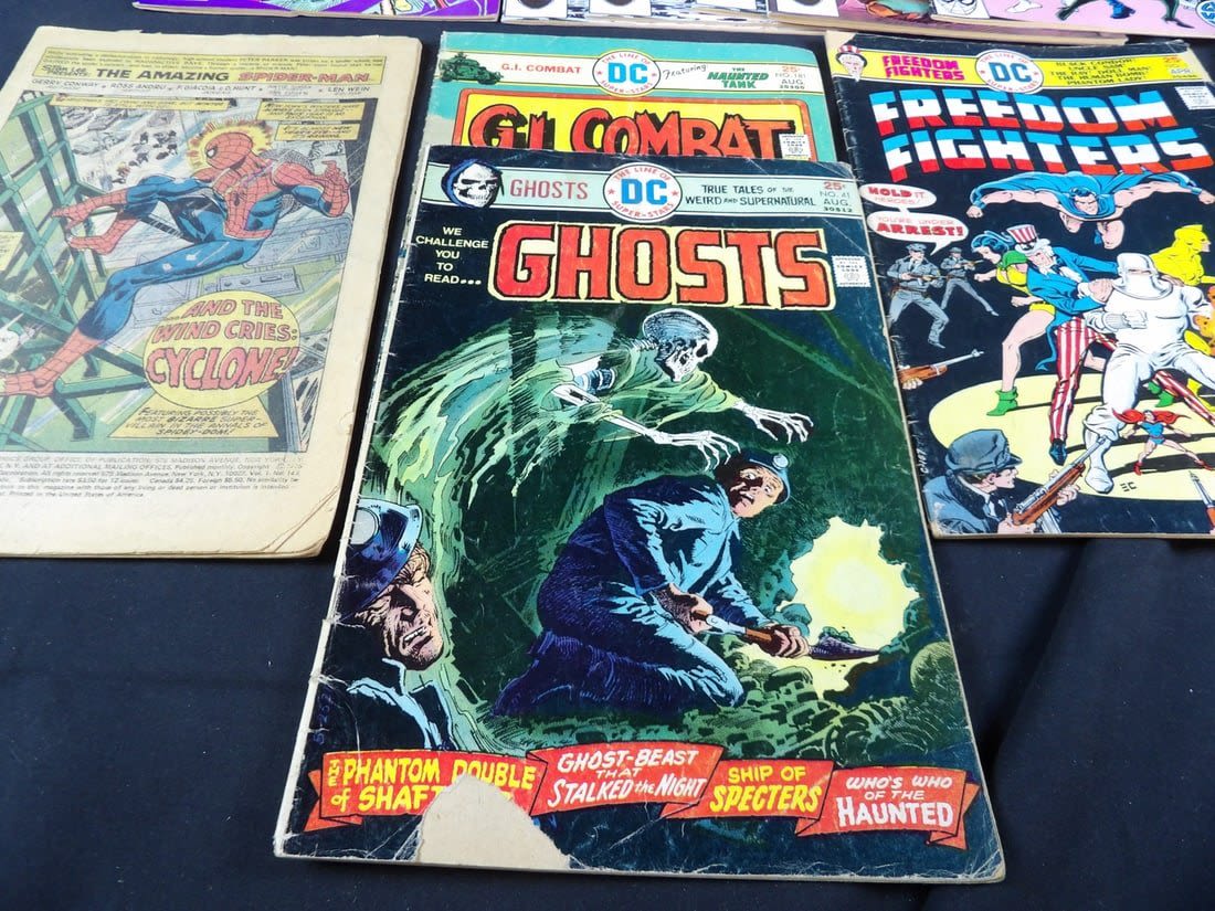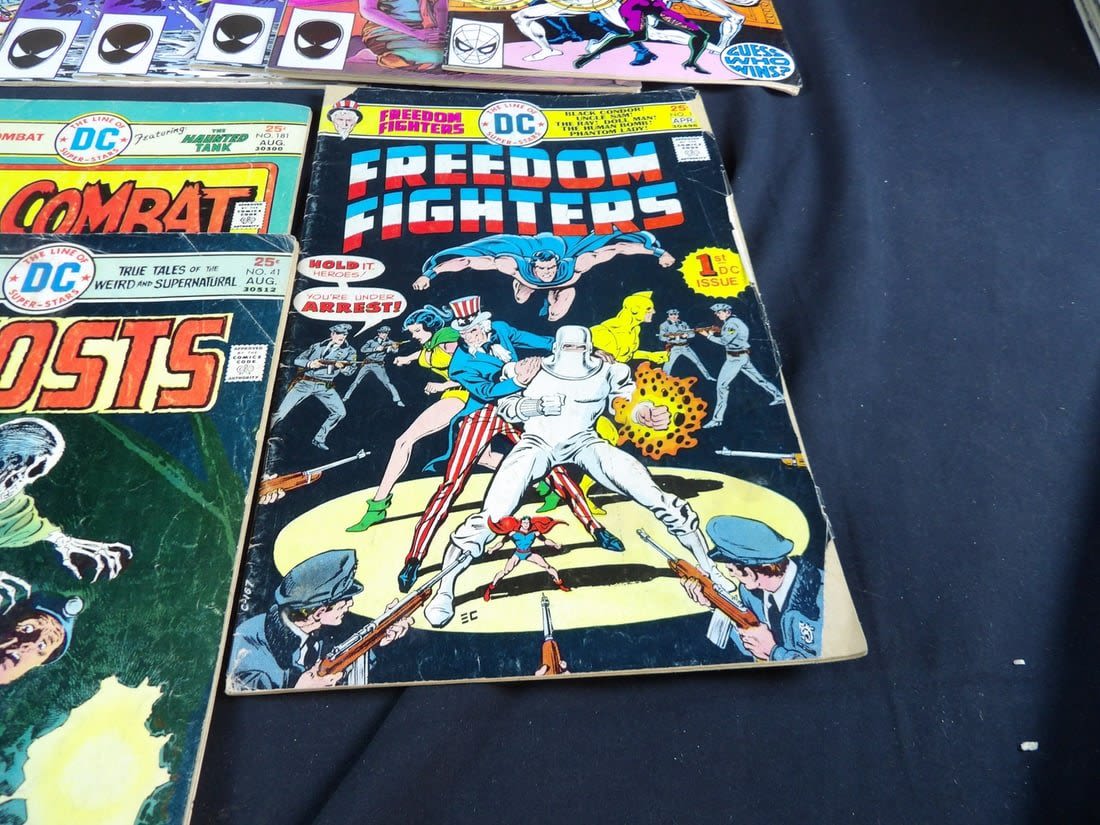 Please note spiderman comic is missing both front and back covers and a page is loose. Freedom fighter comic has tears on front cover. Lot of 15