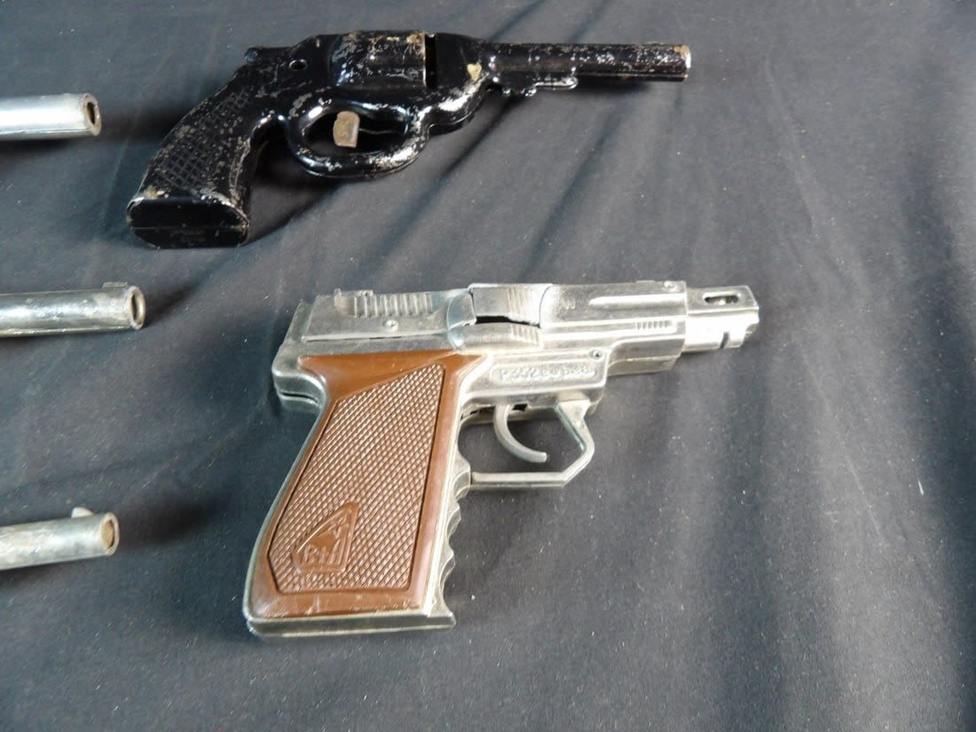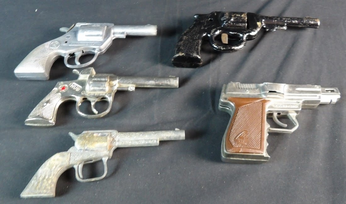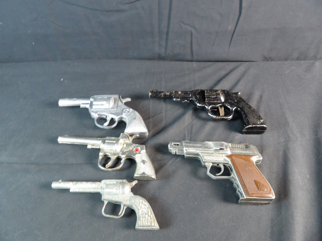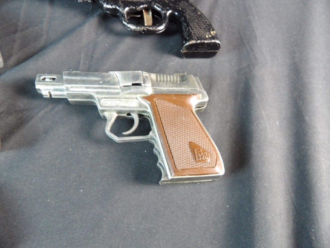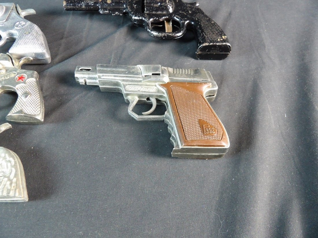 Hubley, Kilgore private eye, Victory, Made in hong kong and more. All work except for Black revolver. May need cleaning on others.