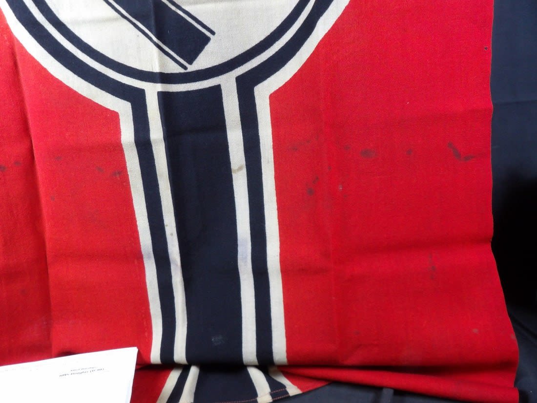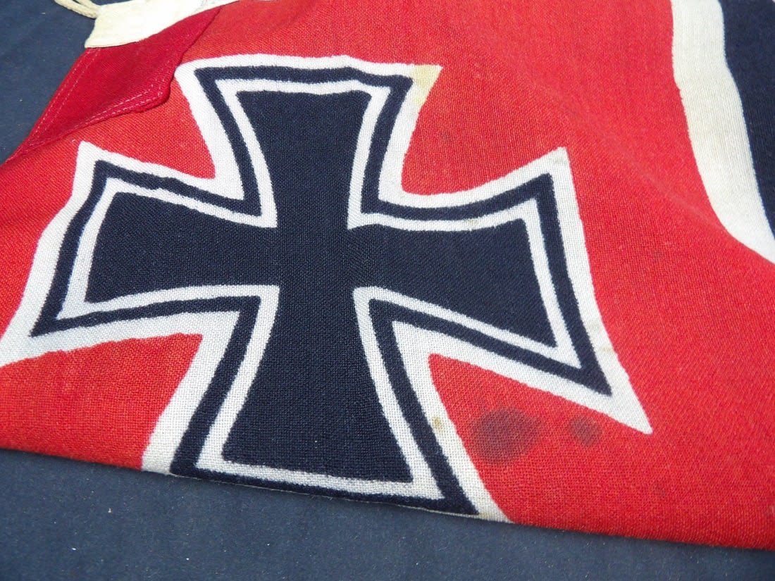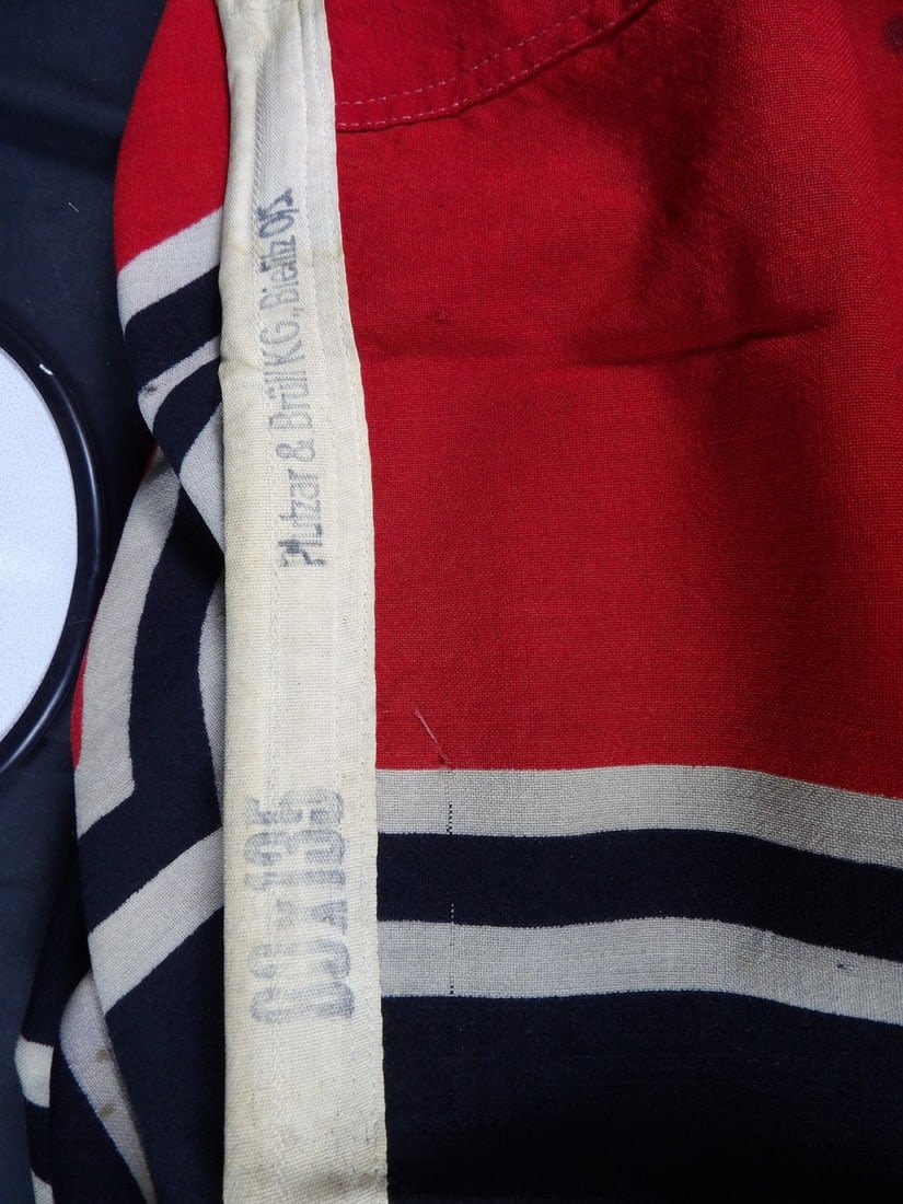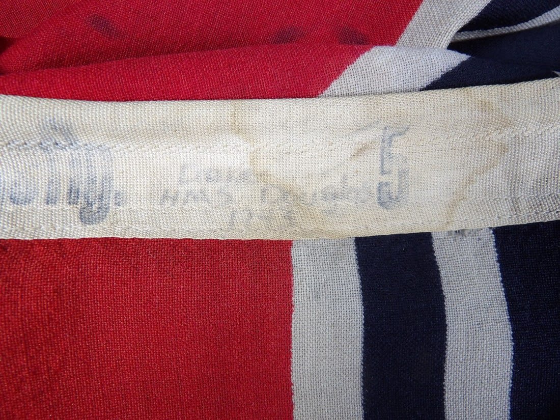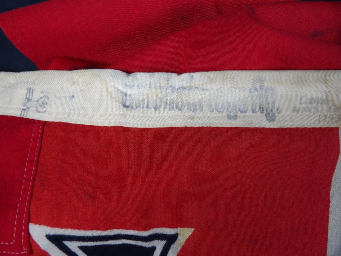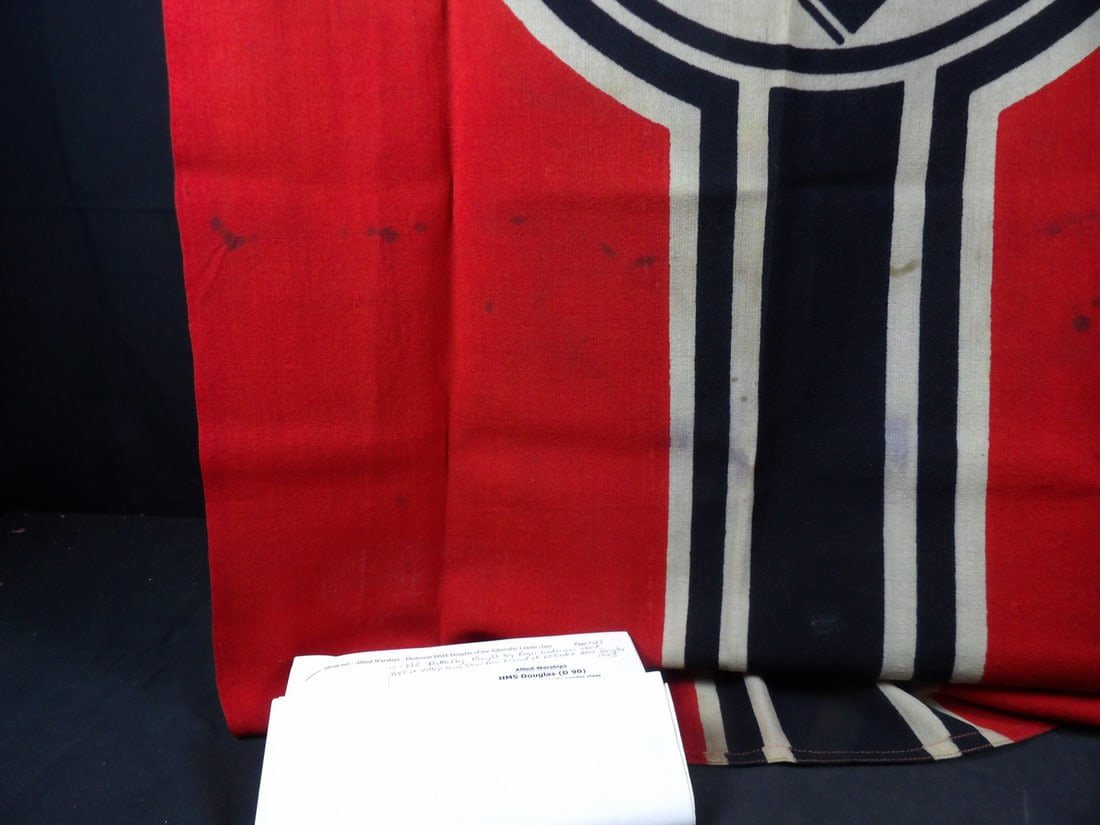 This U-boat was sunk by the british Submarine Trawler HMS Imperialist and the british Destory HMS Douglas. The flag was captured by LT. Cooke of the HMS Douglas. You can see how Cooke wrote on the flag his name, year and ship name. Includes printed research and information. Flag is roughly 30×53 in size