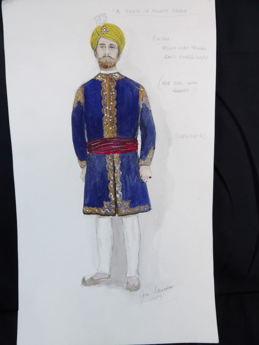 Design is for the Rajah in the UK made for tv movie "A Ghost in Monte Carlo" 1990. Original 9×16 and has incredible detail. Designed by Joan Ellacott