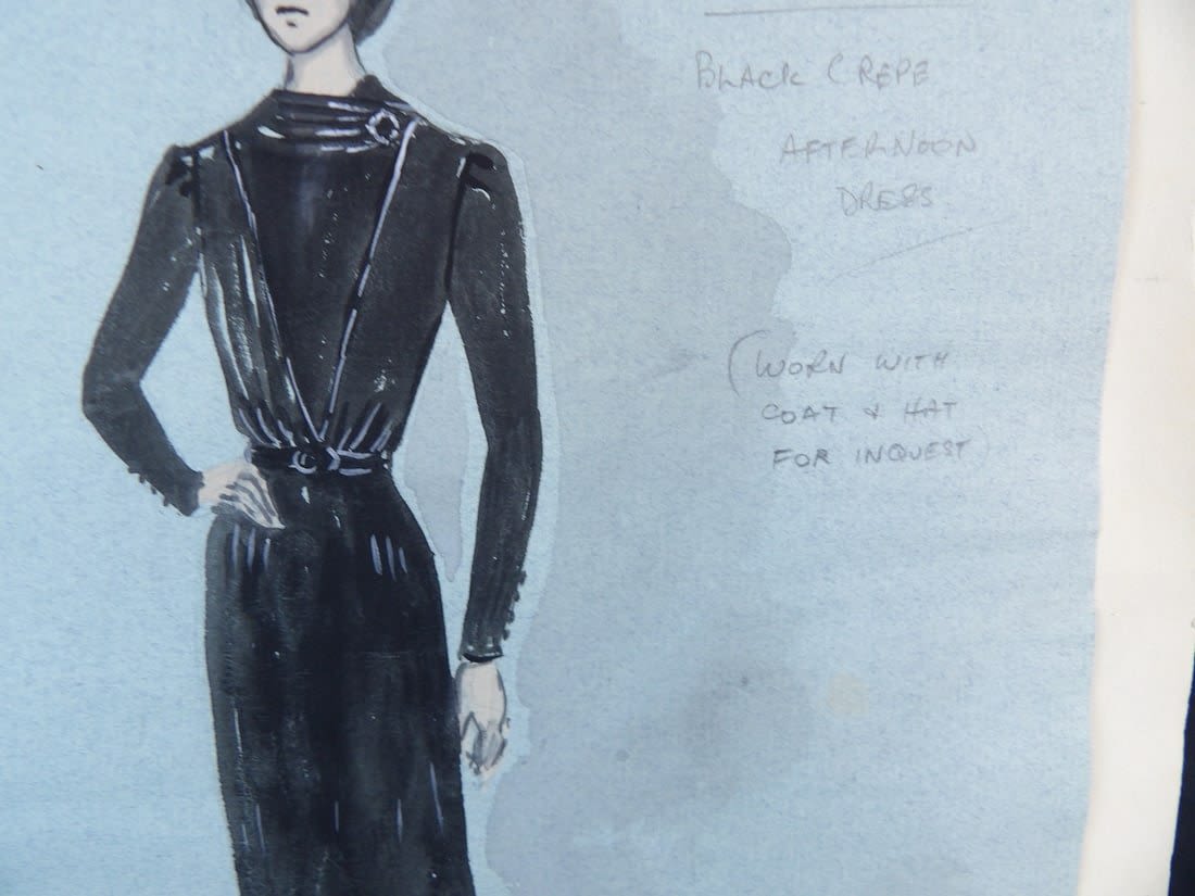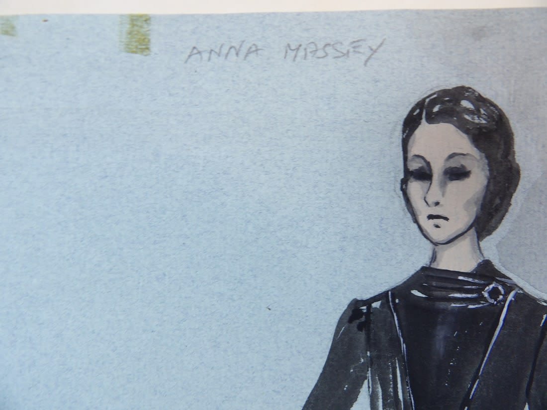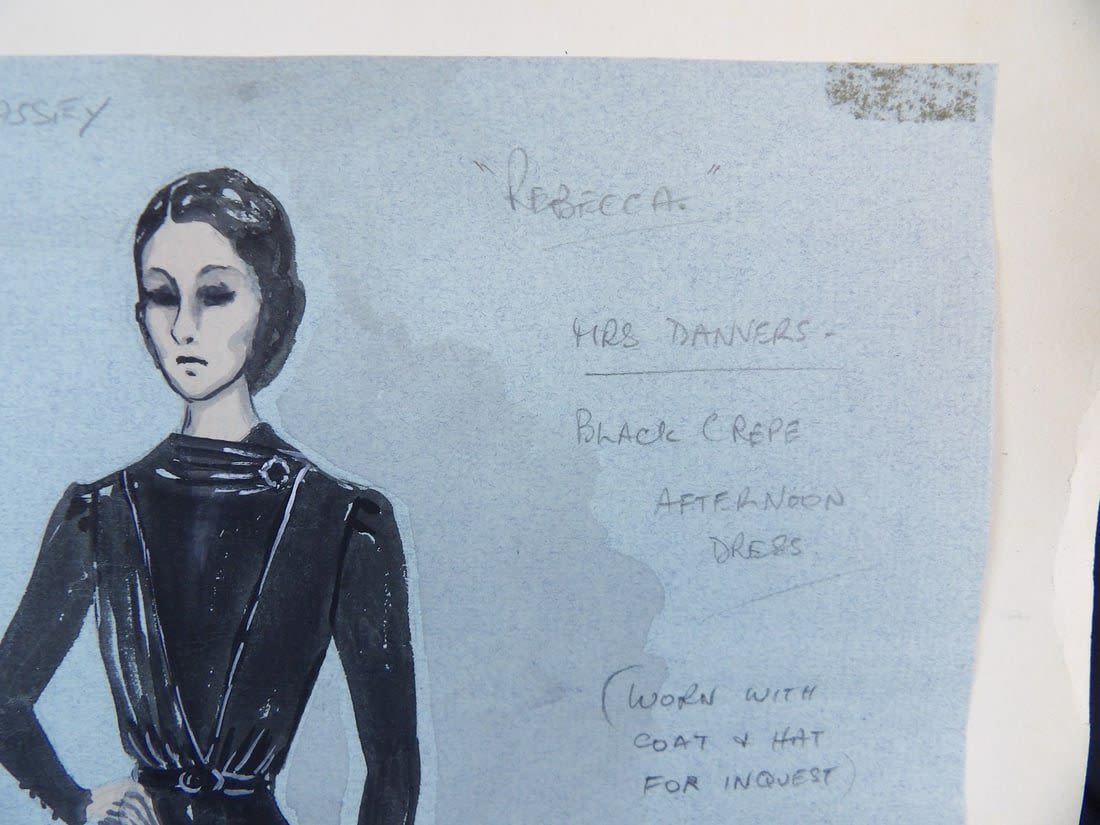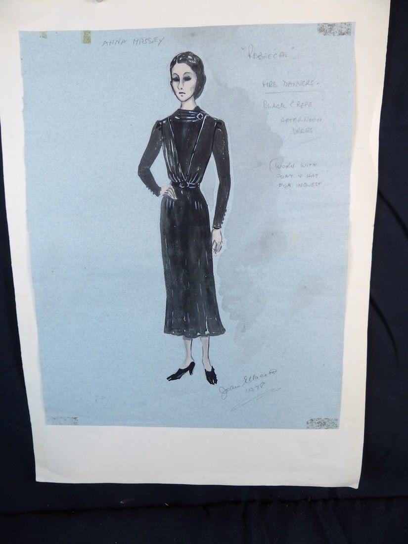 Design is for the UK Mini Series Rebecca. This is a rendering for Anna Massey’s Character Mrs. Danvers.Designed by Joan EllacottRoughly 11"x15"