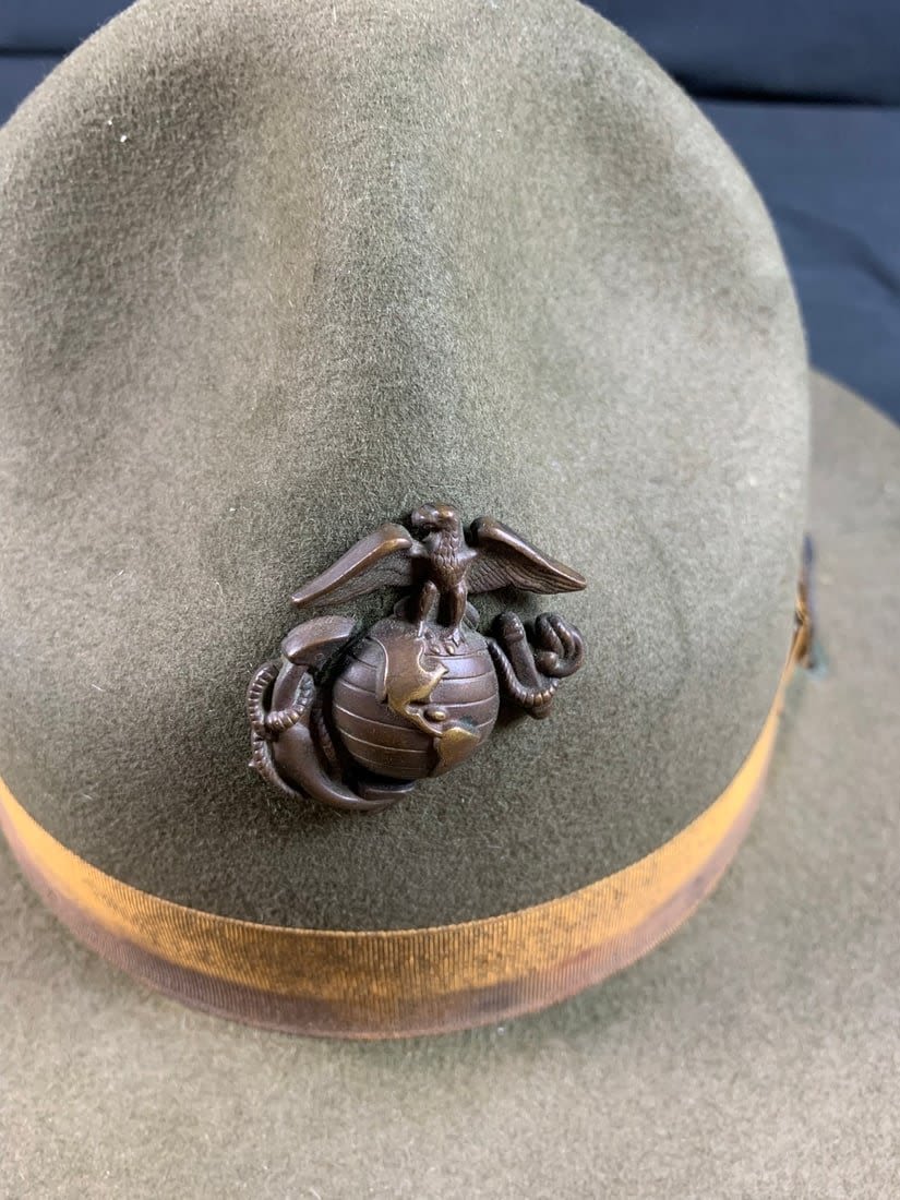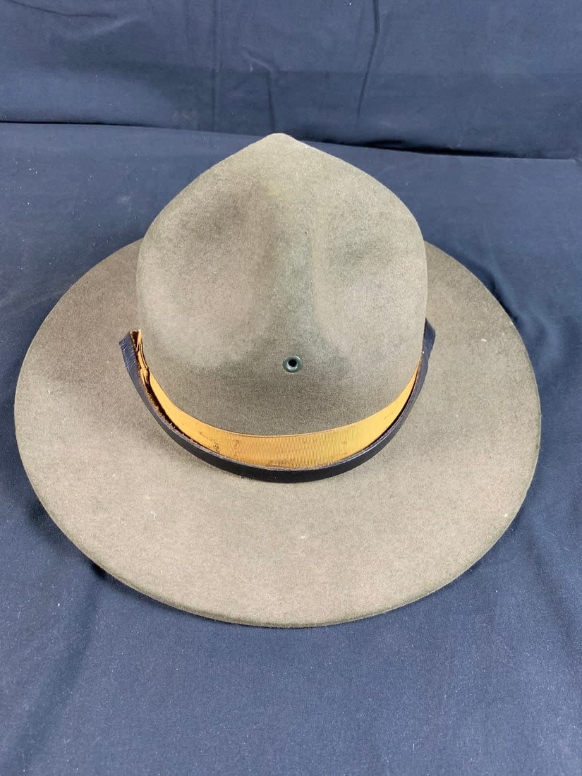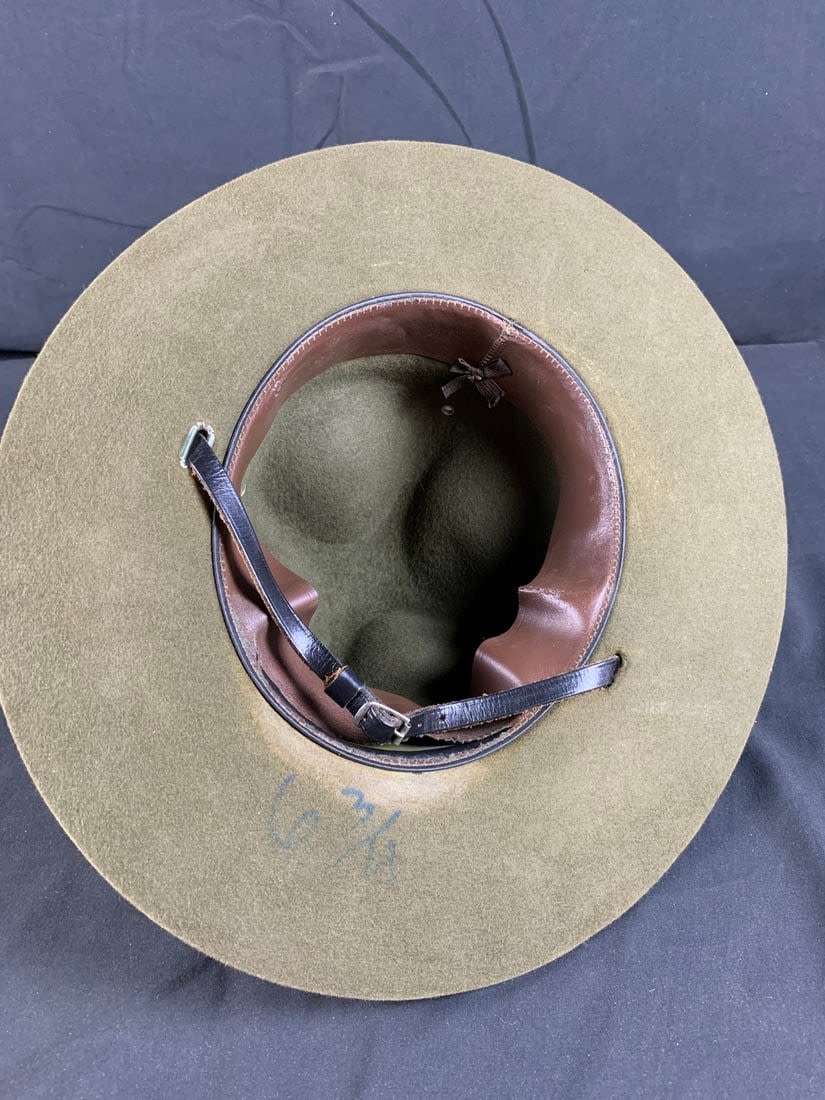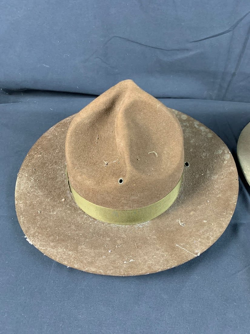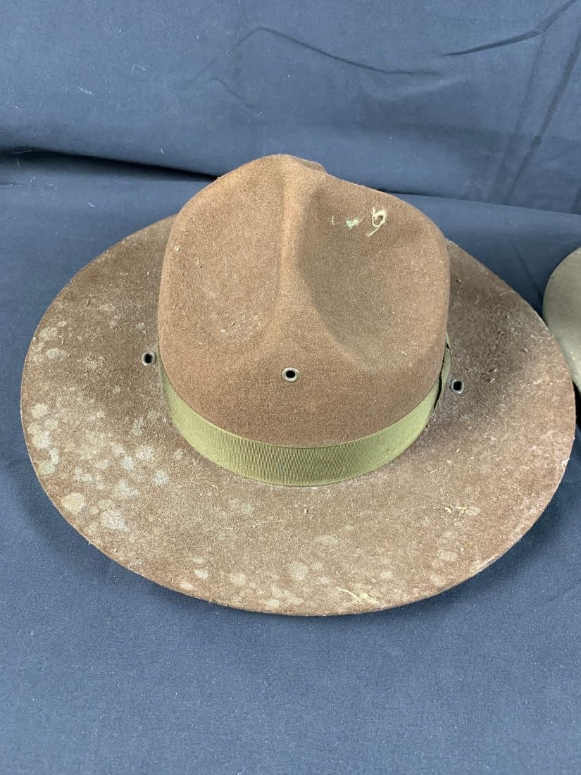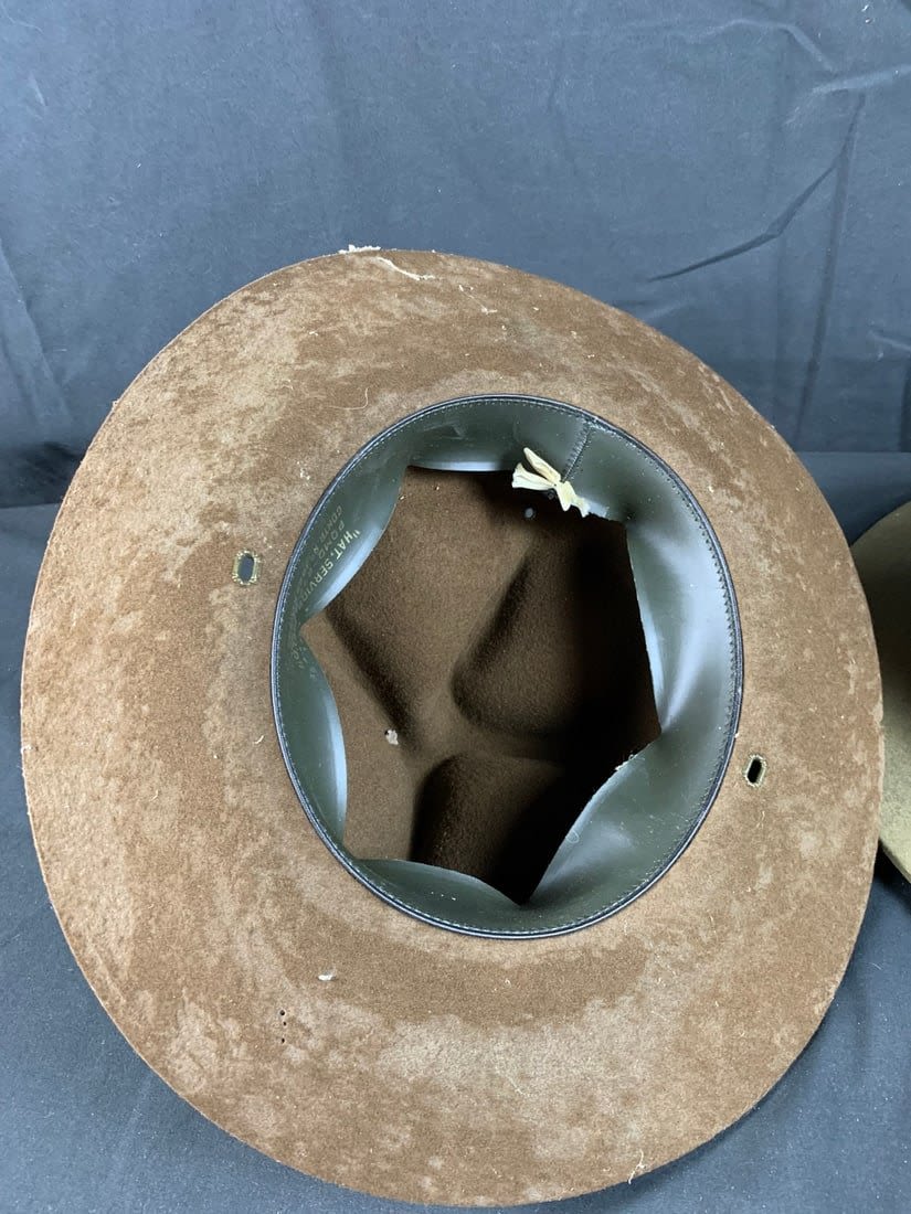 Please look at all photos for condition. EGA is a drop wing Screw back. leather sweatband is brittle on dark brown hat