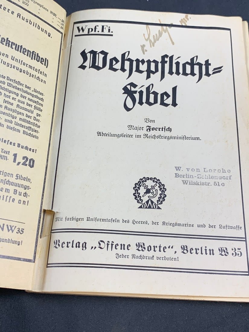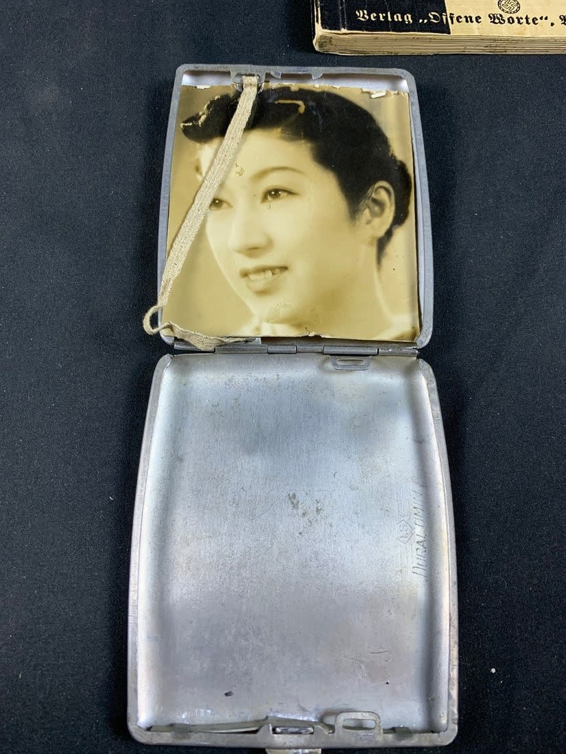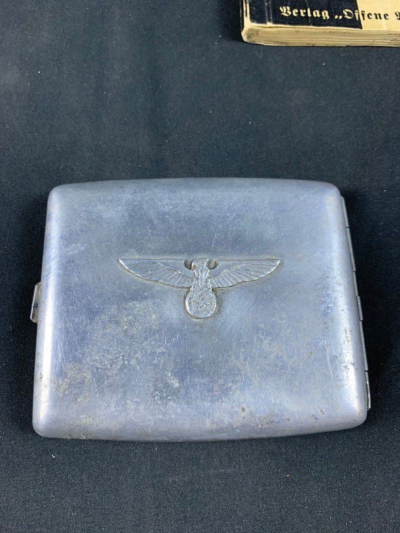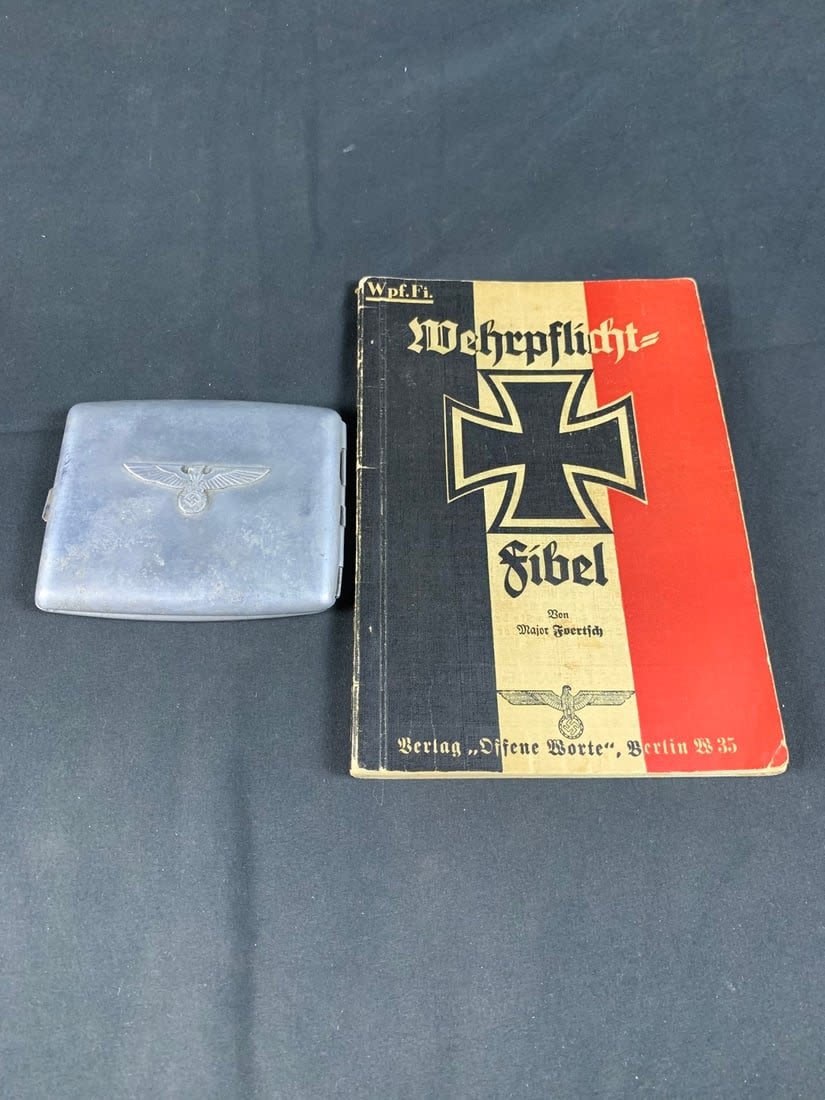 Lot includes Aluminum Cigarette case and a 1935 dated book on the Iron Cross