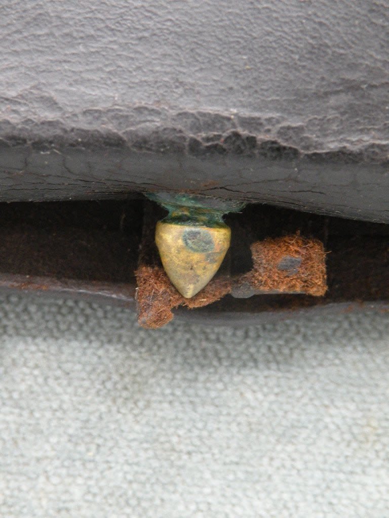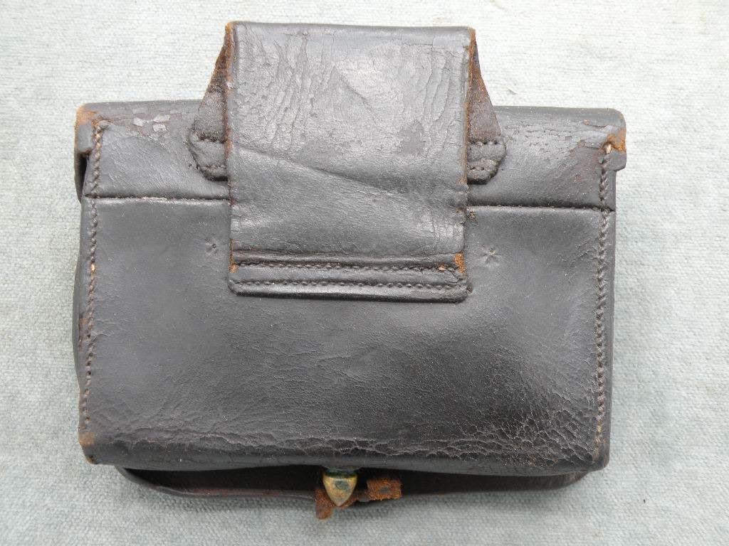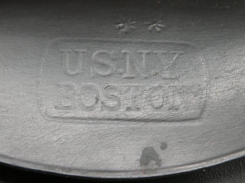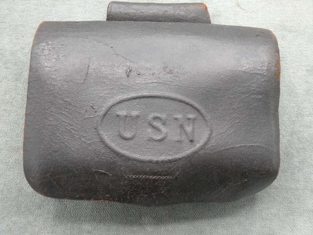 Civil War Navy Pistol box with bold, "USN" embossed flap and well marked on the inner flap to the US Navy Yard in Boston. Leather is in very good condition overall.