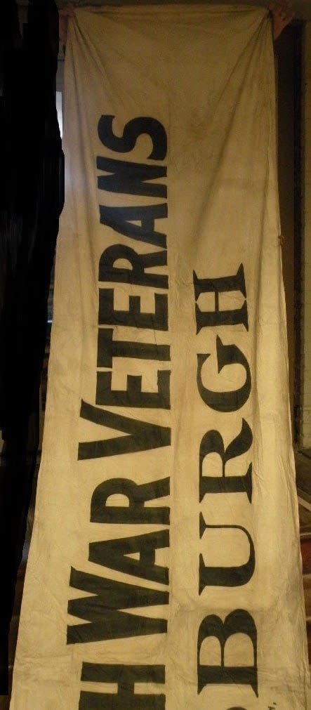 Fantastic early Spanish American War Veterans Welcome banner from Pittsburg, PA. Hand painted sign on very light cotton. Looks to be pre-1910. Approx 10 feet in length. Great condition with original ties.
