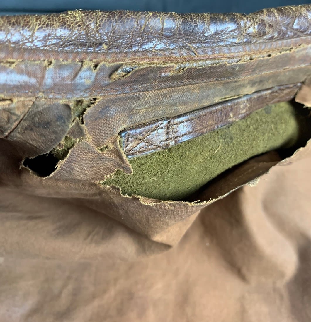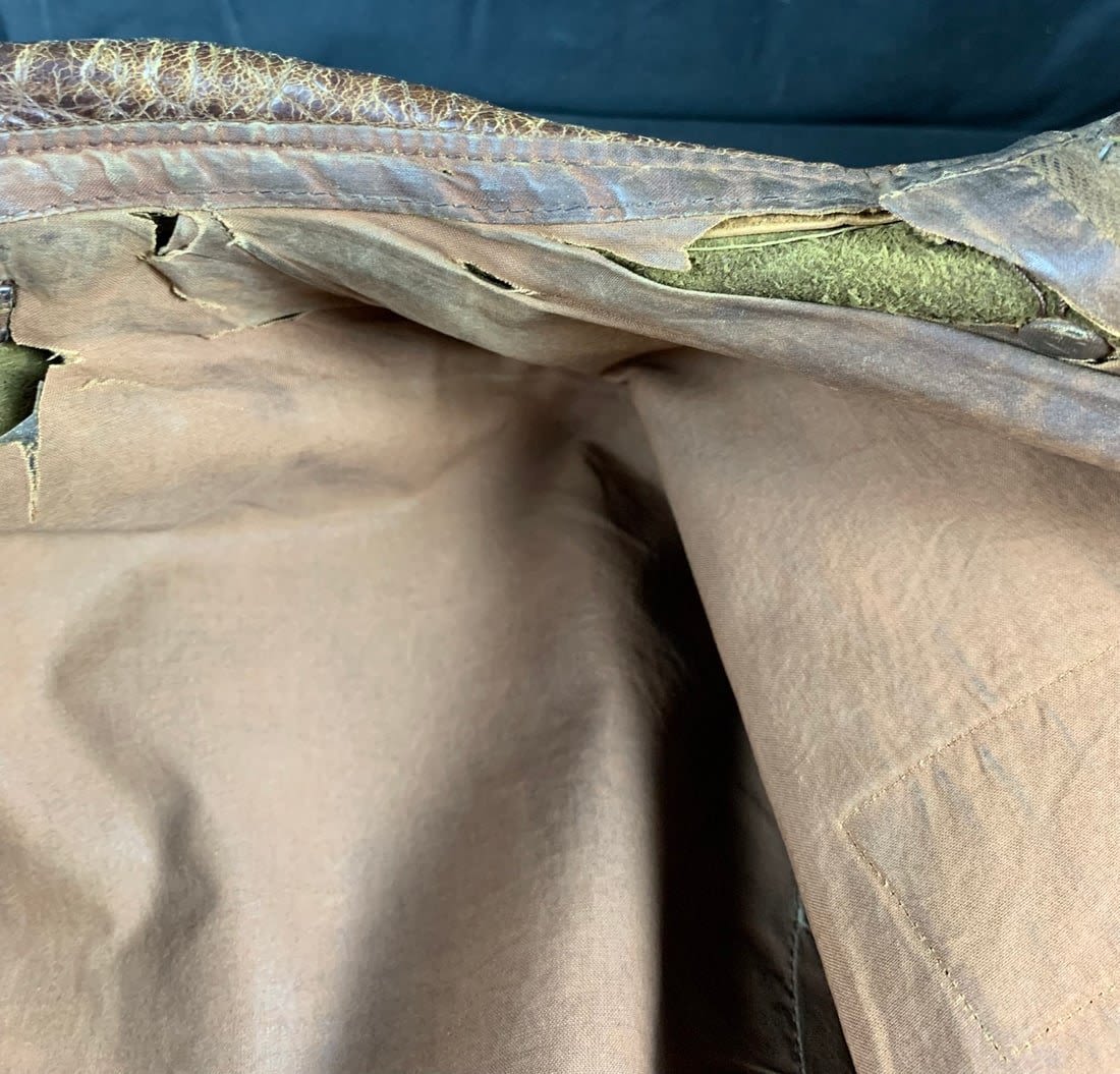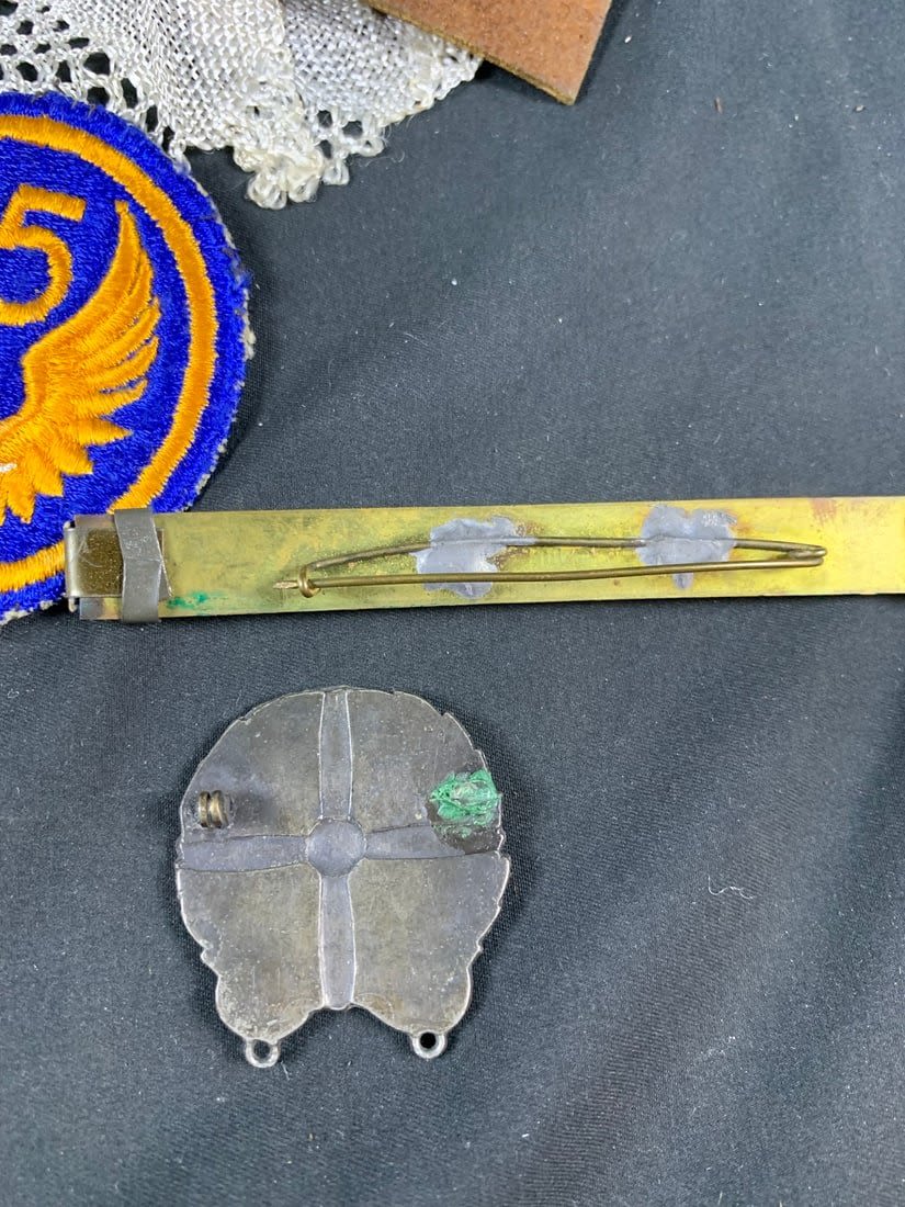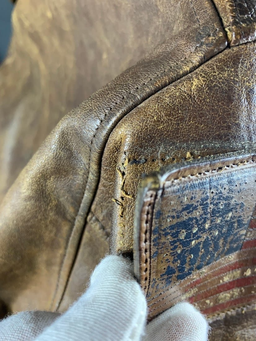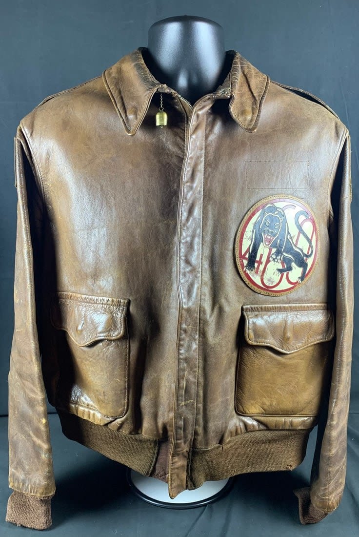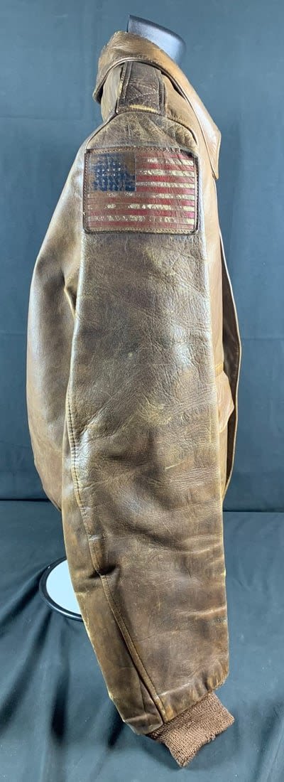 Named to Robert M Luescher. This group includes a beautiful original A-2 with 3 Leather patches. Leather is pliable. name tag is detached but is with grouping. Right sleeve flag patch has started to separate from jacket but still there. Very minimal mothing to waistband and cuffs. Zipper Functions properly. You will also receive an original 460th bomb group bullion scarf which bare Roberts initials. Bullion 15th AF Patches and Theater made ribbon bar. Lastly a beautiful Bullion Sweetheart Pillow Case. Please note some of the loose patches do show signs of mothing