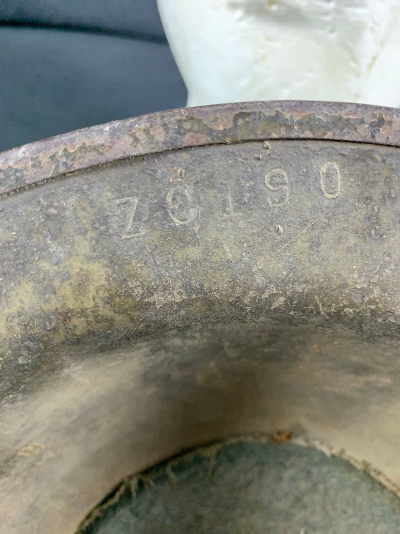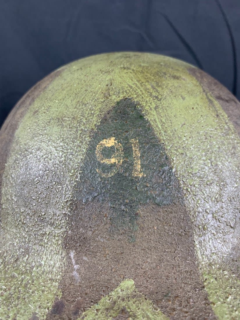 Heat Stamped ZC 190. Stunning period camo paint and 91st infantry division unit mark. Liner and chinstrap have come loose but are original to helmet