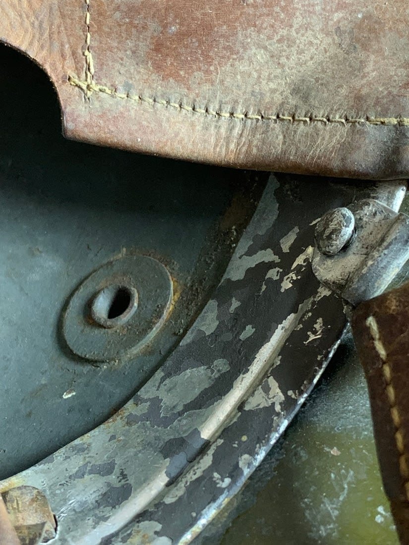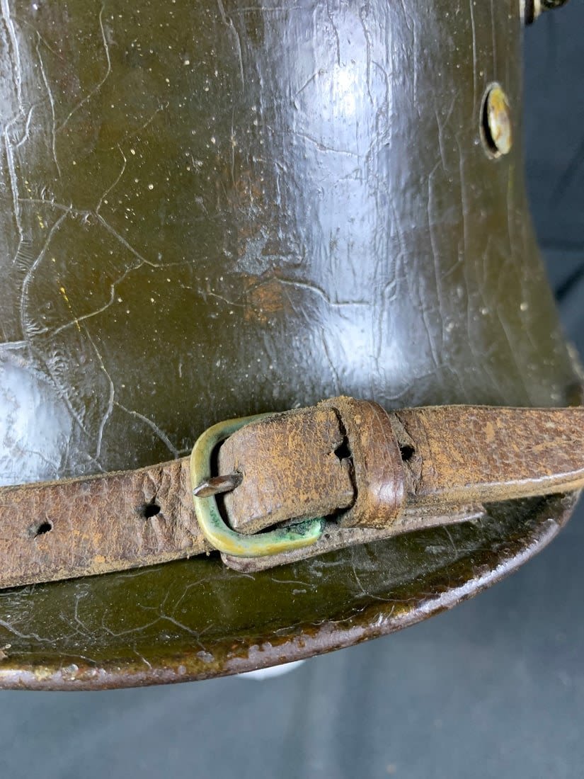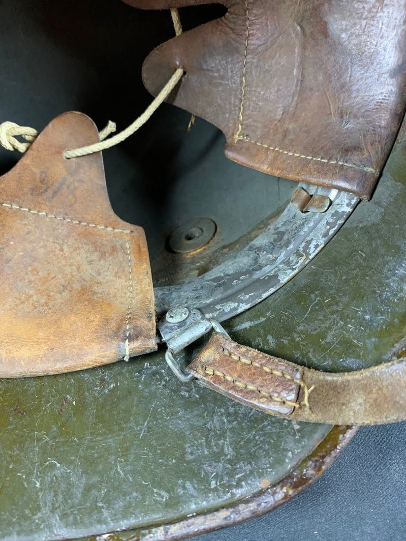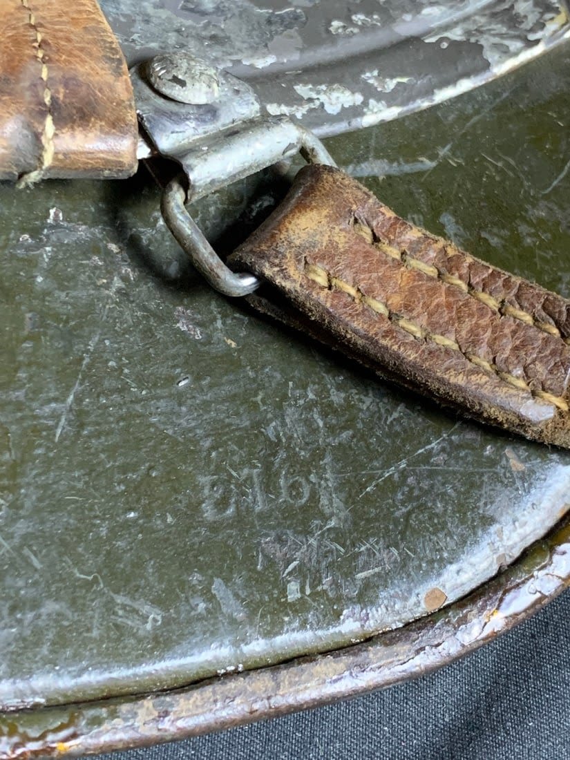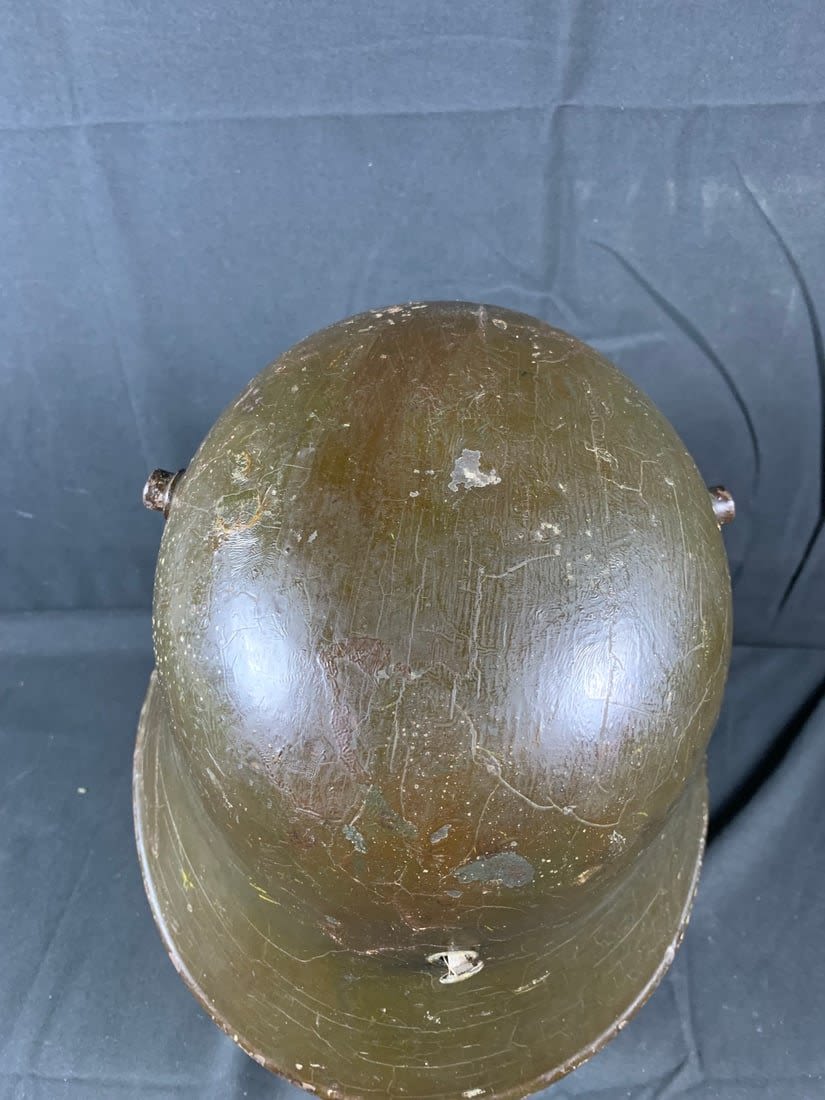 Helmet does show signs of being laquered for preservation. Stamped ET6. Possibly reissued for WW2 Use.