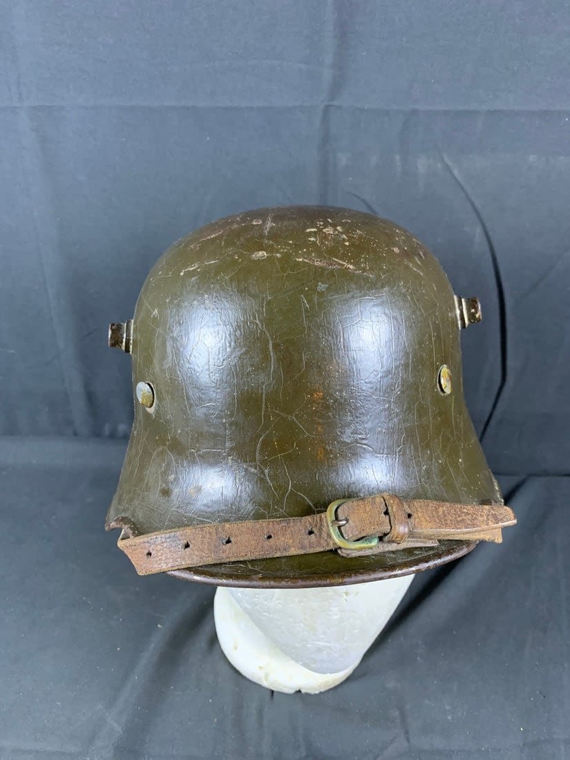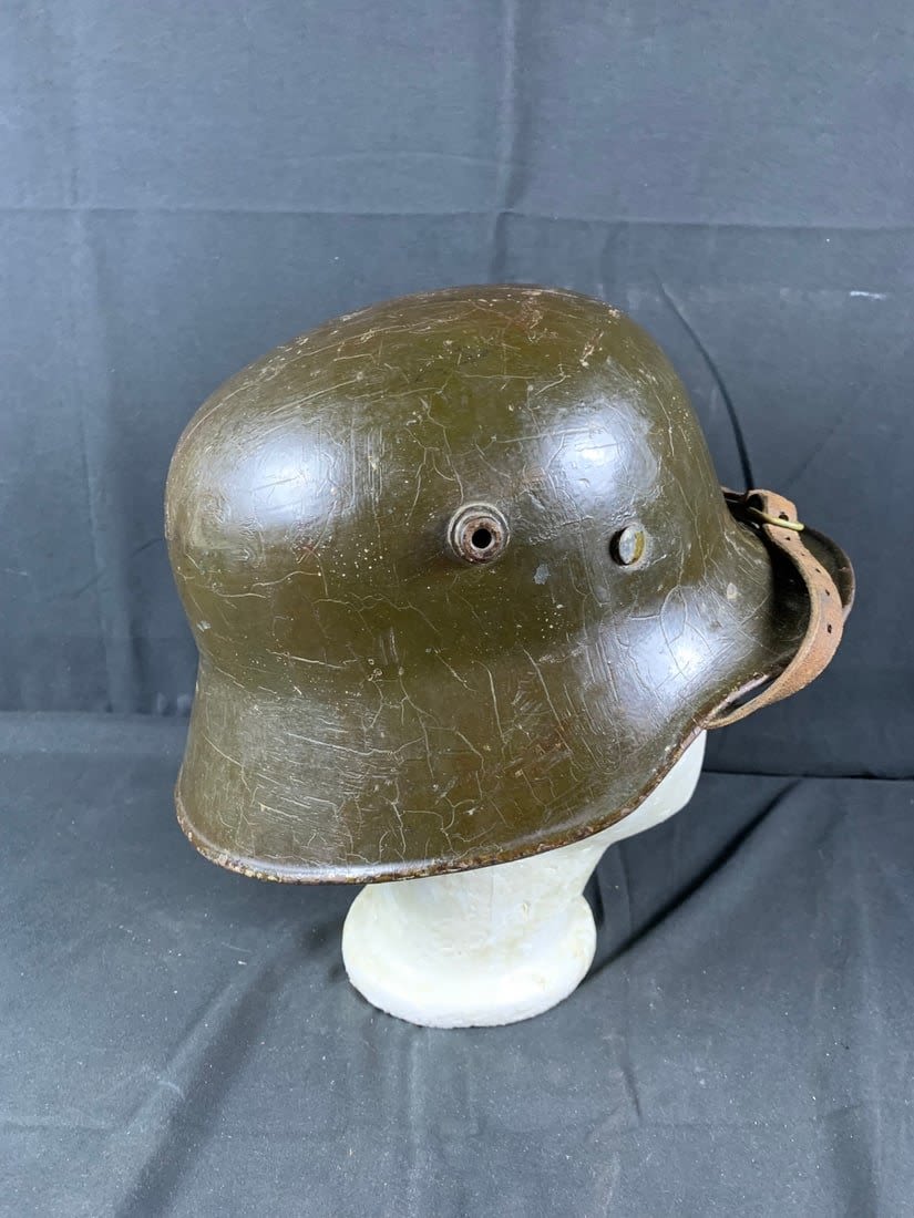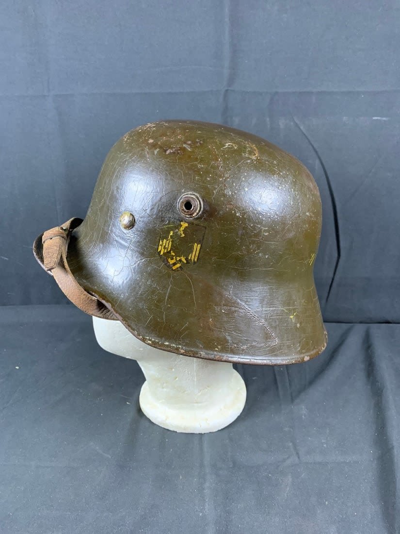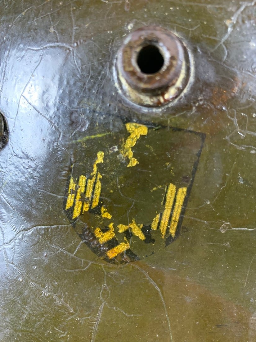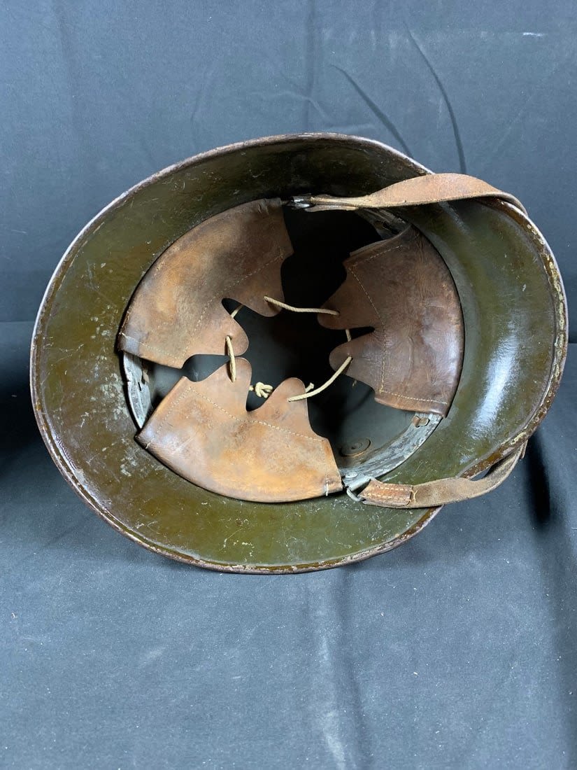 Helmet does show signs of being laquered for preservation. Stamped ET6. Possibly reissued for WW2 Use.