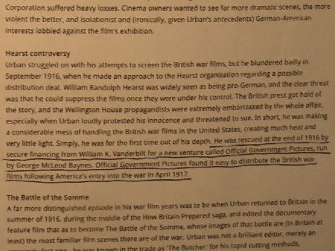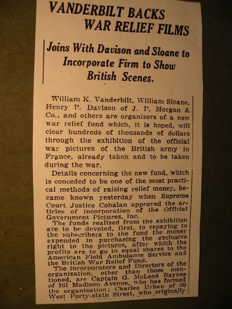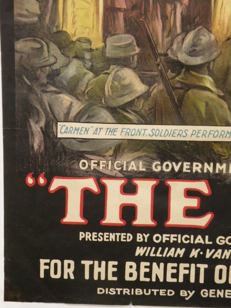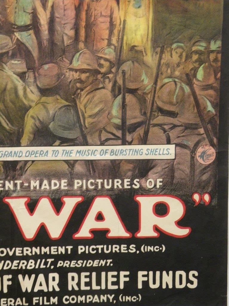 Extremely Rare 1916 War Film Poster, distributed by William K. Vanderbilt. 20 x30 inches. Repair to corner. Only one of these I have ever seen or heard of.