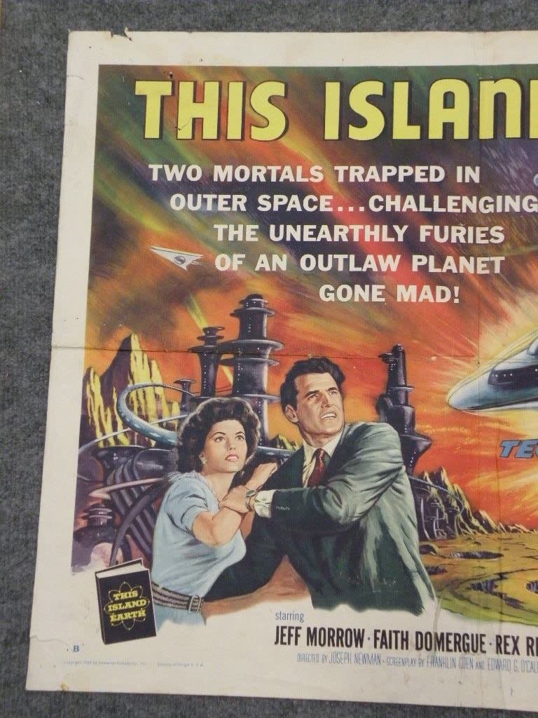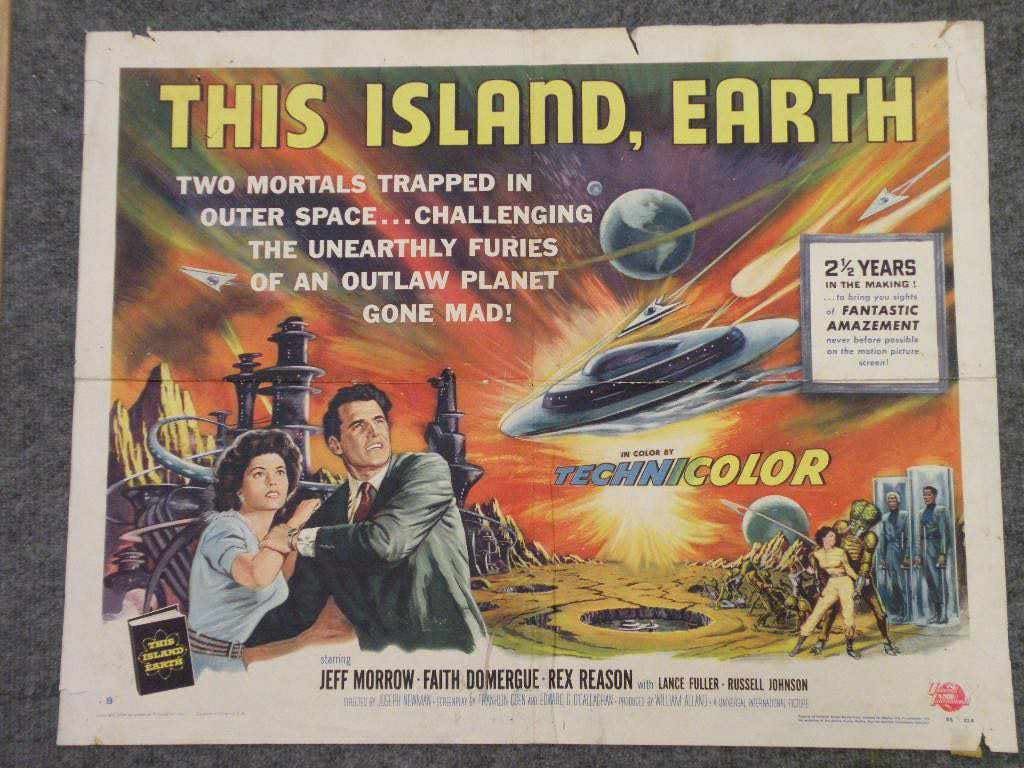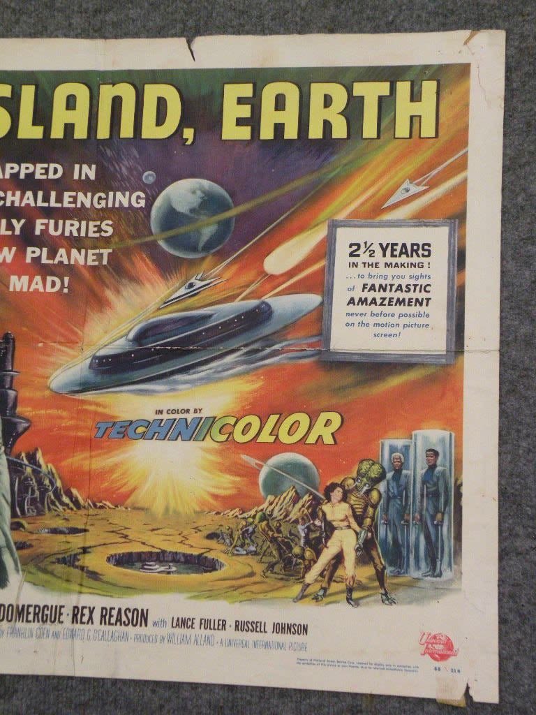 Original Sci Fi Movie Poster for "This Island, Earth", Universal Pictures, 1954. Measures 22 x 28 inches. Some edge chips and tears.
