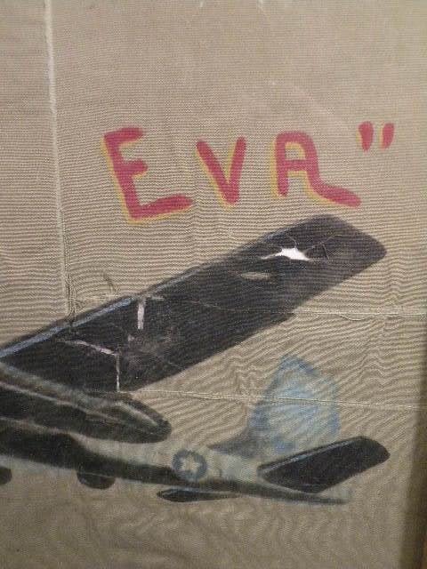 Very interestingWW2 painted B-15 Flight Jacket, back panel. The jacket must have been in terrible condition and so the painted back was removed from the jacket and framed. Nice artwork. The back has been taped with what appears to be packing tape! Too bad but still very cool. Home made frame has been discarded.