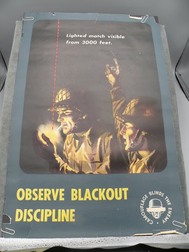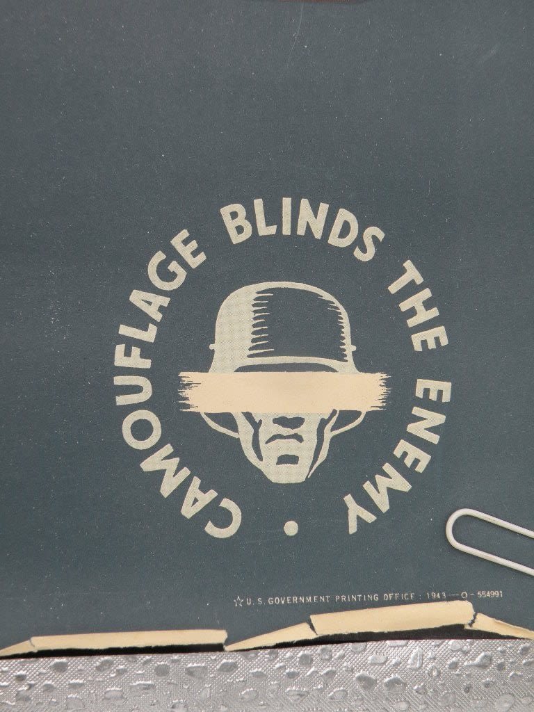 Very unusual 21 x 13 inch WW2 Camouflage related War Info poster. Some edge chipping and tears as shown.