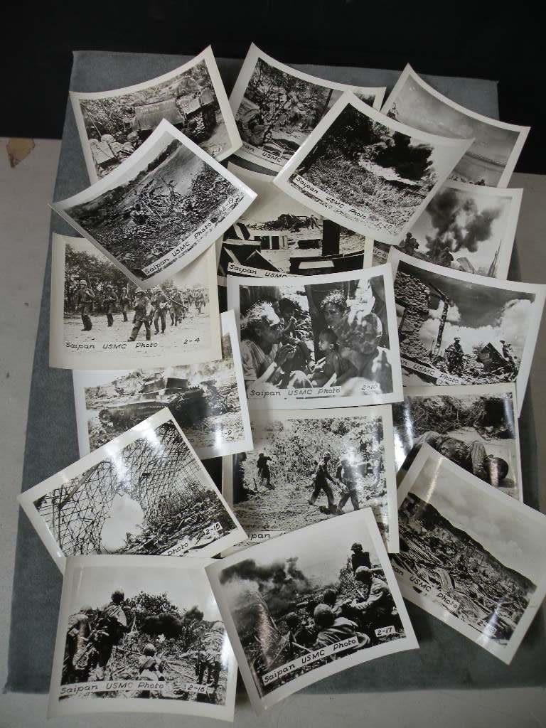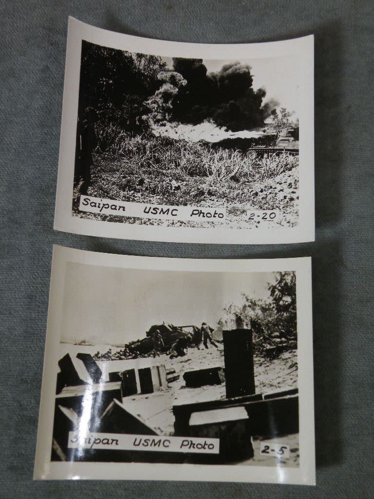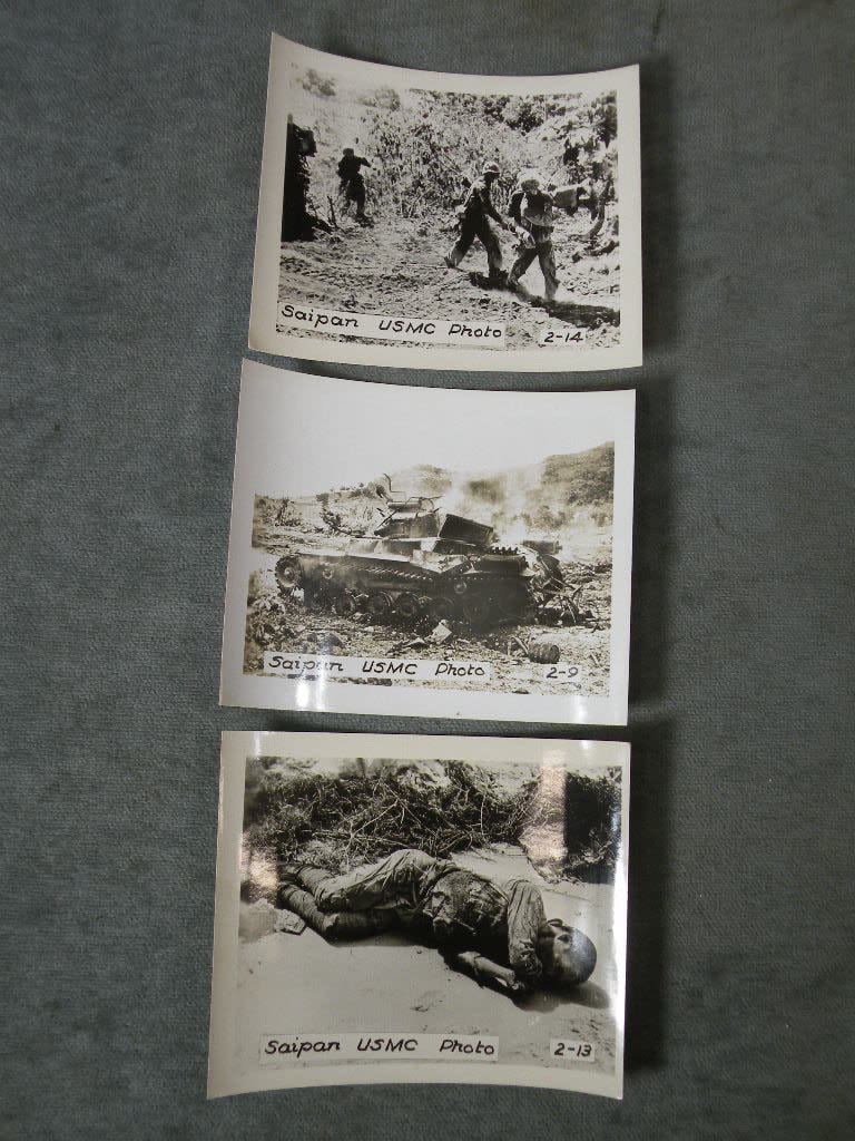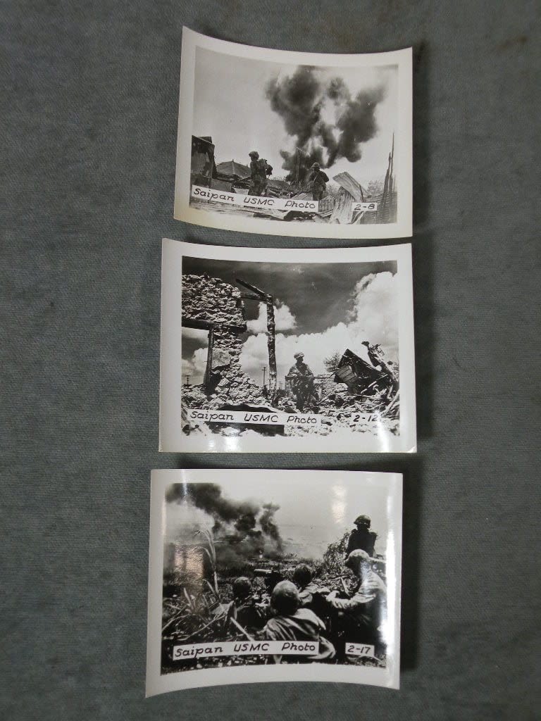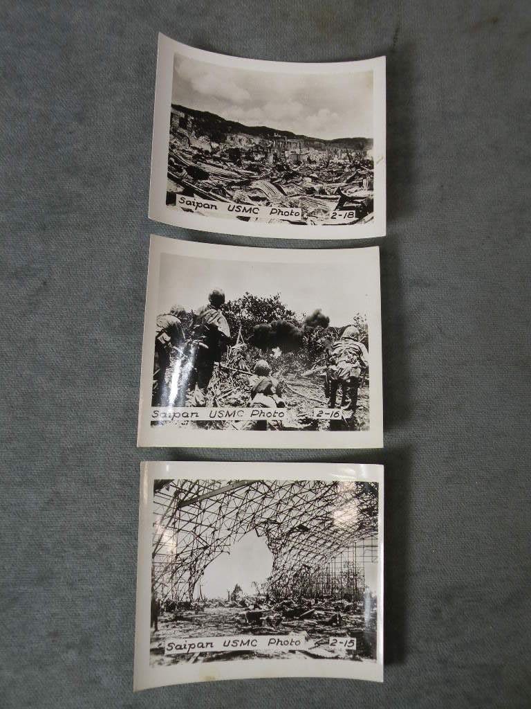 Set of 17 WW2 photos of Marines at the Battle of Saipan. Destruction everywhere, dead Japanese, destroyed aircraft etc. Each is 4 x 5 inches.