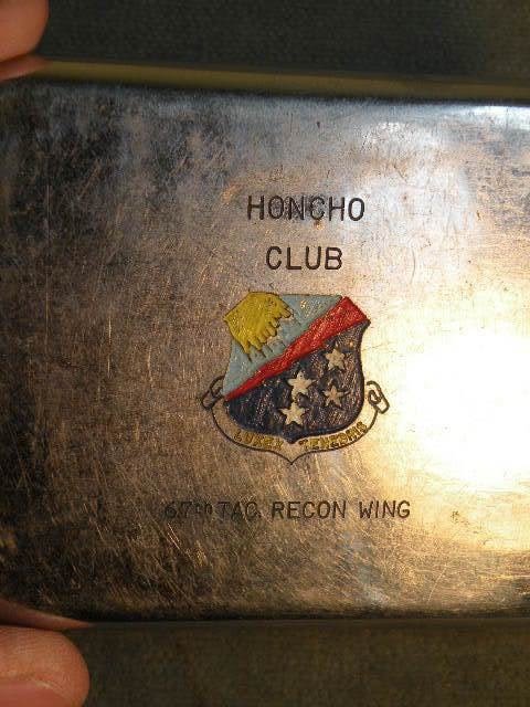 Vietnam War era cigarette case from the 67TH TAC Recon Wing. The "Honcho Club"