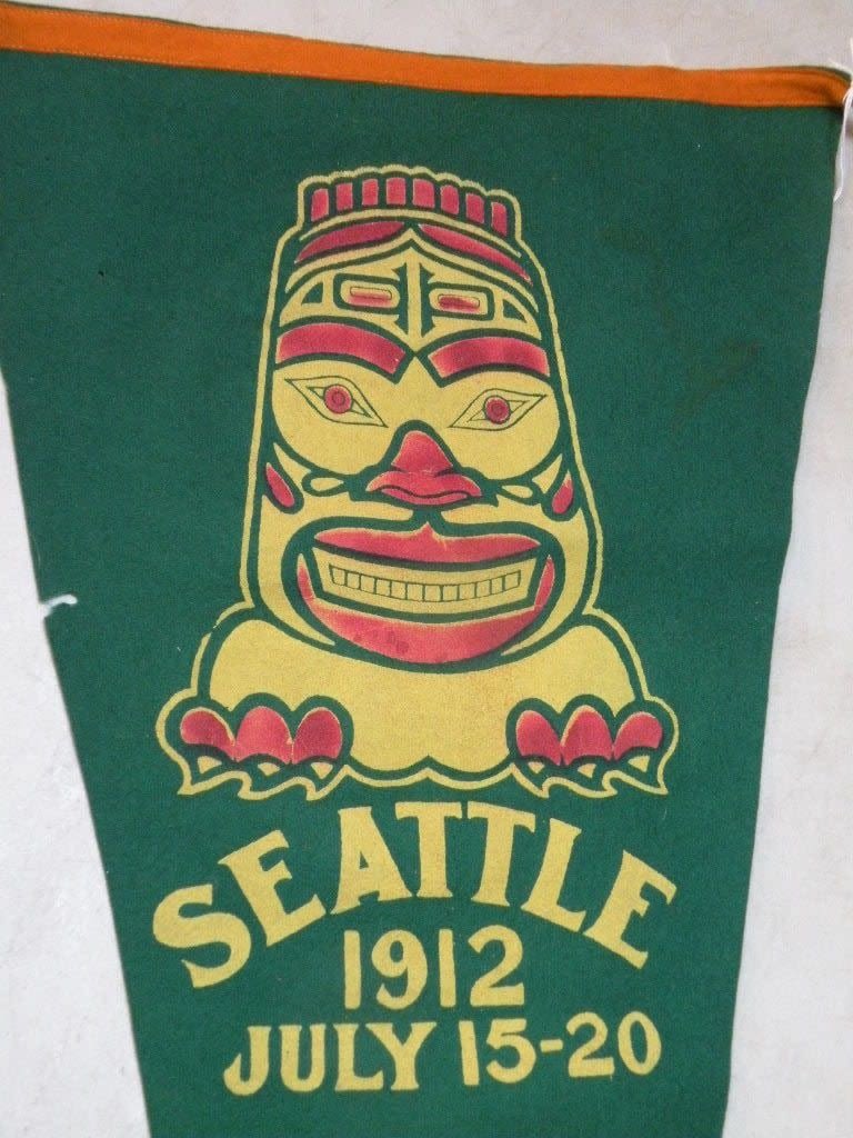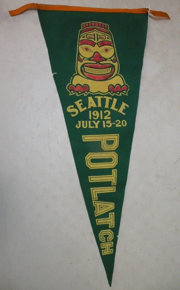 Rare felt celebration banner for a traditional Northwest Coast feast tradition that had previously been banned by Canadian Settlers.
