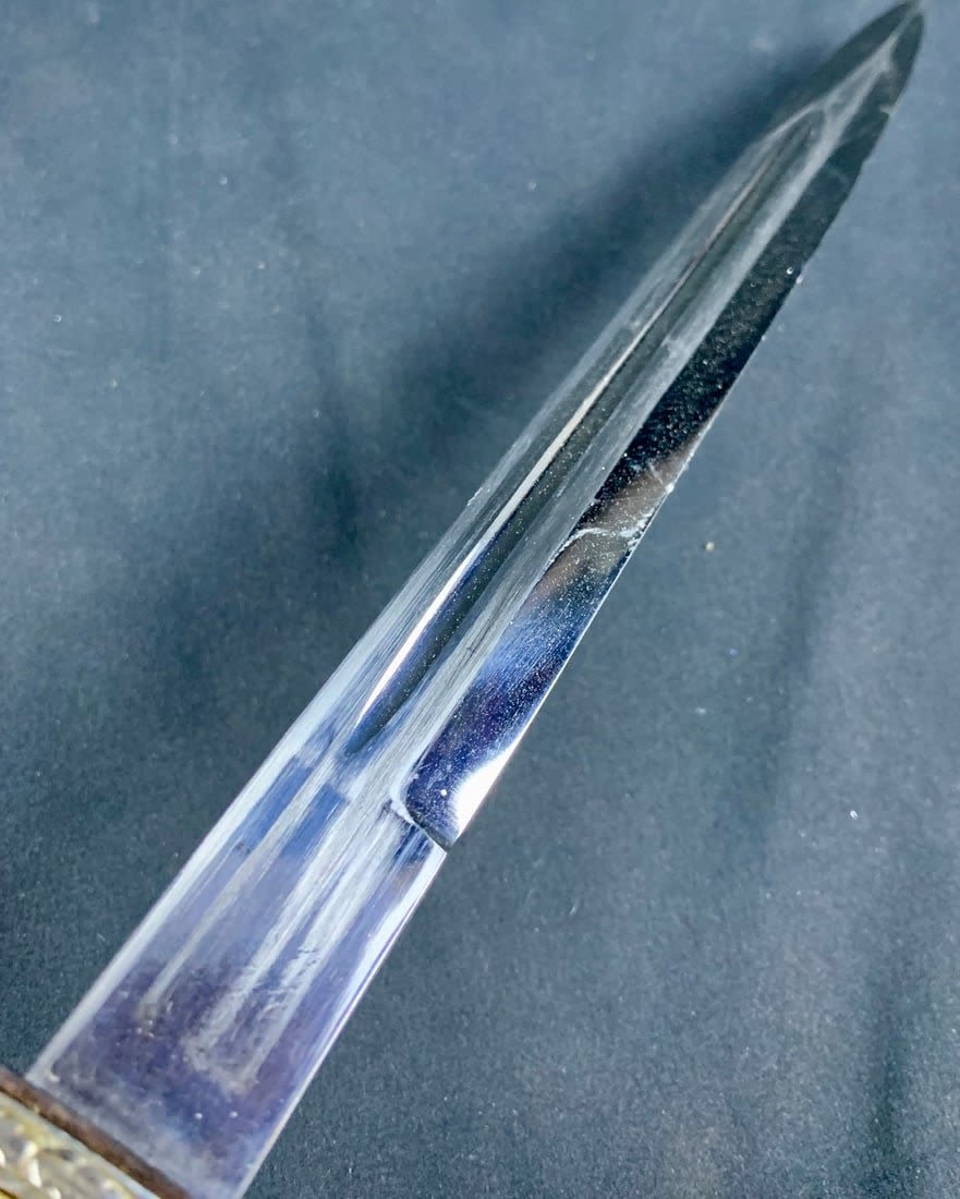 Beautiful piece. Lower tip of scabbard is a little loose