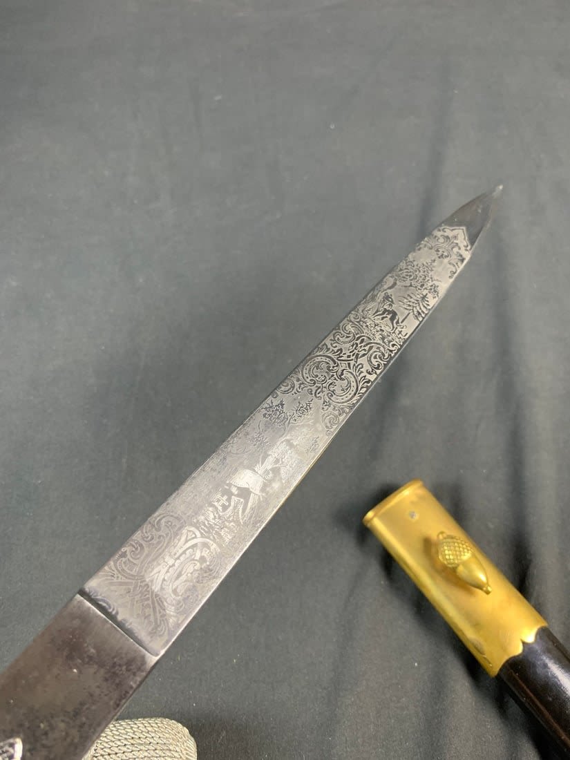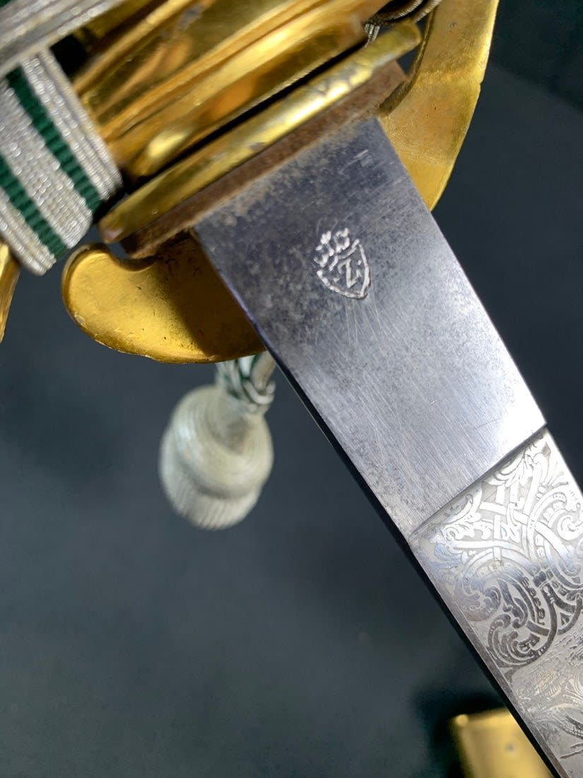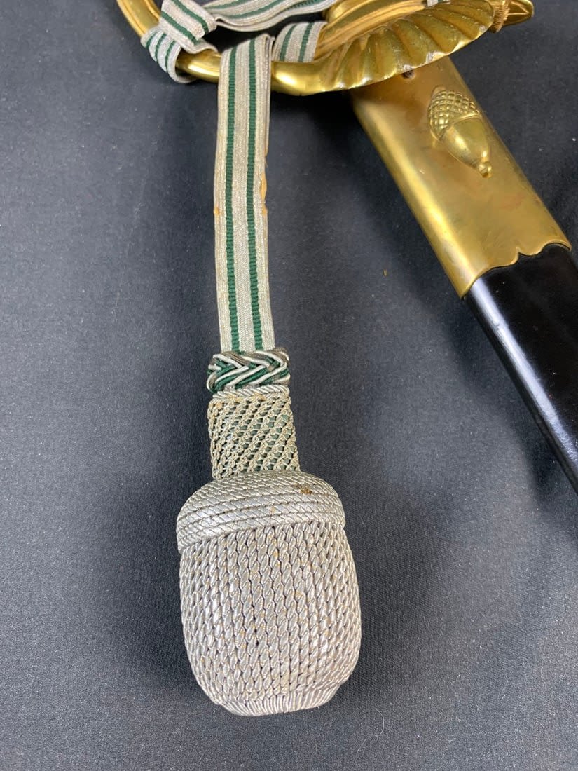 Maker marked. Little edge wear to portepee and a small amount of gold gild loss on backside of handle.