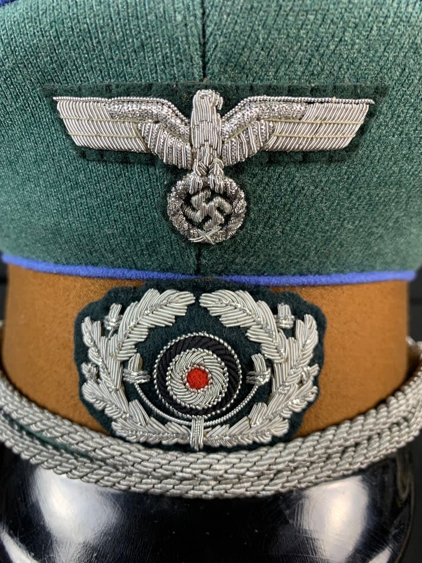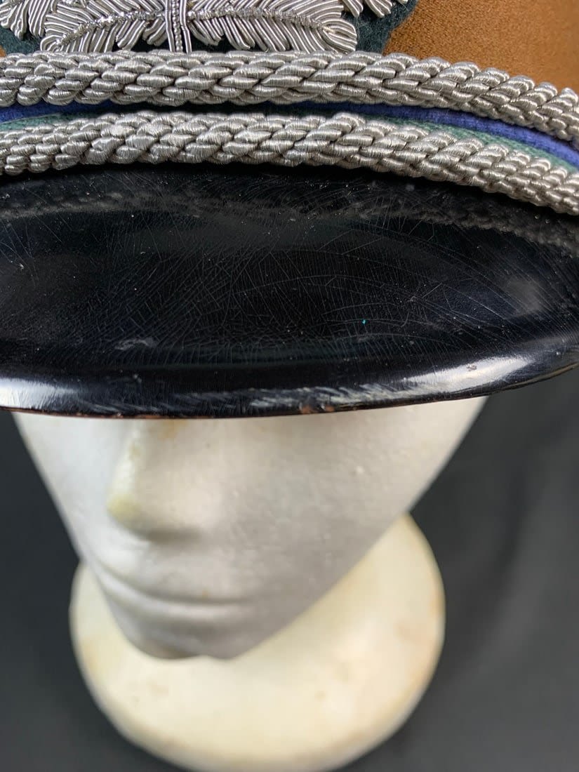 Visor features rare Embroidered Bullion Insignia. Small scurr to brim of visor