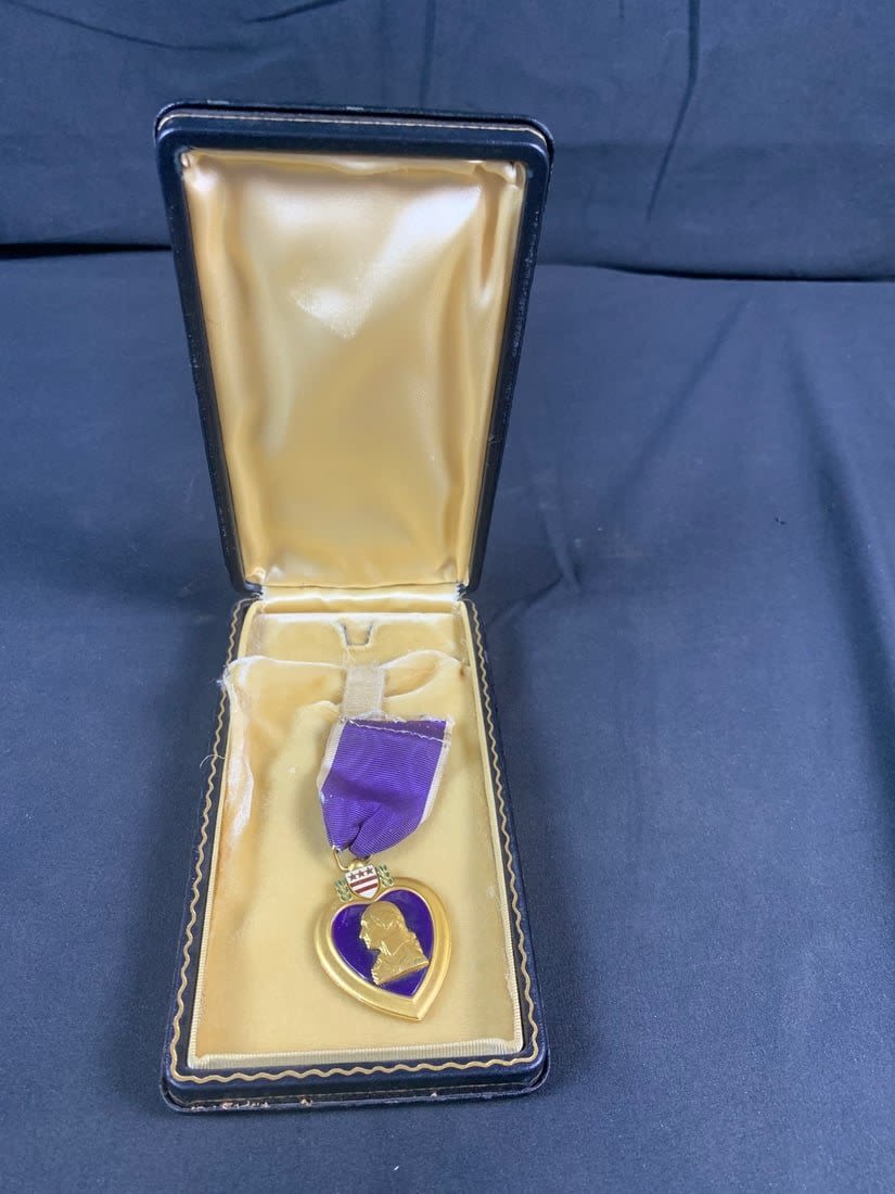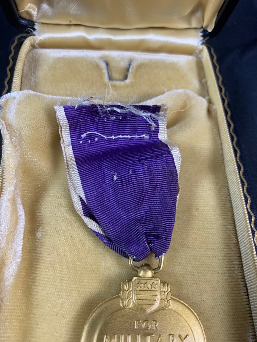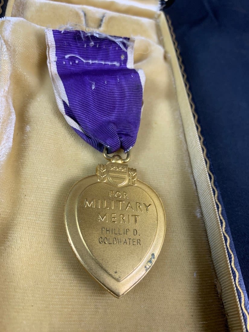 Please note interior of case is torn and purple heart is missing broach. Named to a Phillip D Goldwater
