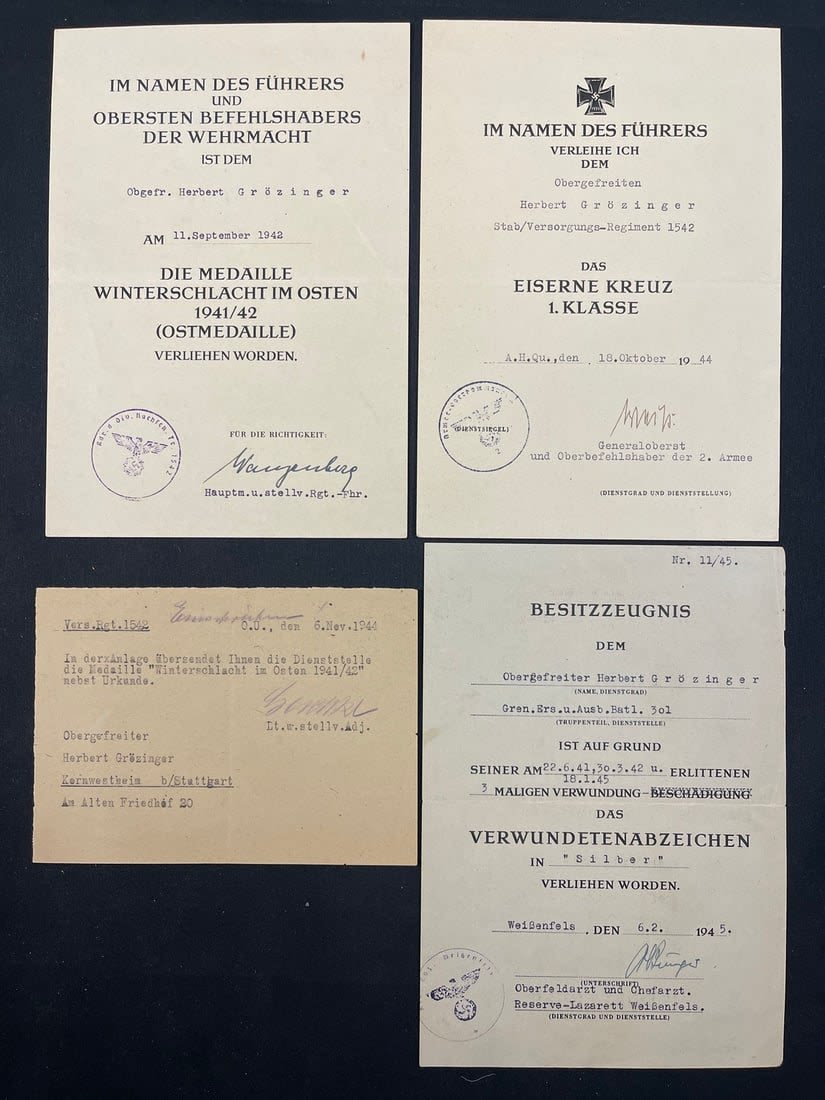 Includes all original documents as shown Russian front. 542nd Volks Grenadier Reg.