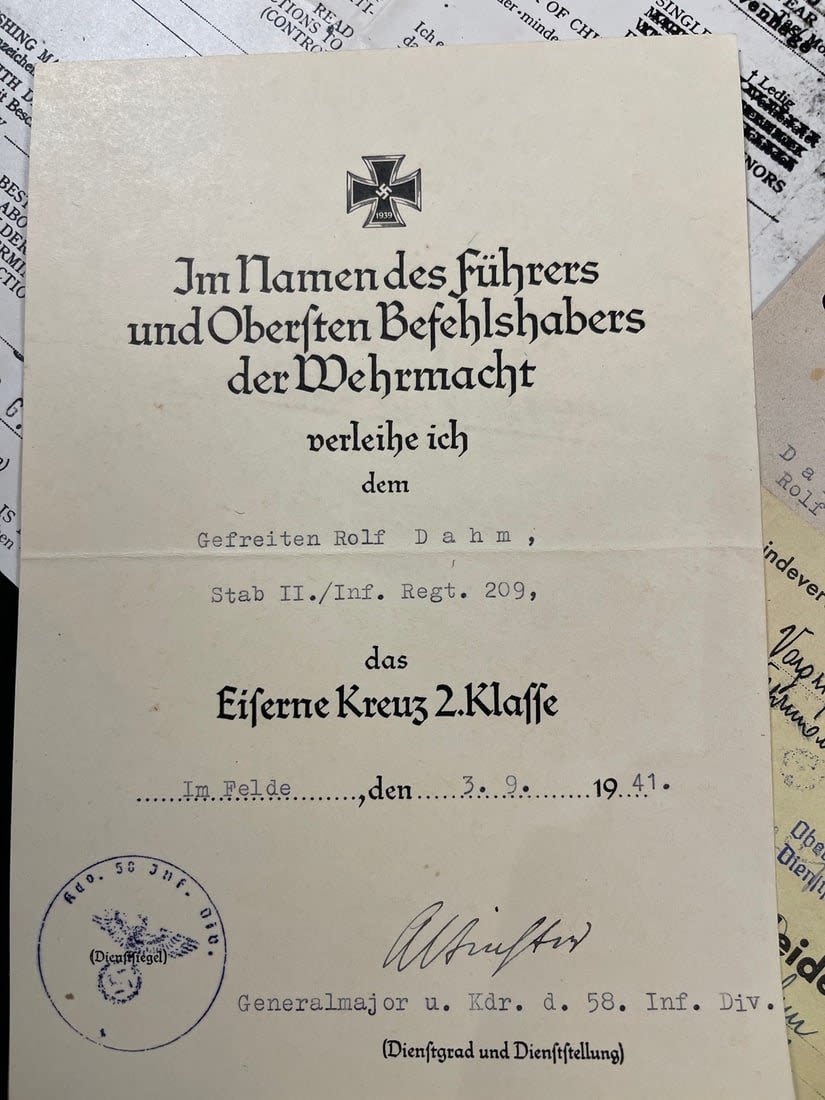 Assault on Leningrad document grouping. Iron Cross 2nd Class. Extensive research included.