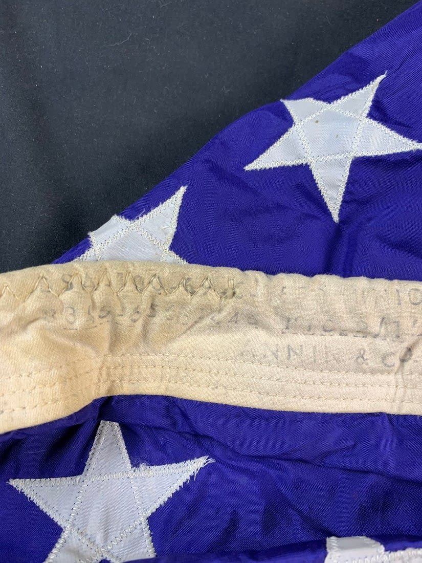 Dated 1969. Staining present on center of flag. Roughly 32"x22"