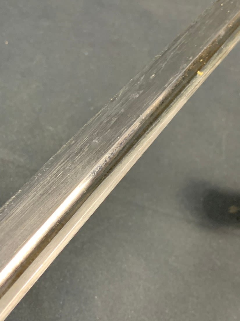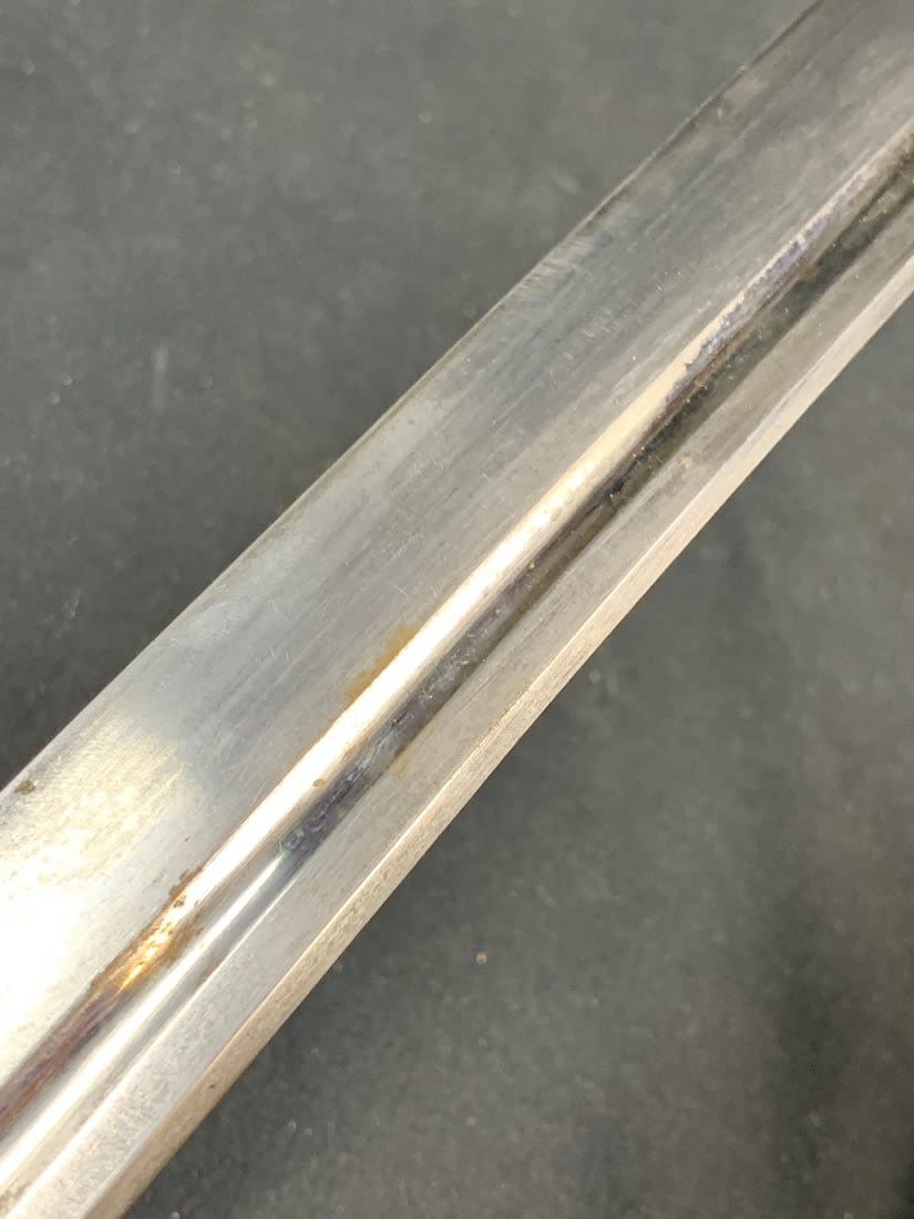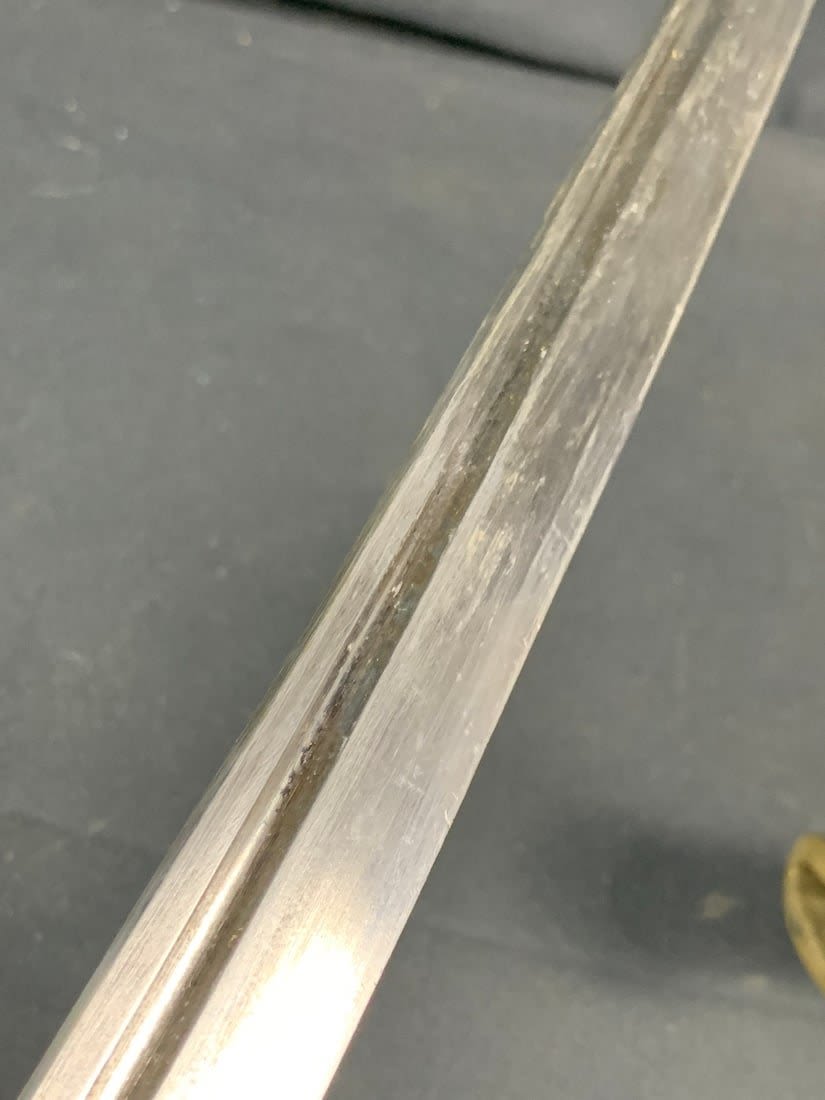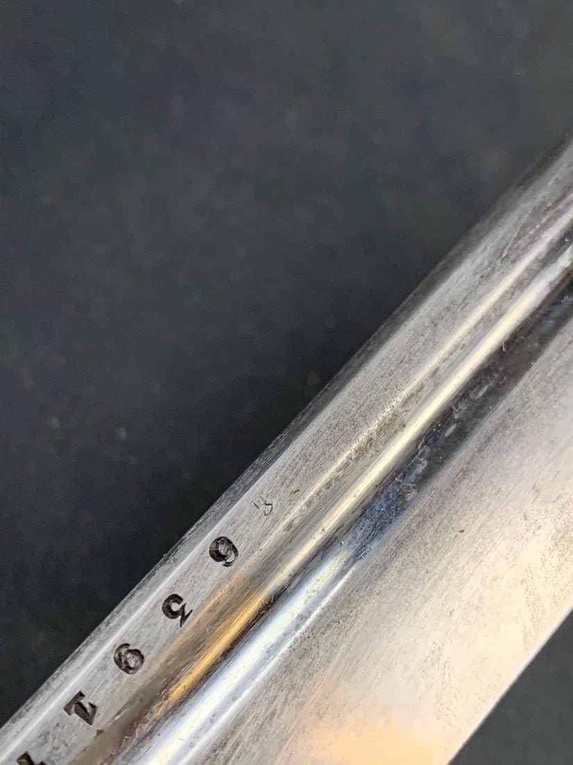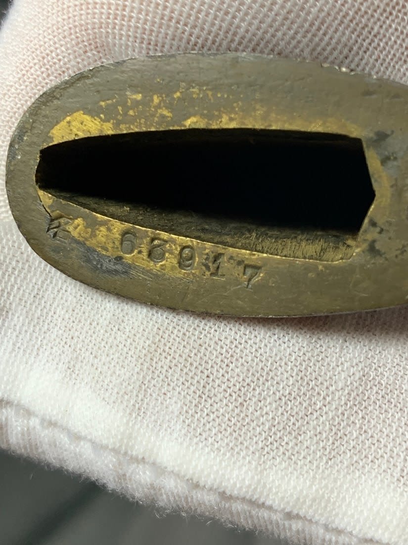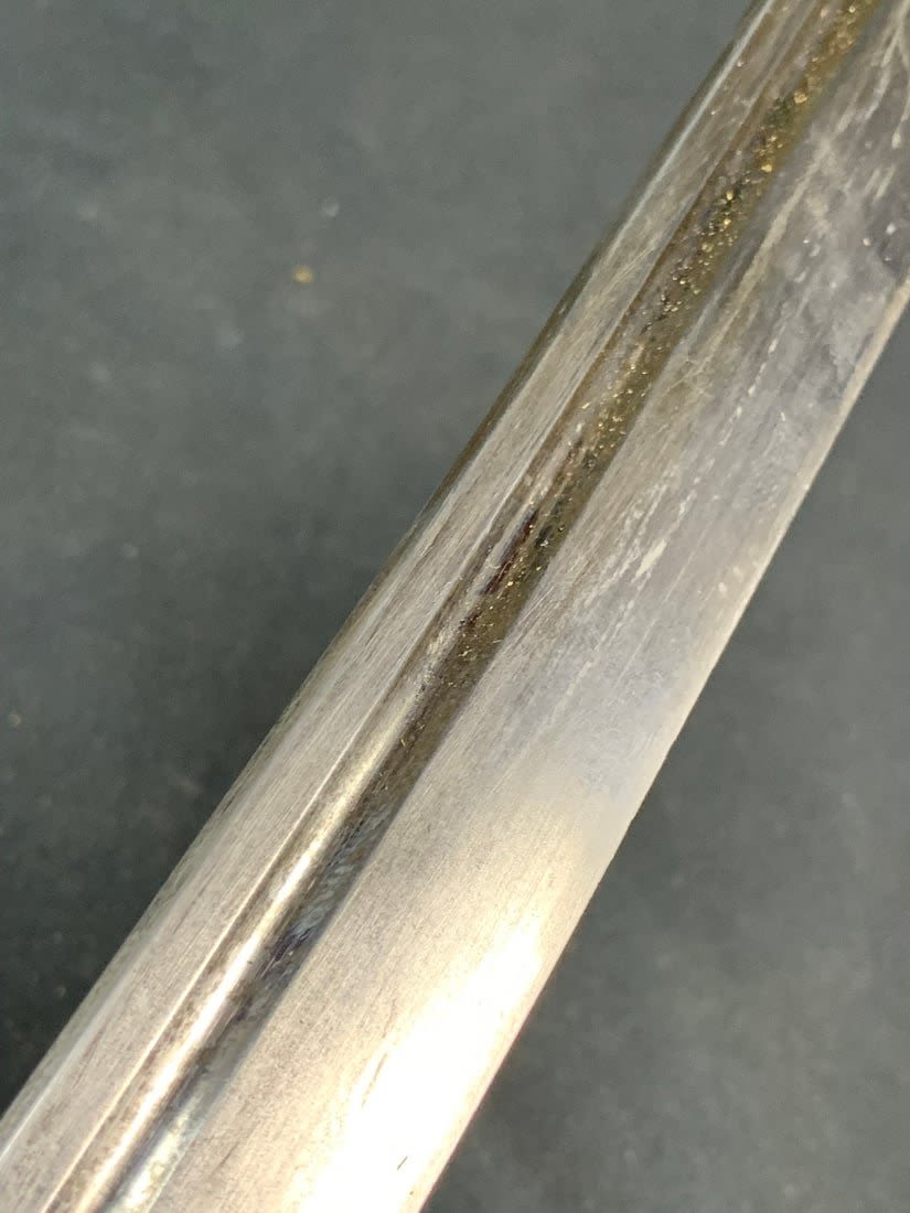 WW2 Period Japanese army NCO Gunto Sword. The aluminum handle shows service wear with some of the brown paint missing. The fuchi hilt collar bears the mark of the kokura arsenal as well as nagoya inspection stamp and the Gifu Sword Company Makers mark.The positioning of the serial number on the sword blad indicaties this blad was manufactured at the nagoya arsenal but produced under the kokura arsenal administration.The blade and Scabbard have Matching Serial numbers. Blade has spots of grey but no chips or active rust.