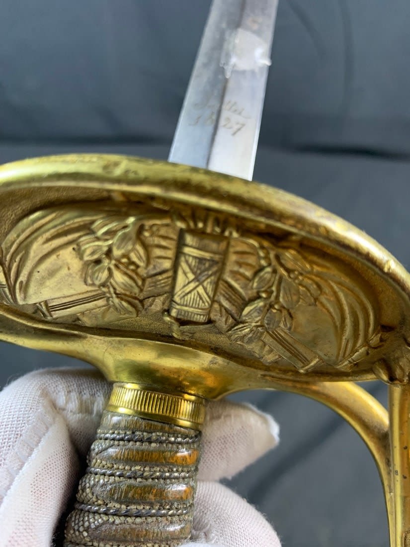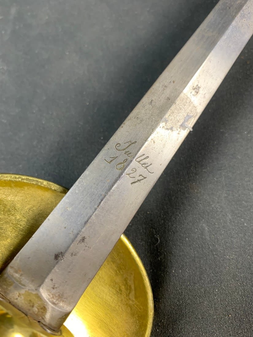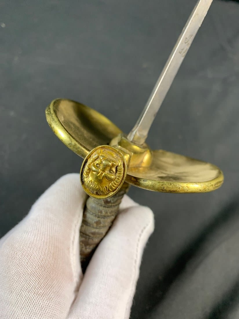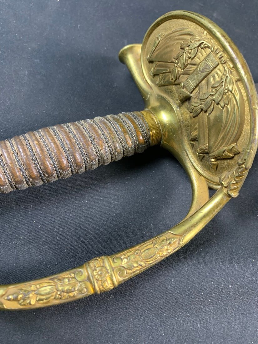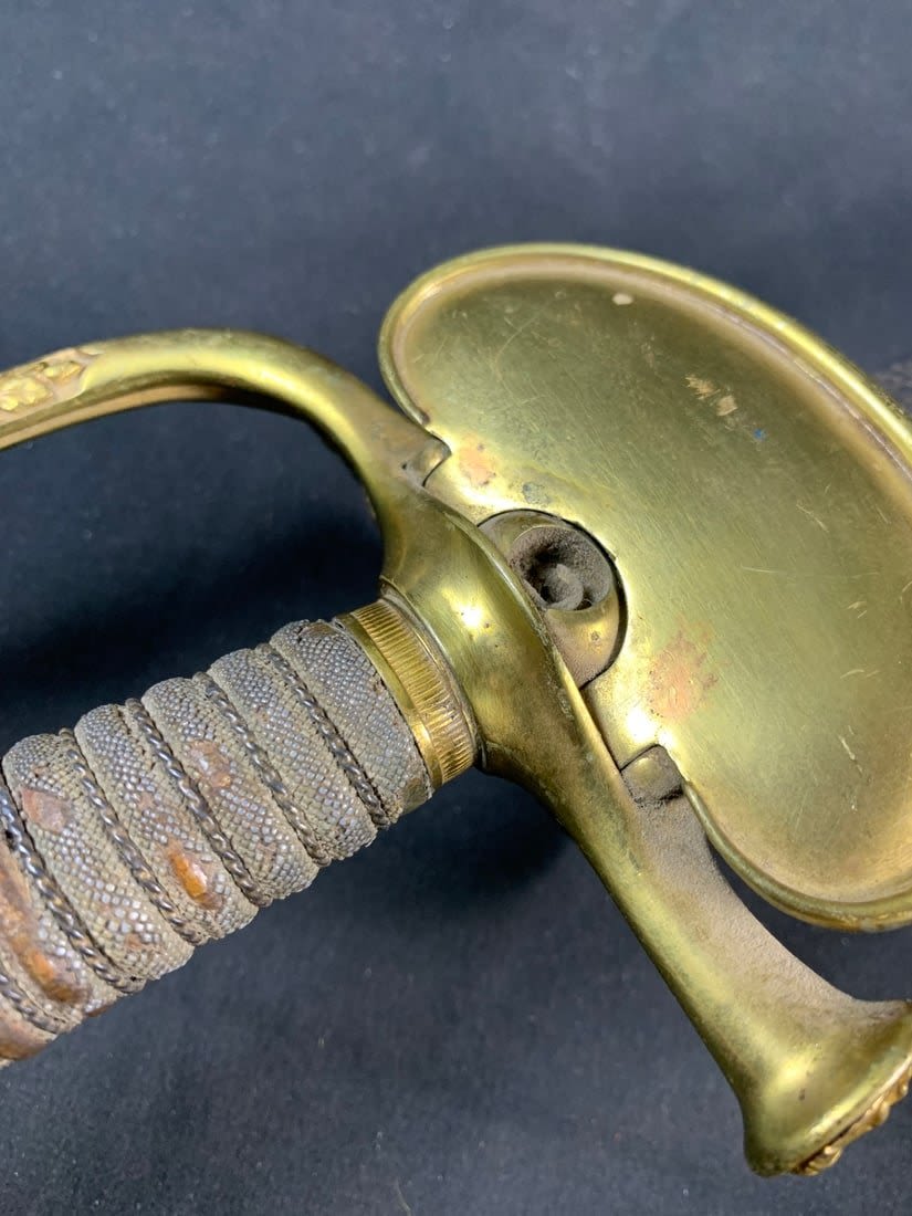 No Scabbard. Blad hassigns of graying and rust. Handle wrap is a little worn and blade measures roughly 40"