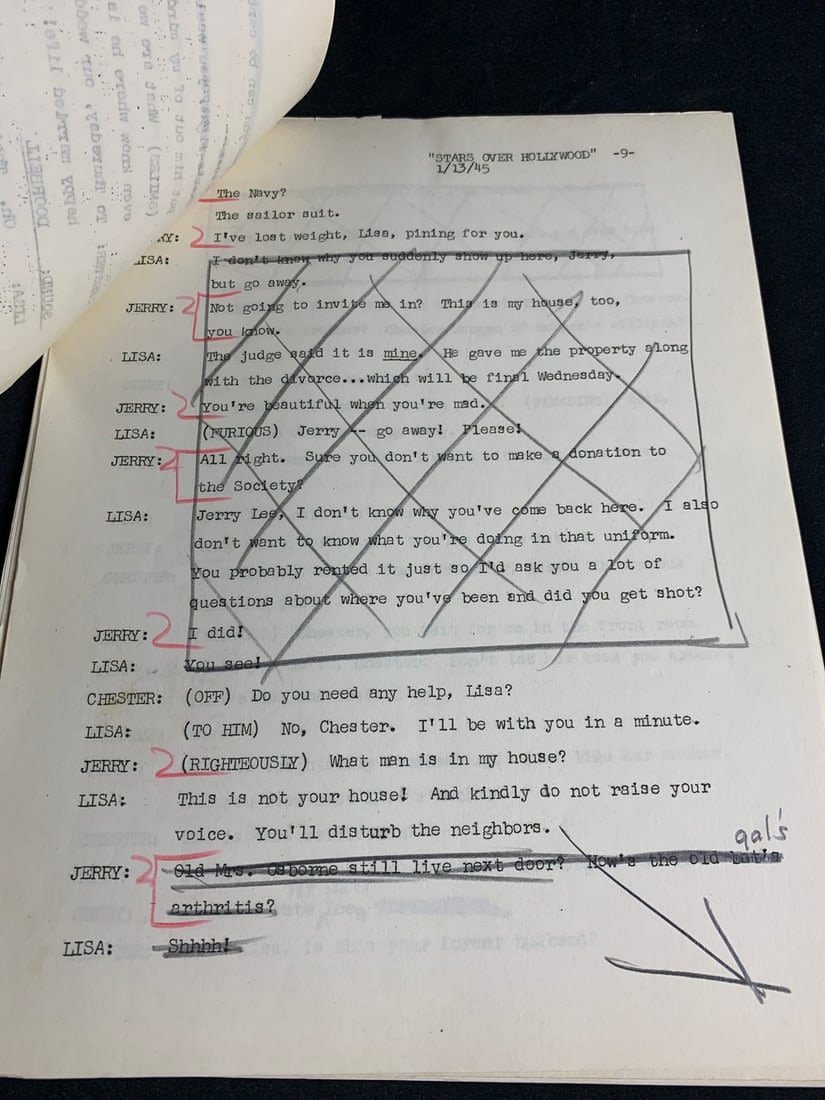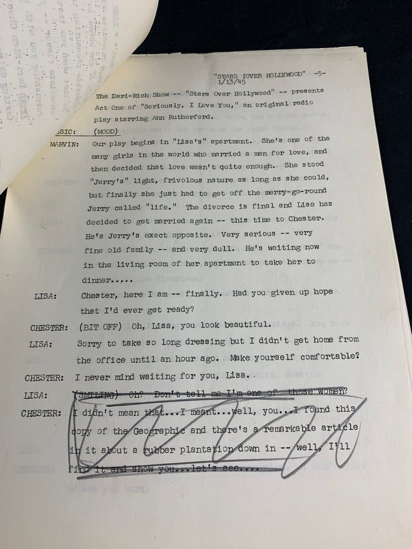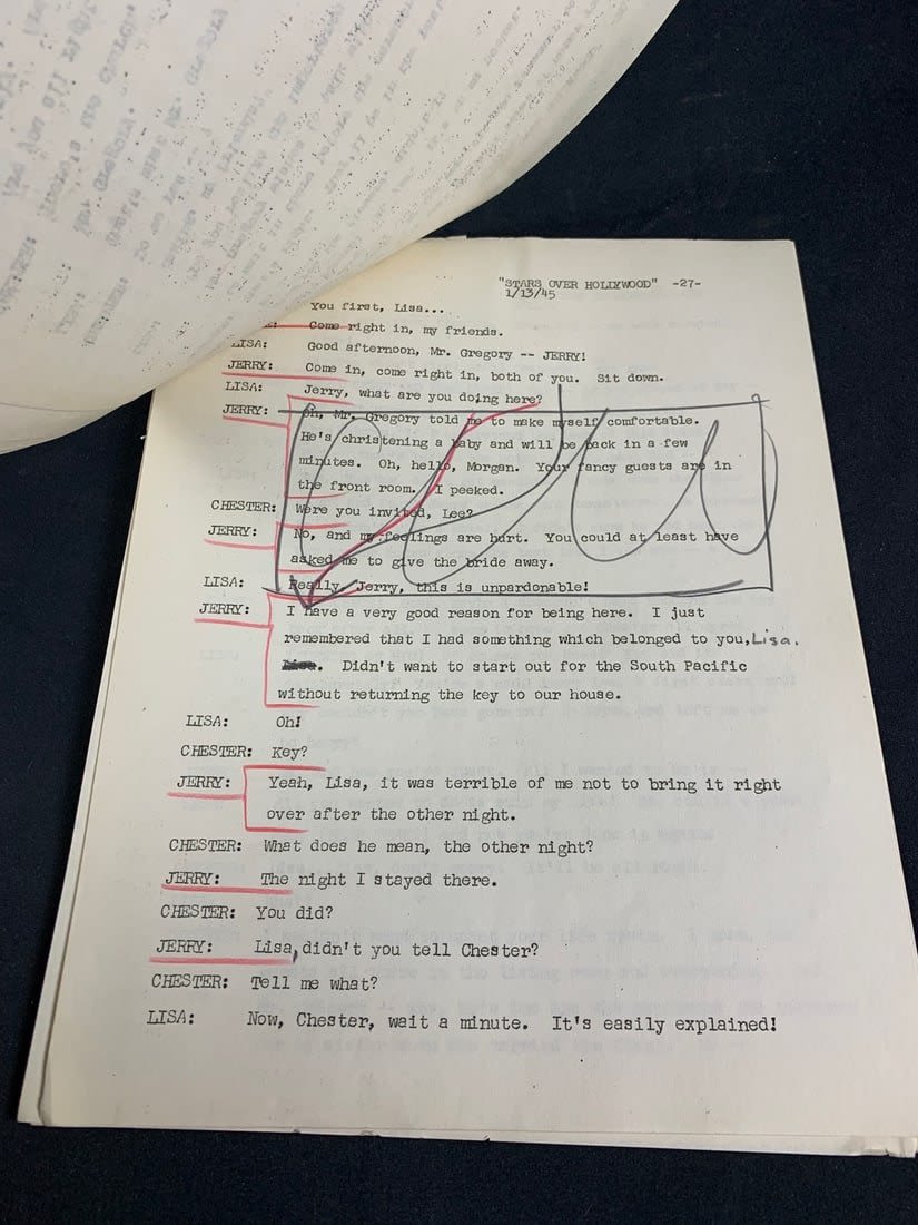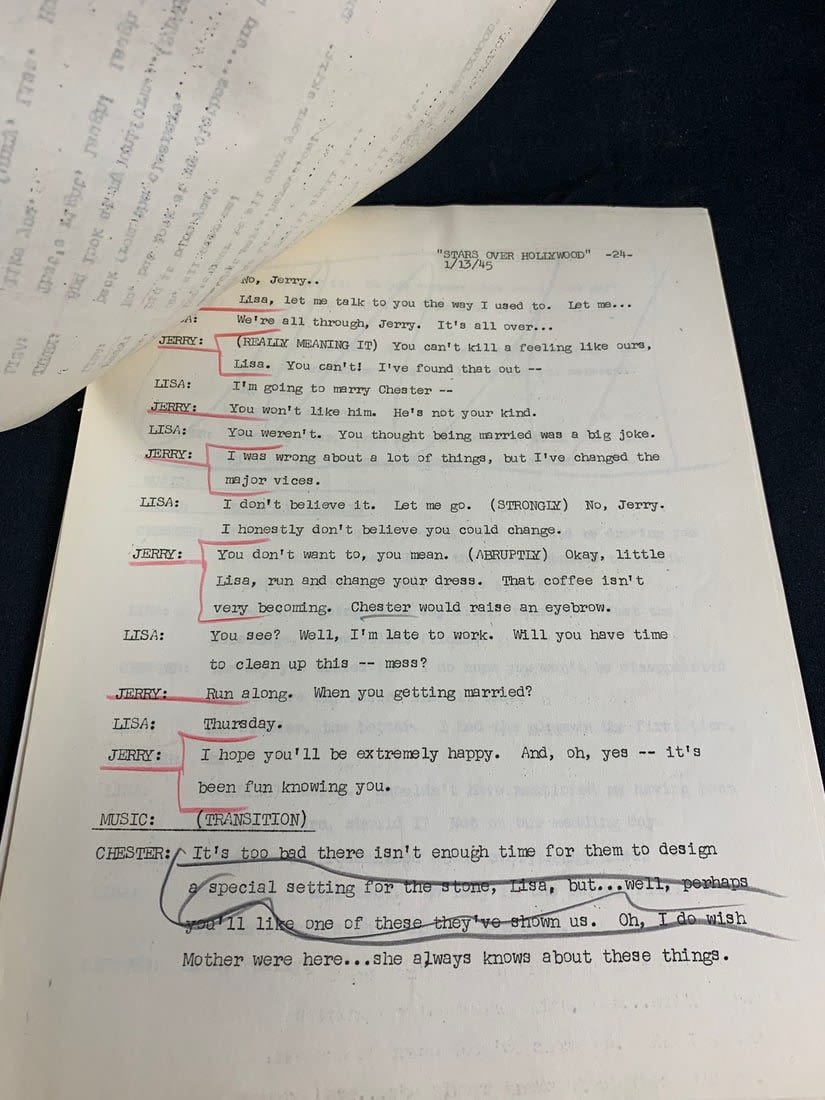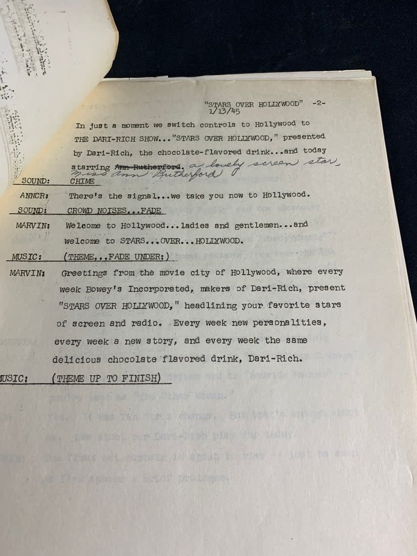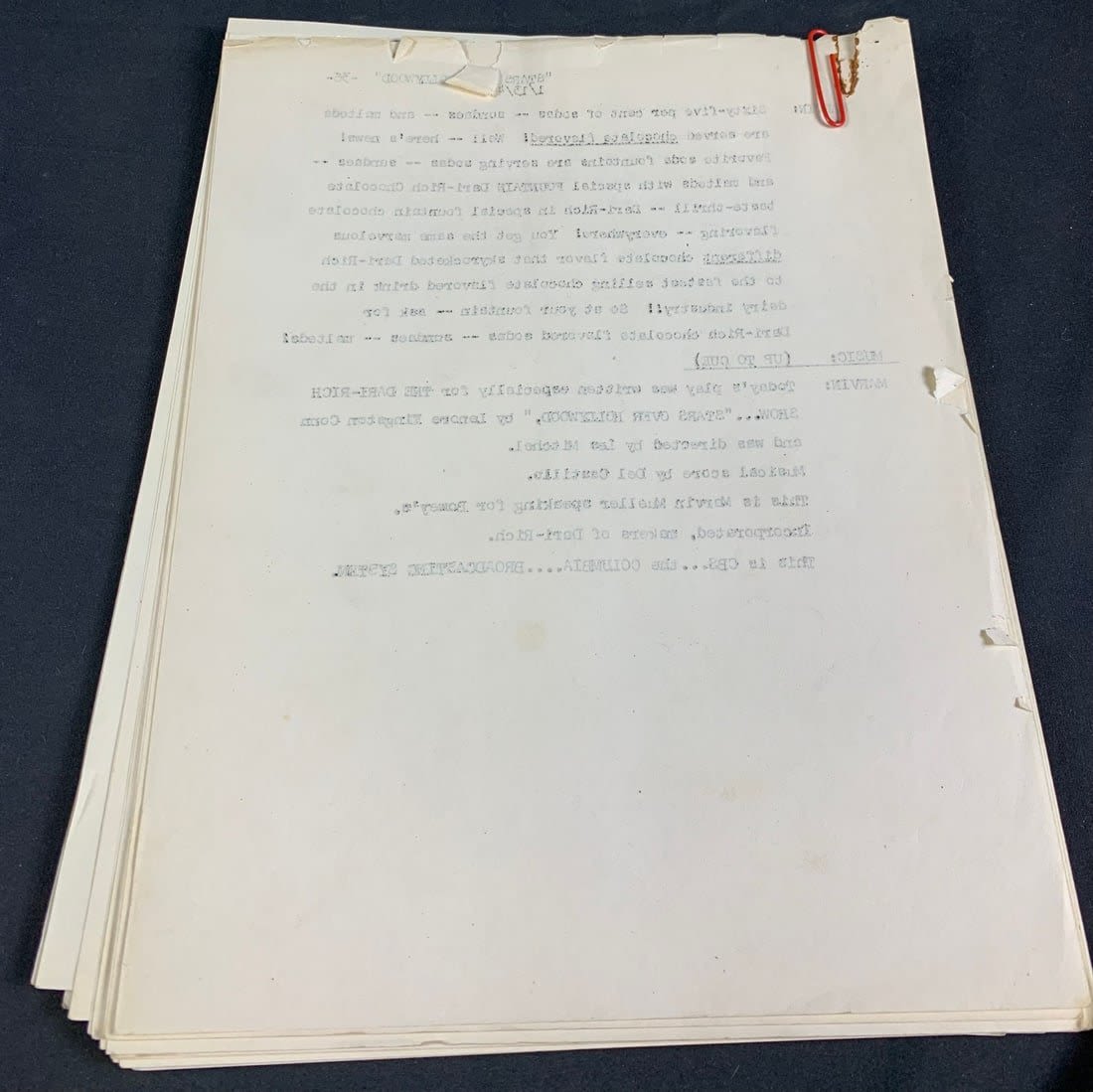 Tom Collins personal script with notes. incredible piece of 1940s radio memorabilia. Please note wear and some staining