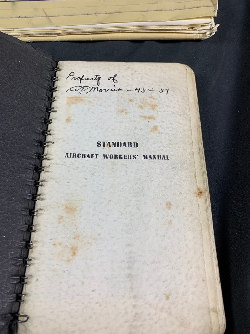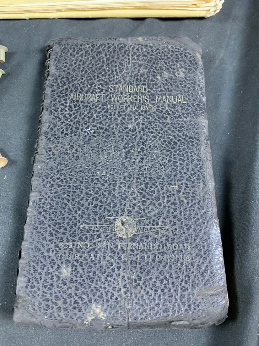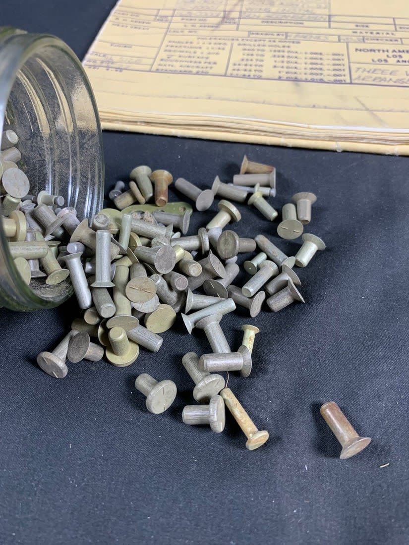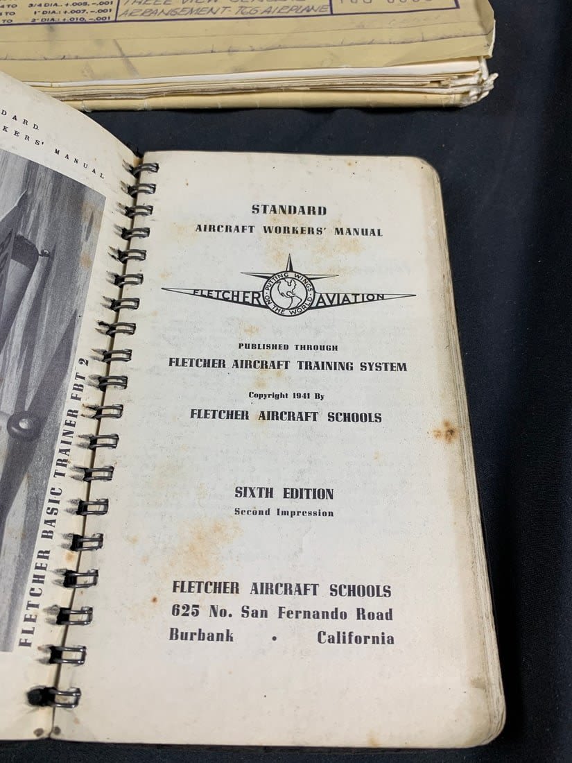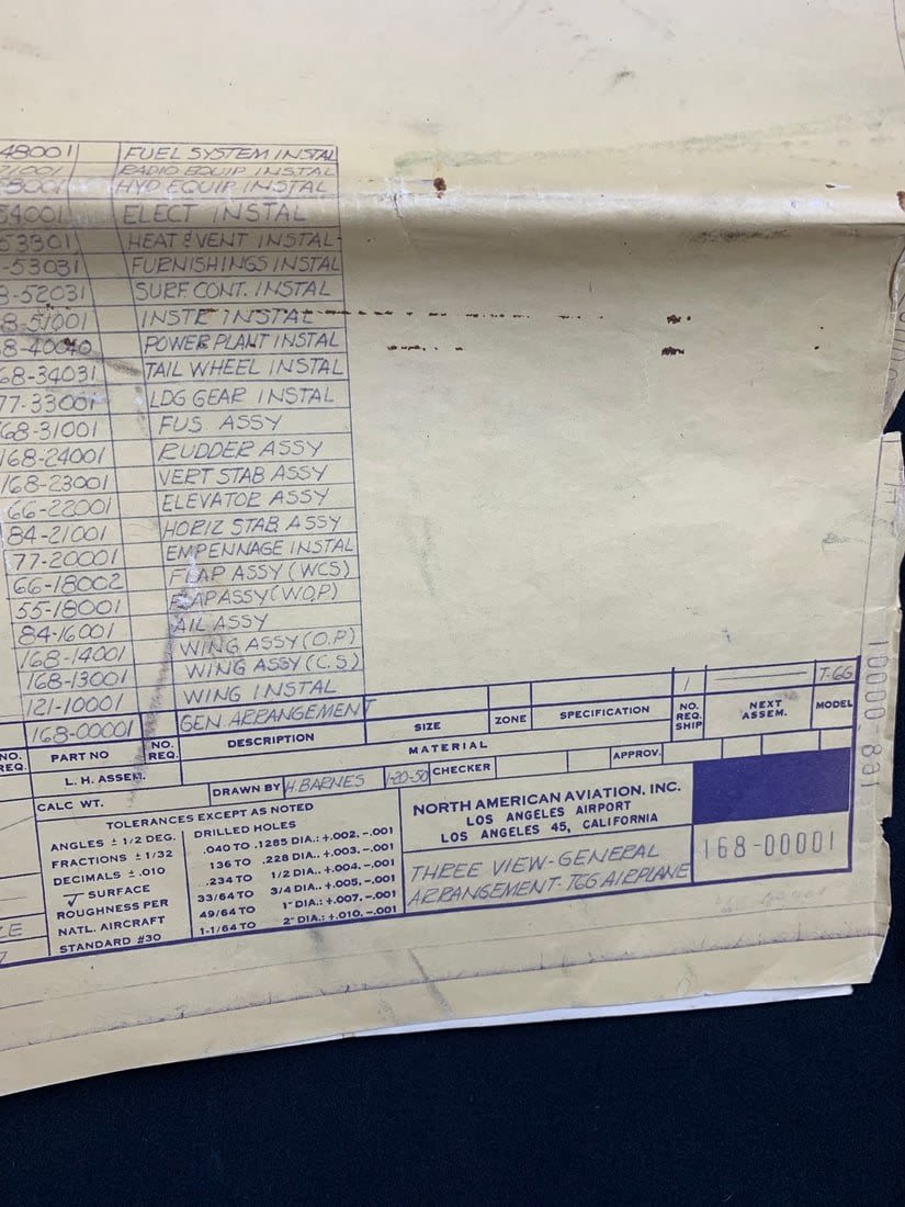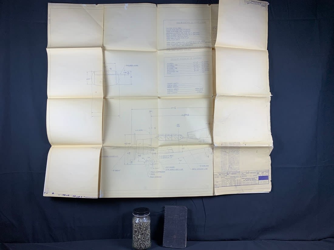 This is an original blueprint Spec for the US Air Force Advanced training plane. Also included is a jar of original rivets for the T6-G. You will also receive an original Aircraft workers manual named to AE Morris. Stains and tears may be present