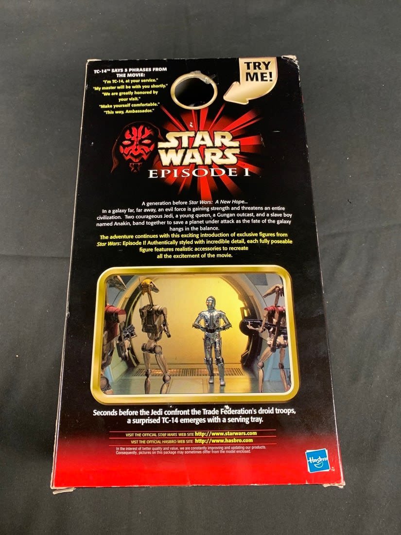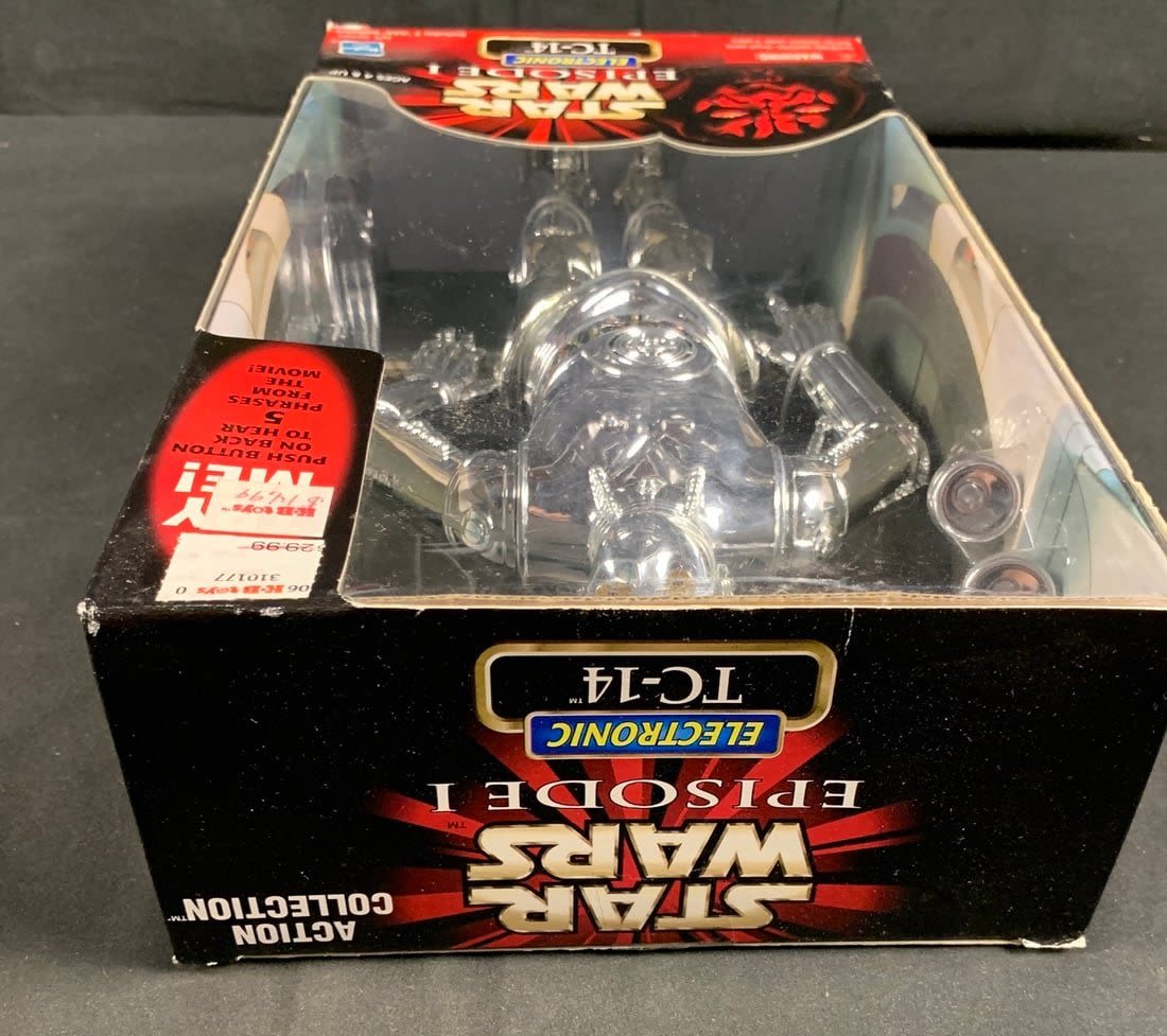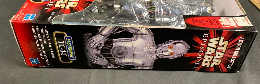 Box shows minor wear. Still lights up and makes sound. Roughly 13" tall
