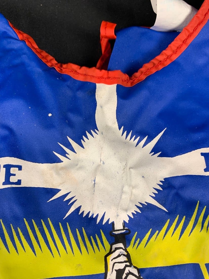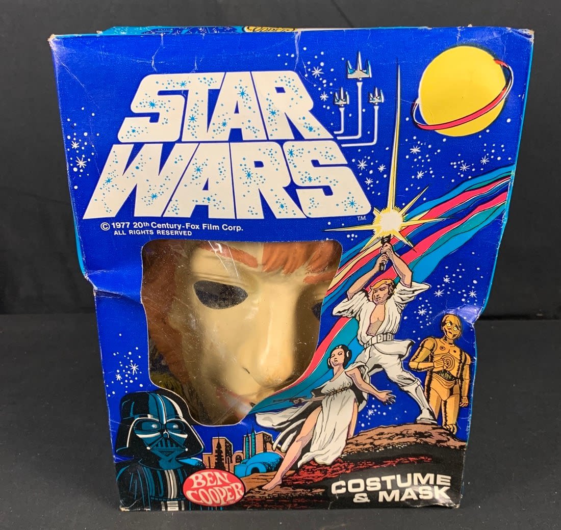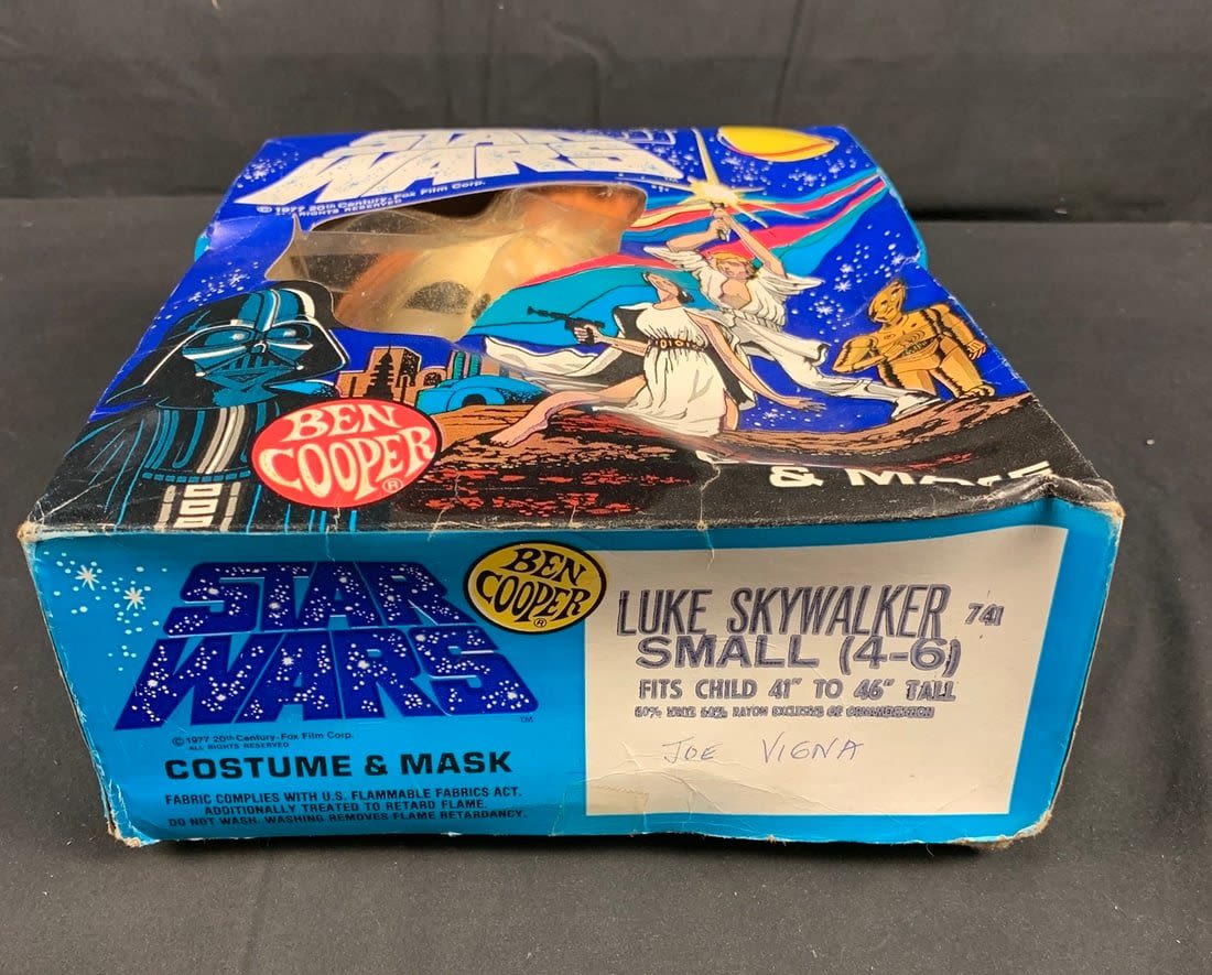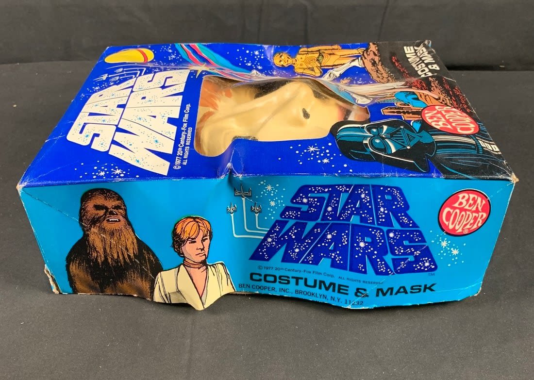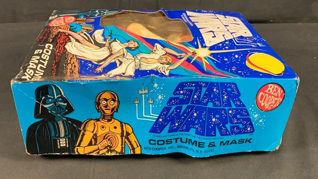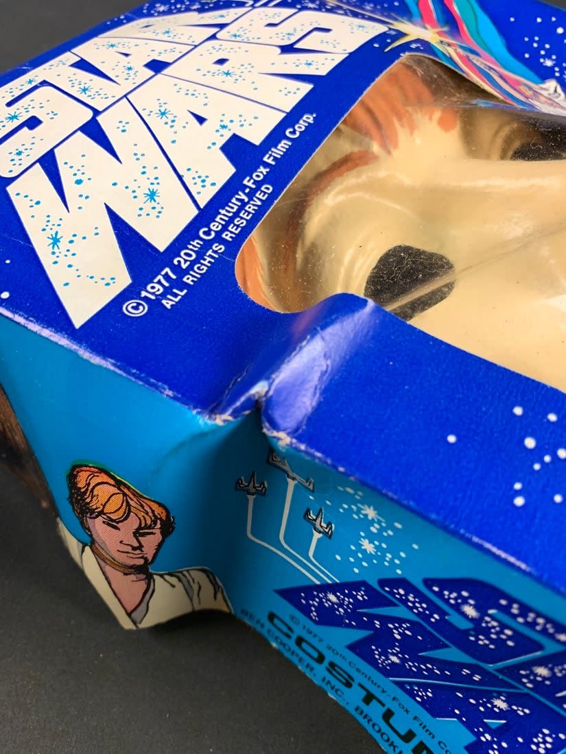 Box is original but does have some wear. Graphics are amazing. Mask has a few tiny cracks on side edge but original band is there