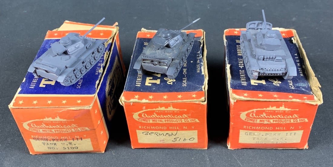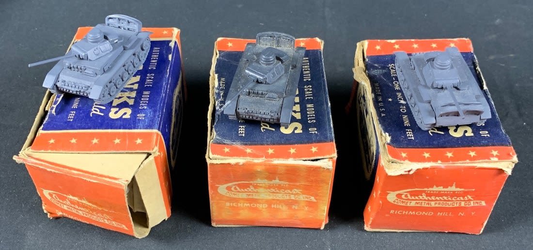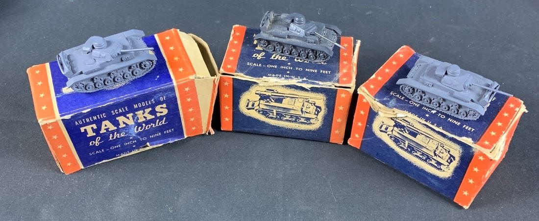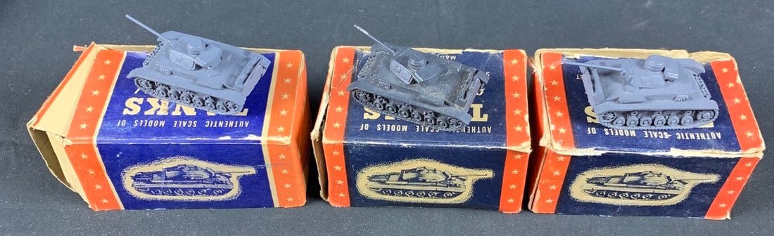 Lot includes 2 WW2 german tank models. Please note boxes are original but are worn and not the best condition. Please look at all pictures. Thanks are roughly 2"