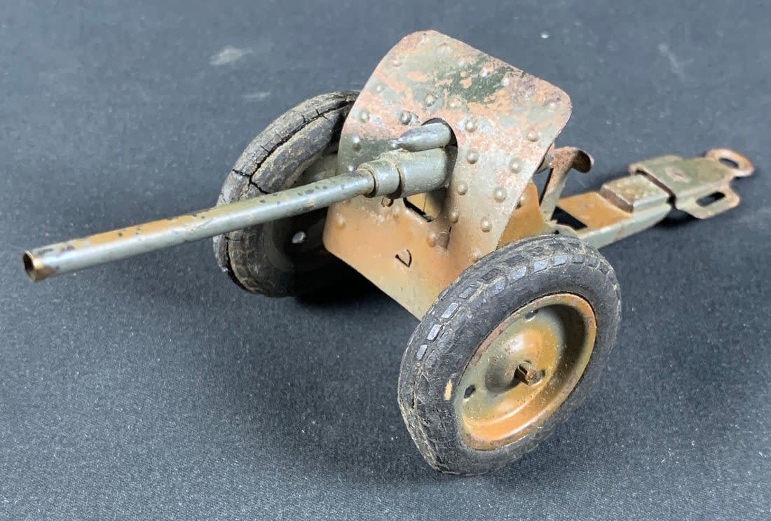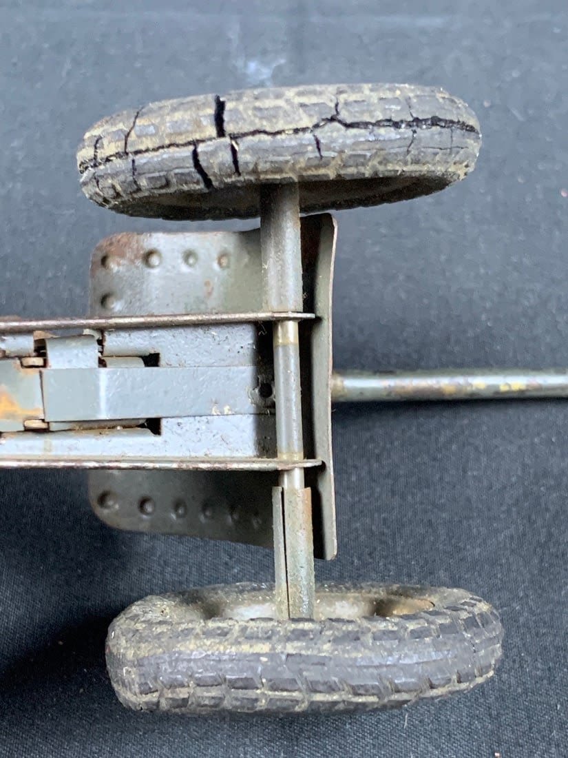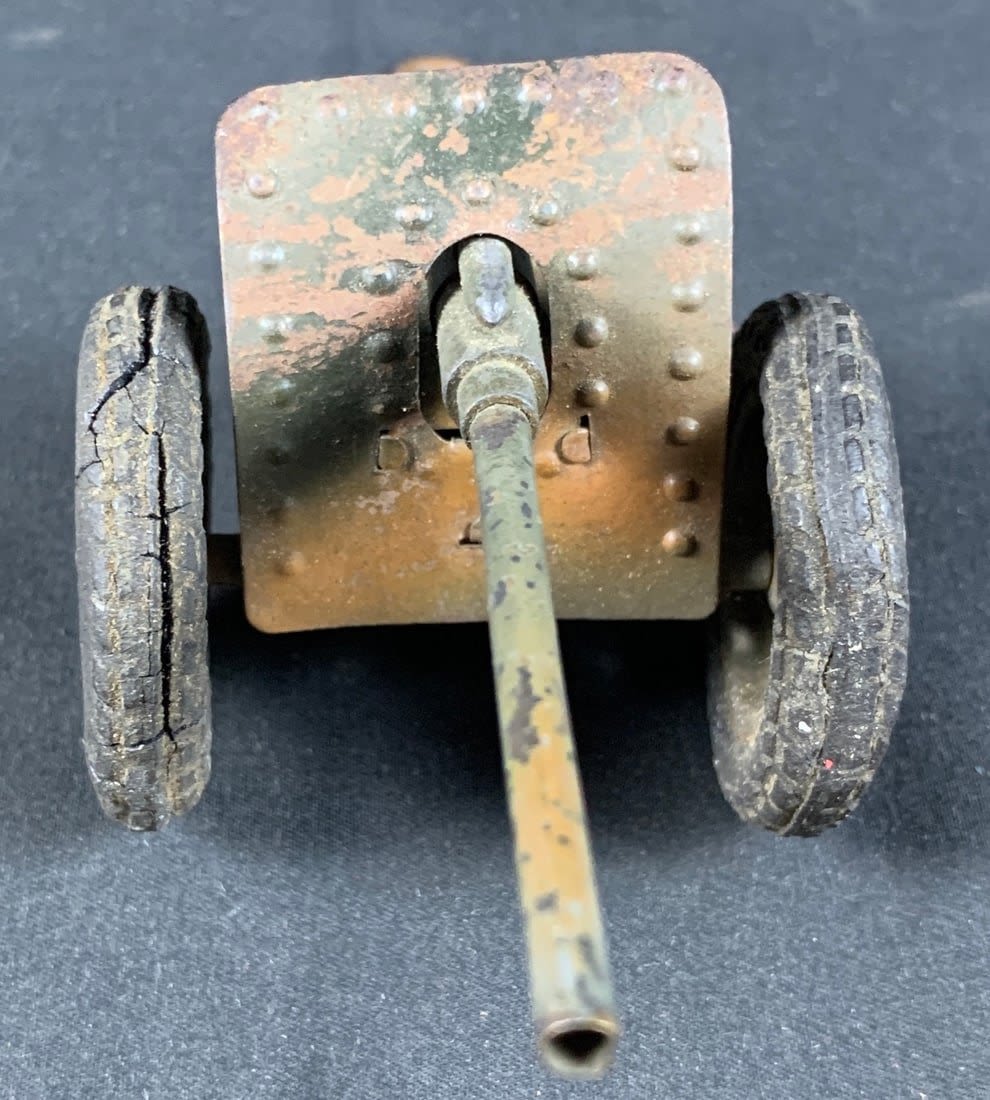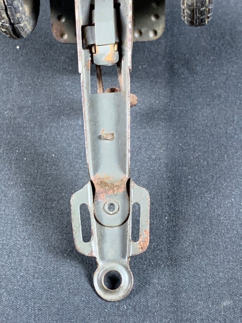 Little Rust and wheel sare cracked. But cap gun portion still locks and fires. Roughly 6"