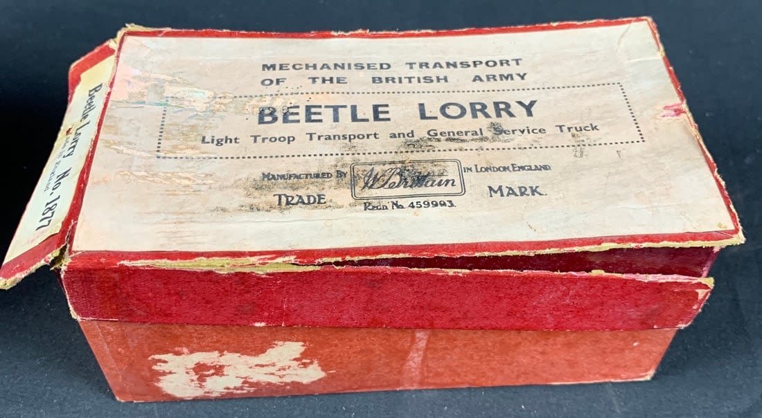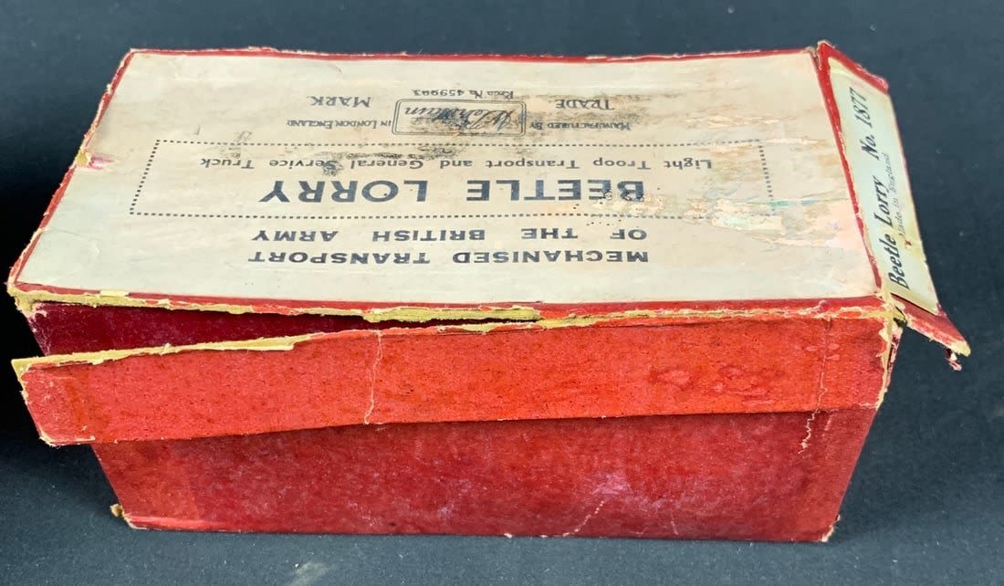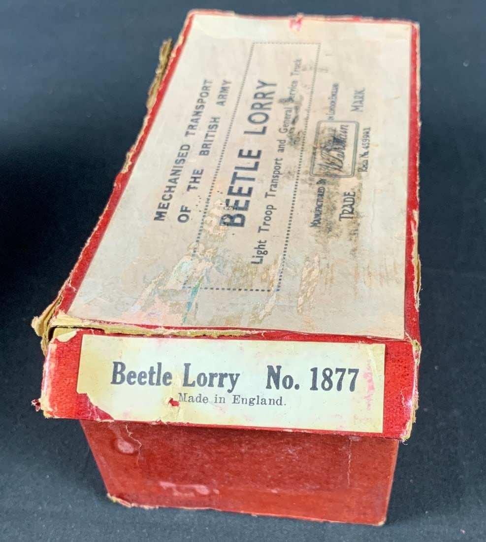 No 1877. Box is worn. Steering wheel is missing on truck. 5" in length