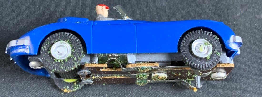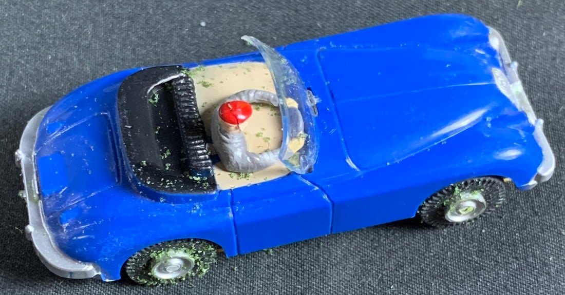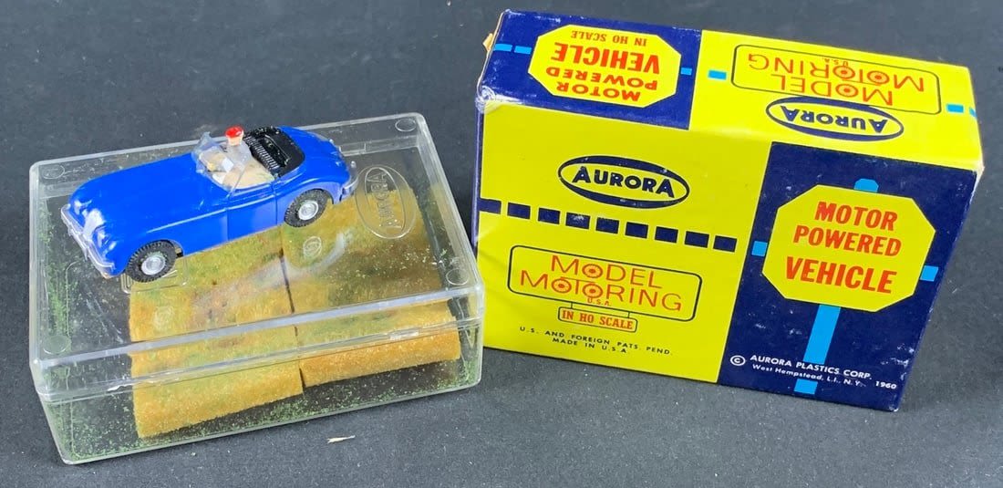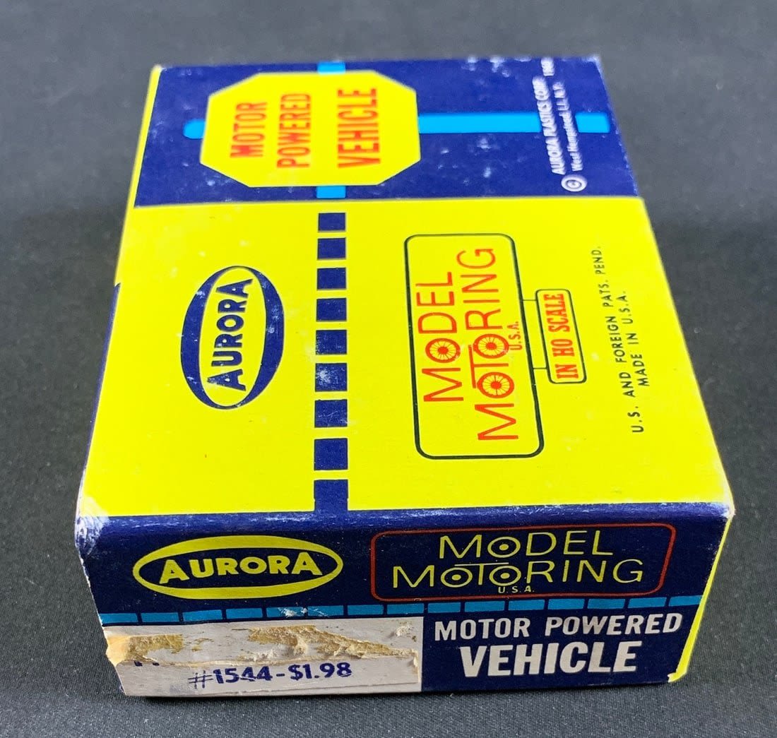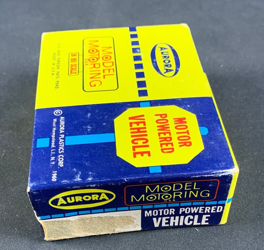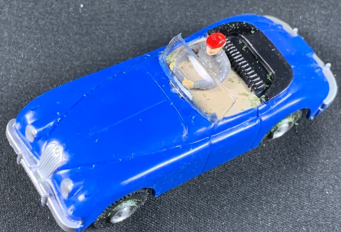 Box may not be original to this model. Blue Jaguar Convertible. Box has some where