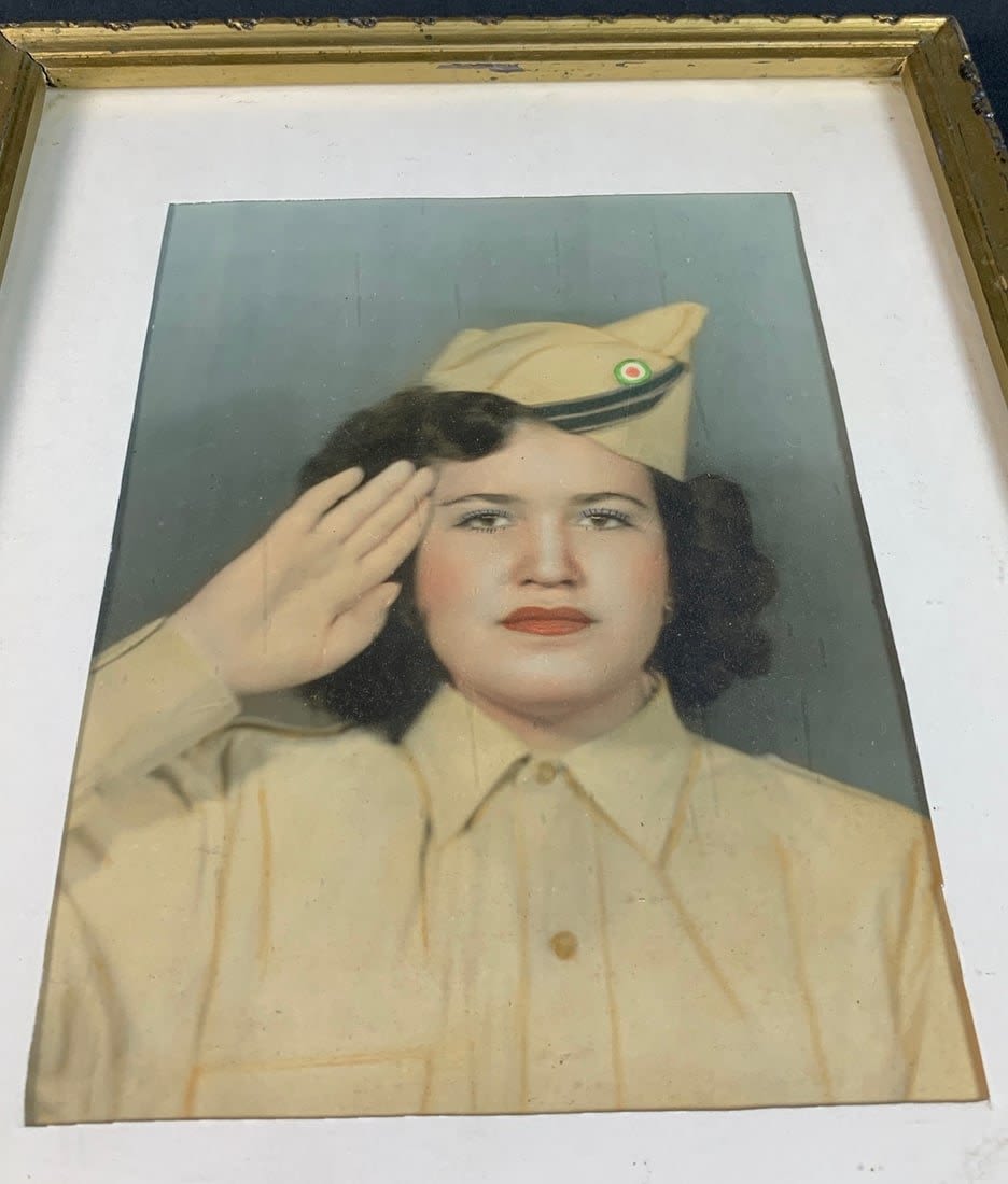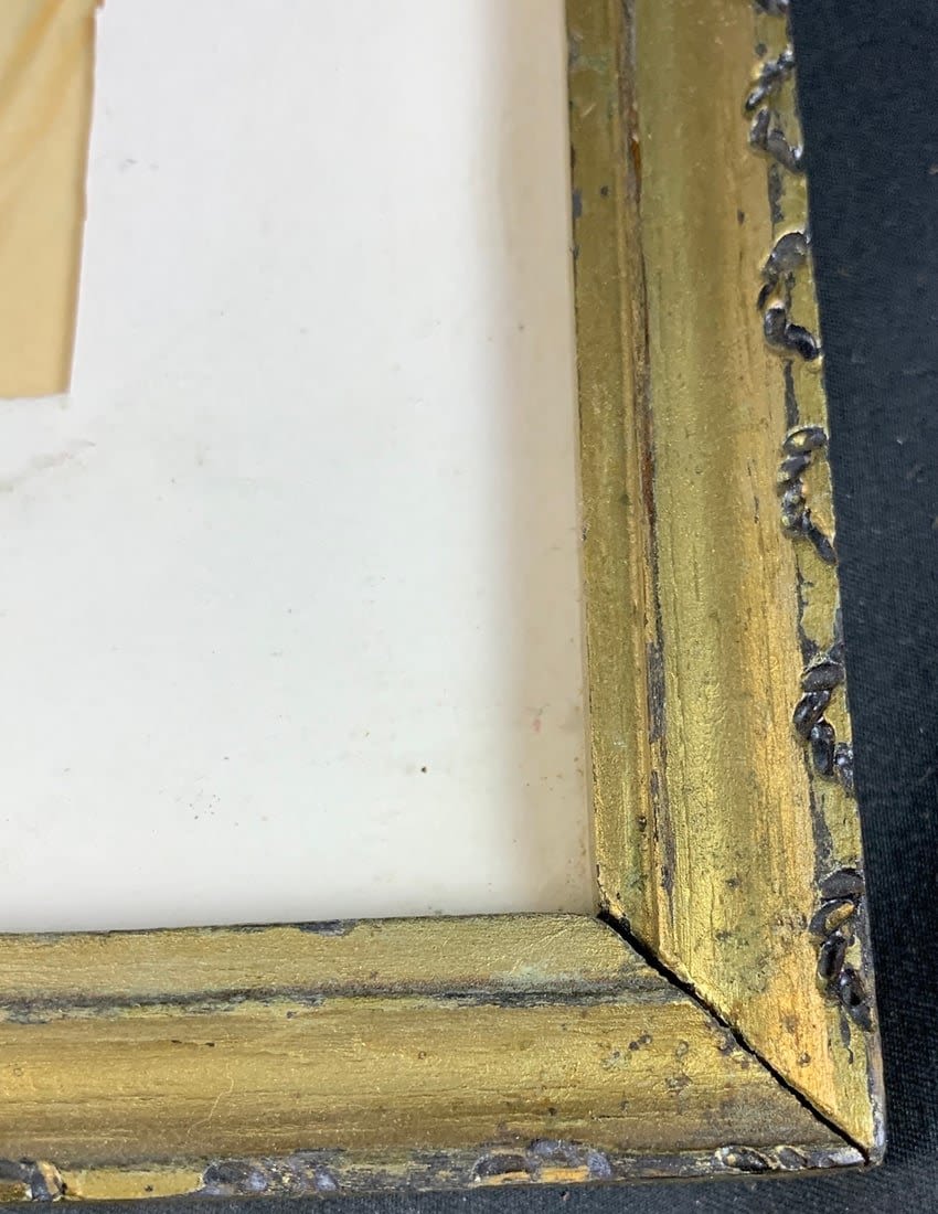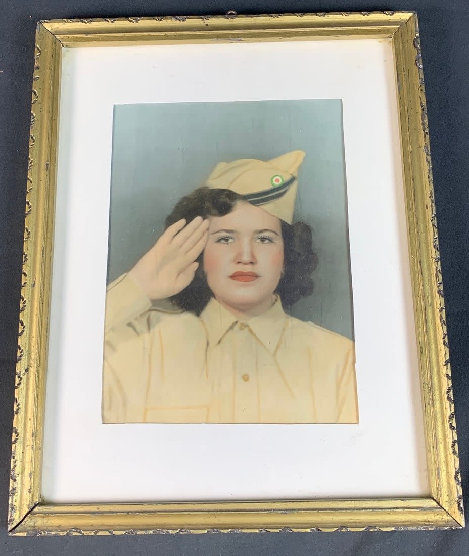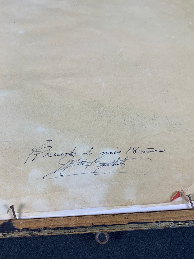 Please note back is not fully attached on frame and can be removed. Photo is named on back. 11"x 13" with frame