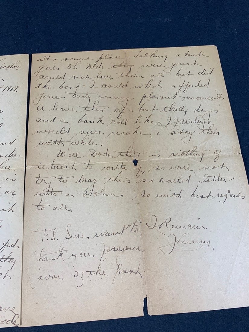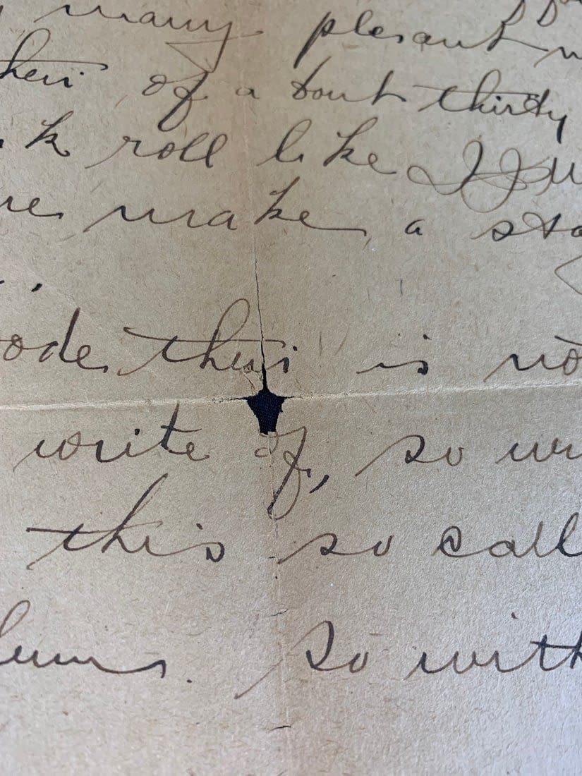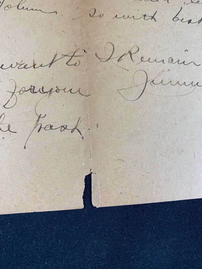 Letter shows signs of a age with creases and holes on crease from years of being folded
