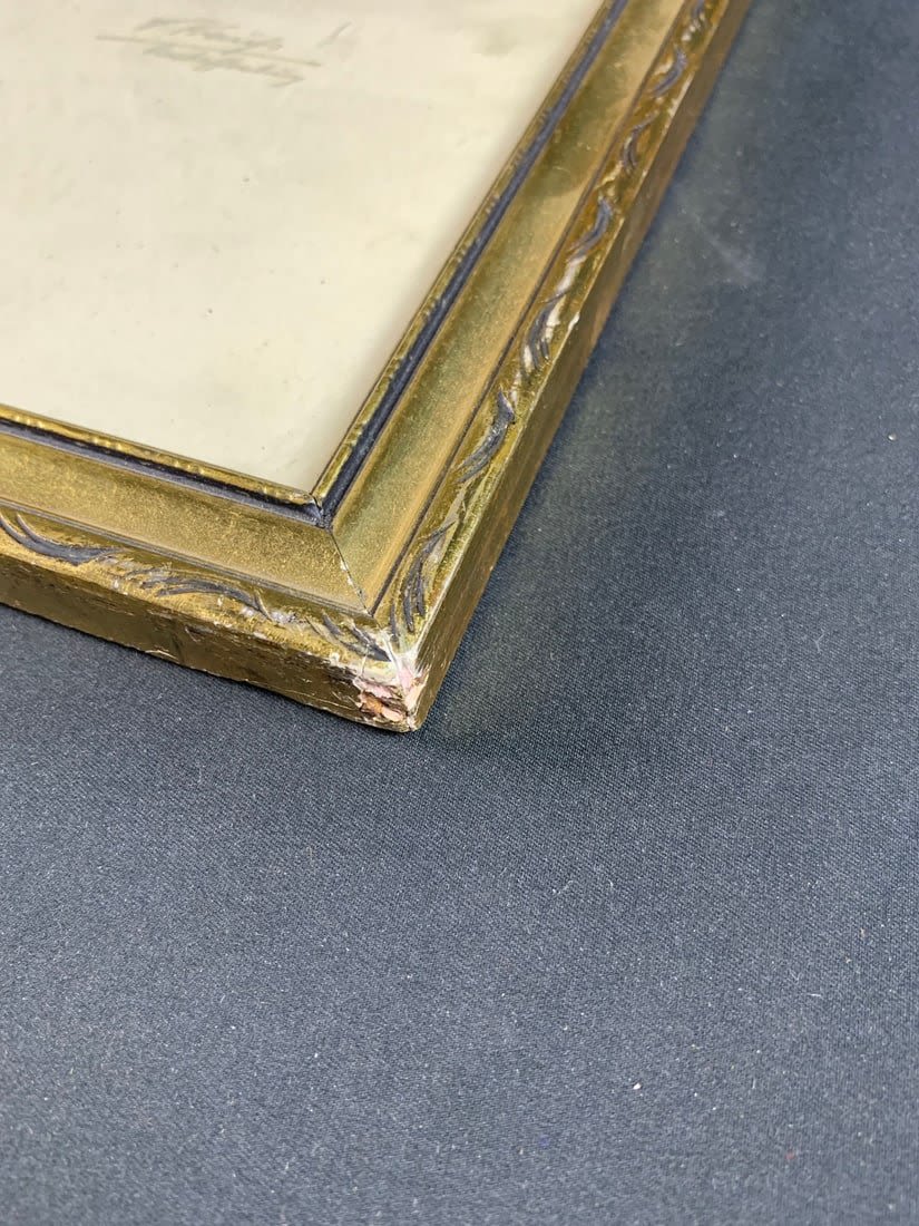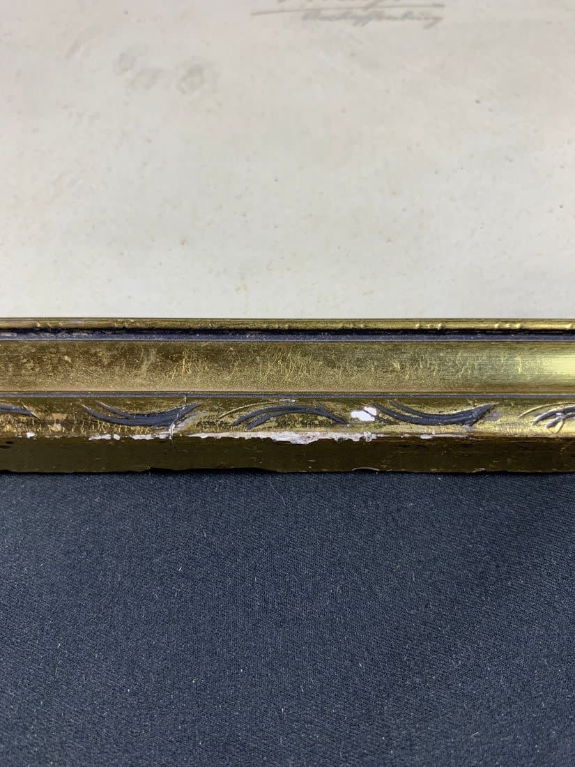 Roughly 15"x 19" in frame. Frame does show a little damage