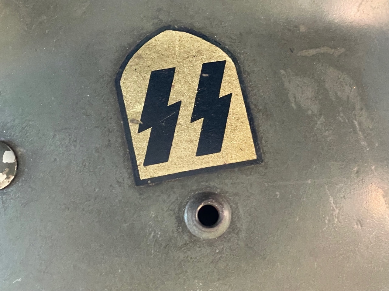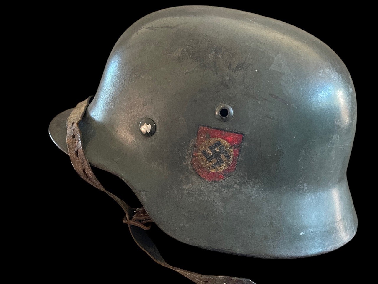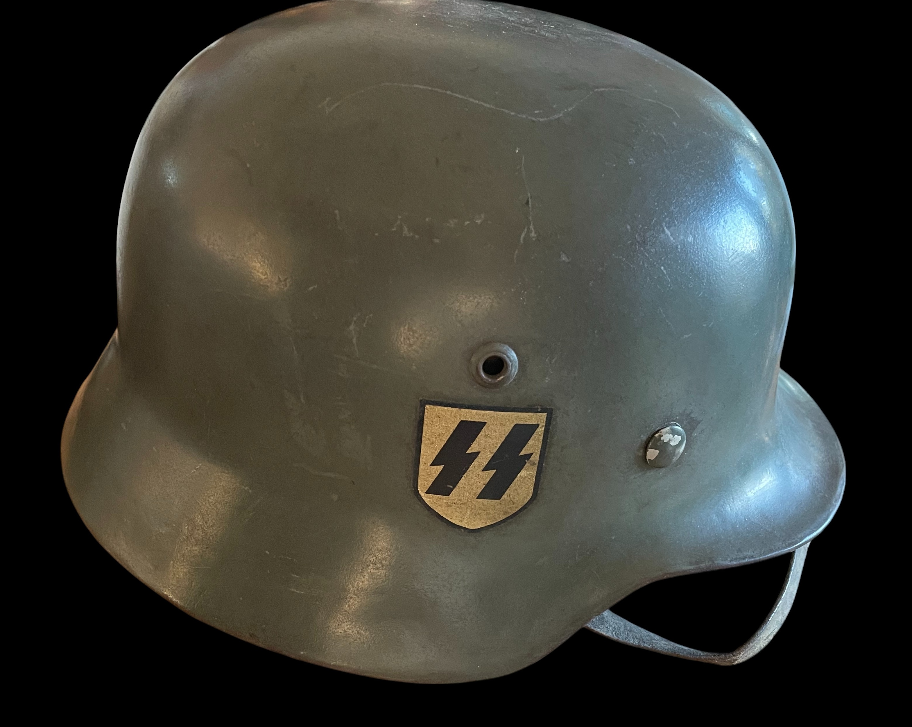 A very desirable and well-preserved example of an original double-decal SS combat helmet, suitable for advanced collections of WWII militaria or museum display.