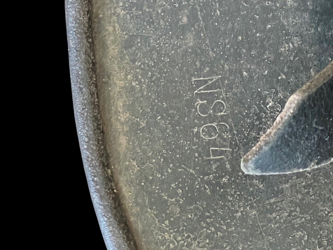 The helmet was manufactured by Vereinigte Deutsche Nickelwerke AG, Schwerte NS in the large shell size 64, as marked -NS64- on the left interior skirt. The lot number, stamped into the rear interior, appears to be partially obscured but is consistent with late-war production runs.