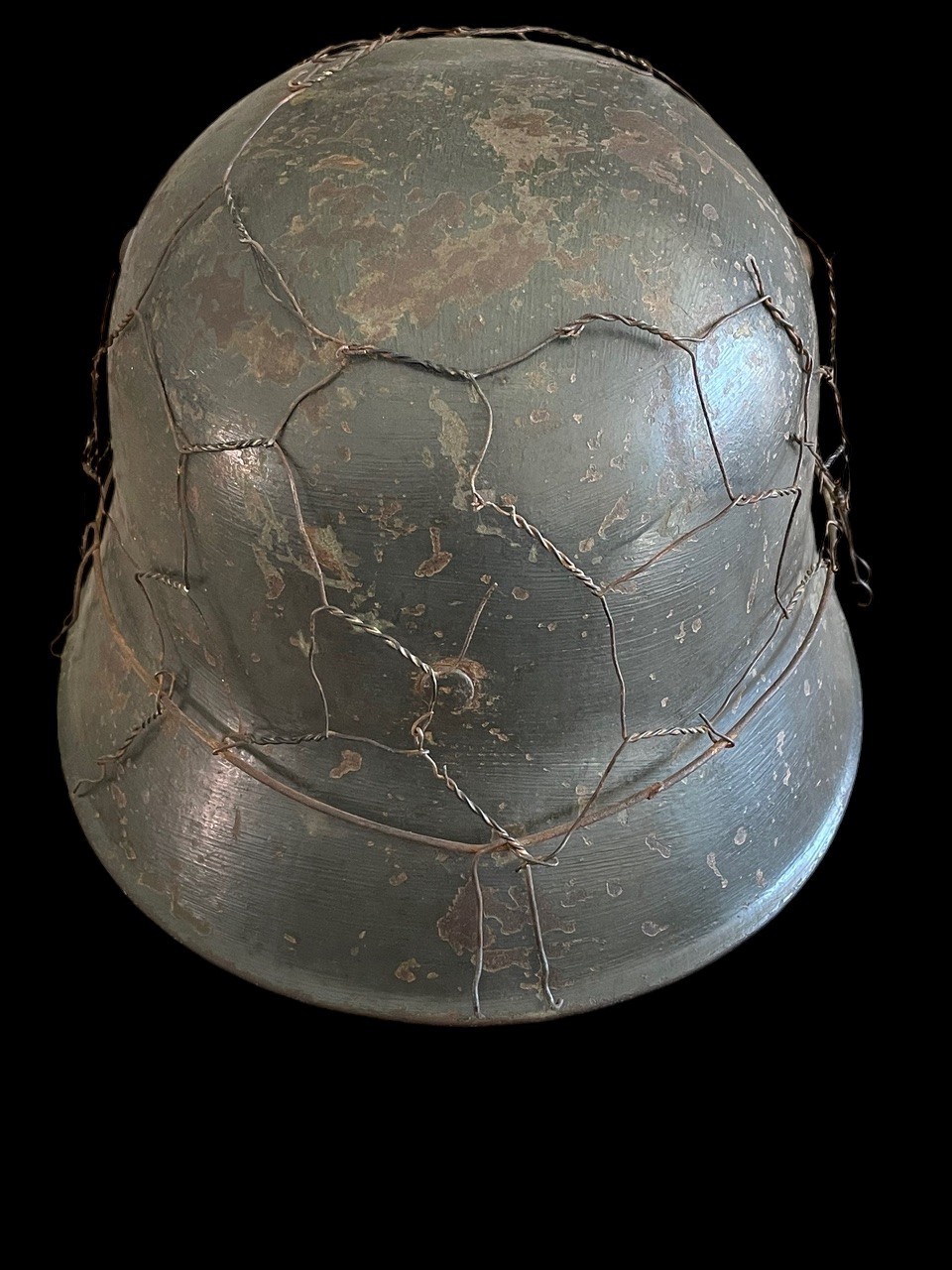 Extremely Rare German WWII M18 Transitional Double Decal Police Helmet with Wire Camouflage and Chinstrap