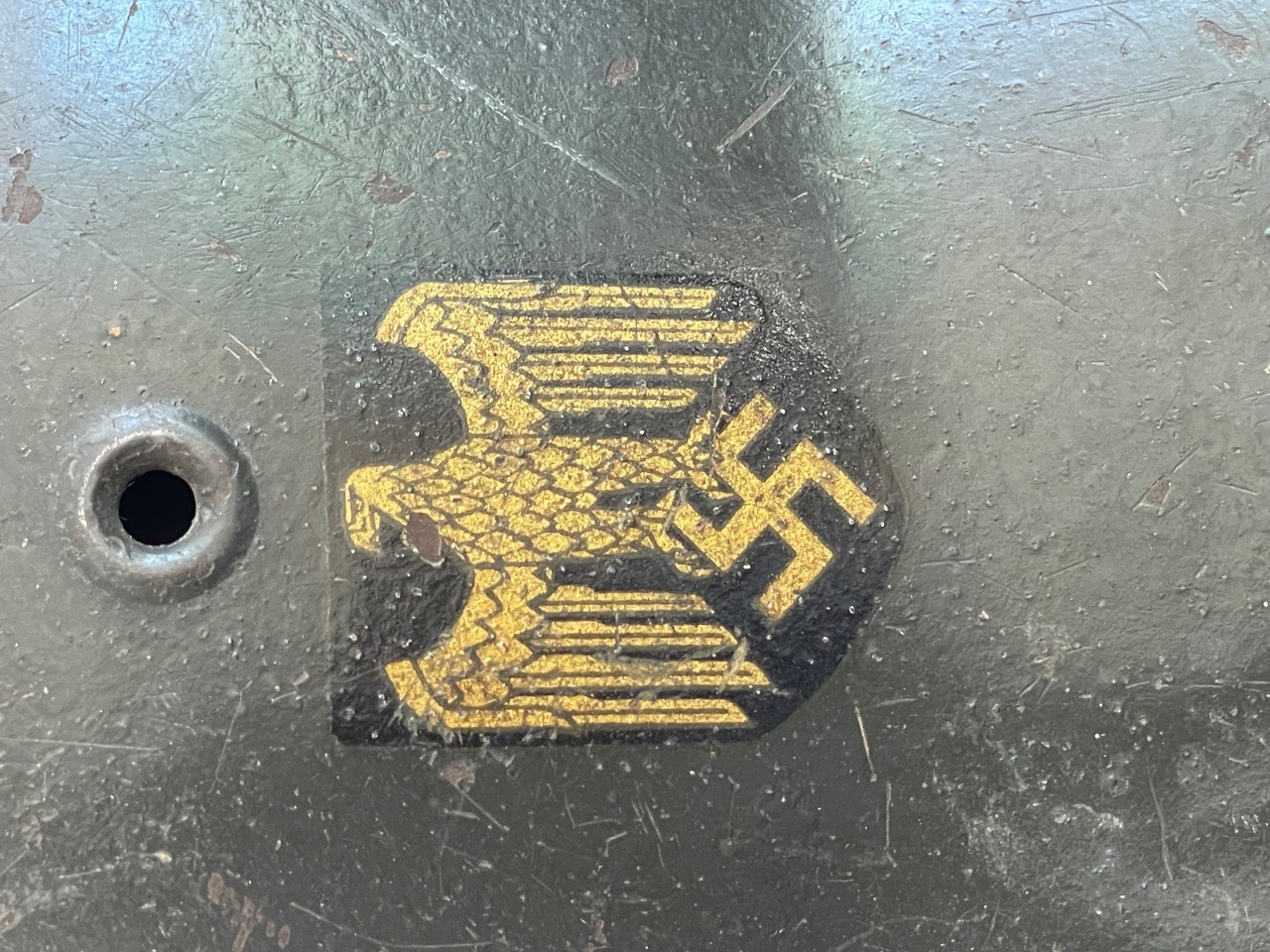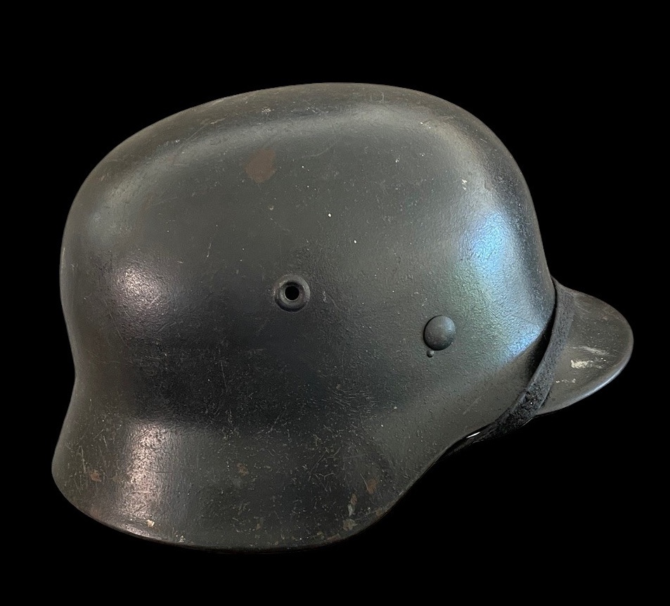 Kriegsmarine single decal helmets are far less common than their Heer counterparts and remain among the most visually appealing of all German combat helmets due to the distinct golden eagle decal and naval association. This example, with its crisp decal, excellent paint retention, and full originality, represents a superior and investment-grade specimen suitable for any advanced collection.